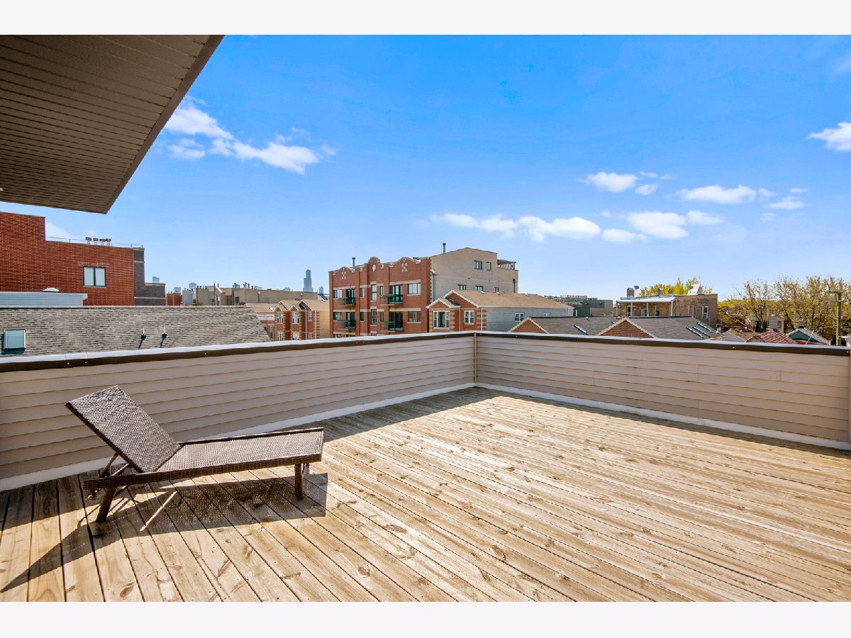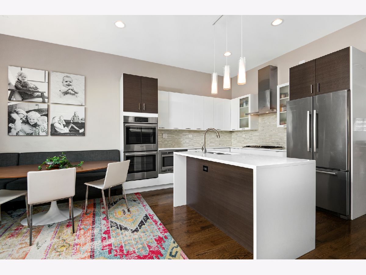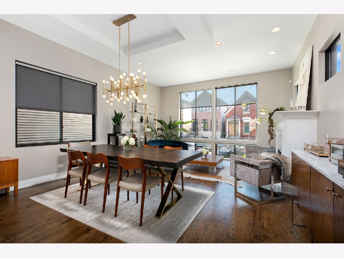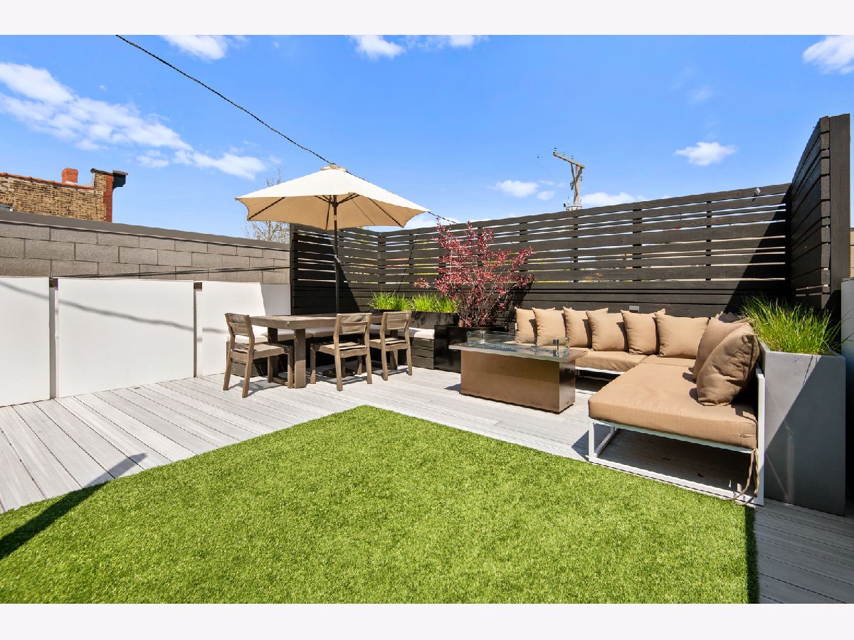 Stunning 4 bed, 3.1 bath all masonry single-family home in the heart of West Town. Flooded with sunlight, this home features hardwood flooring throughout, 3 beds on the same level, and 2 rooftop decks. A modern and open floor plan with floor to ceiling windows in the living and dining room allow the southern light to shine through. Gorgeous, updated kitchen complete with Bosch appliances, quartz waterfall countertop, and built-in banquette. Bedroom level features a spacious primary suite with floor to ceiling windows, double vanity, separate tub, steam shower, and walk-in closet. Penthouse level with wet bar, wine fridge, and rooftop deck. Lower level features hardwood floors, family room, 2nd wet bar, and 4th bedroom. Completely built-out rooftop deck with astroturf, privacy pergola, and fire pit. 2 car garage, close to transportation, and all that hip West Town has to offer.