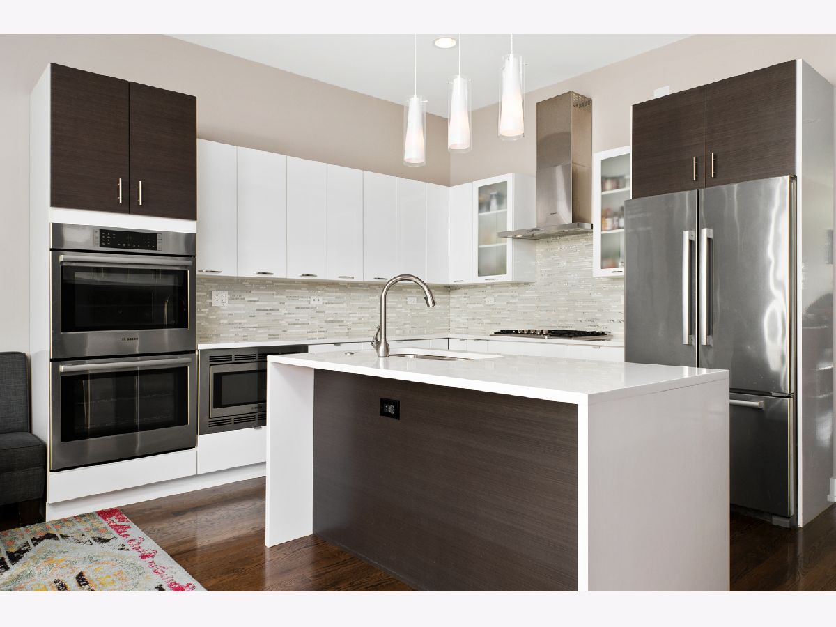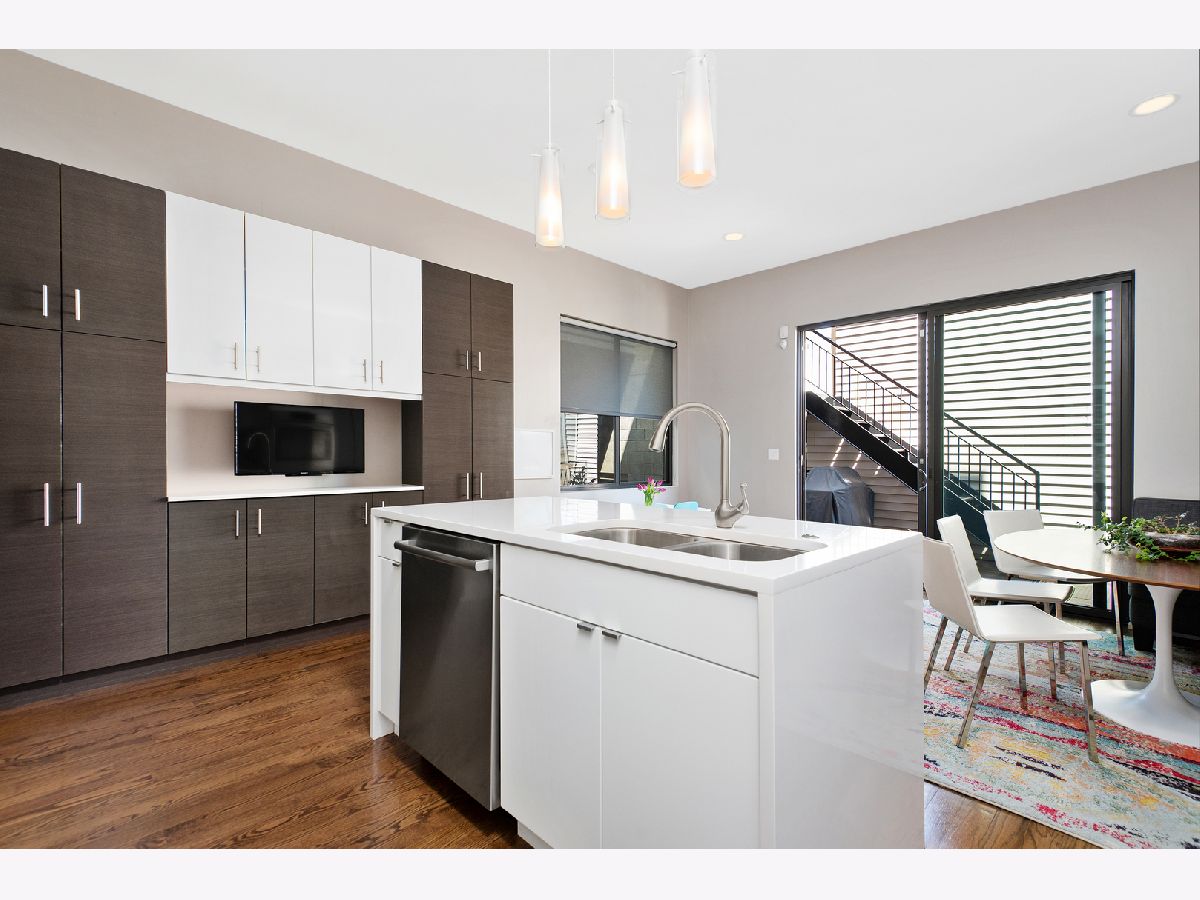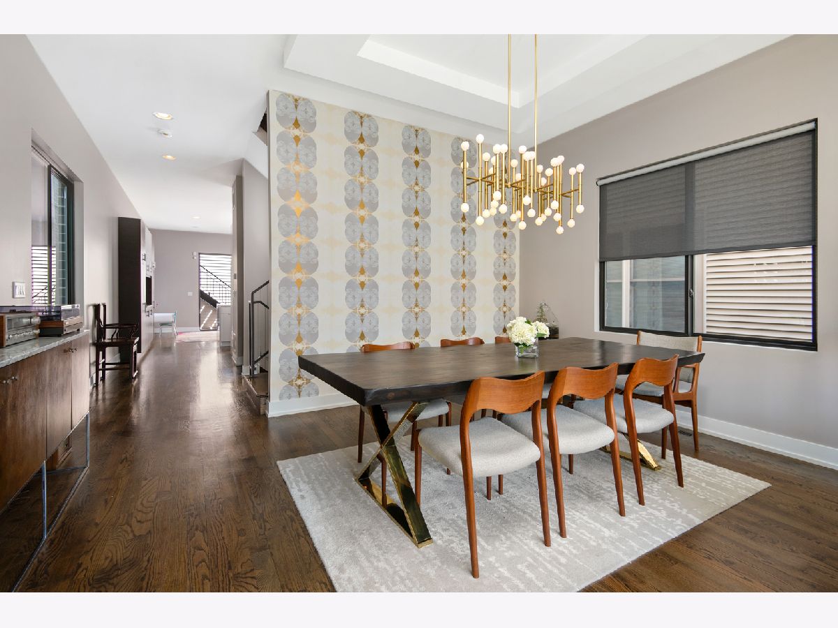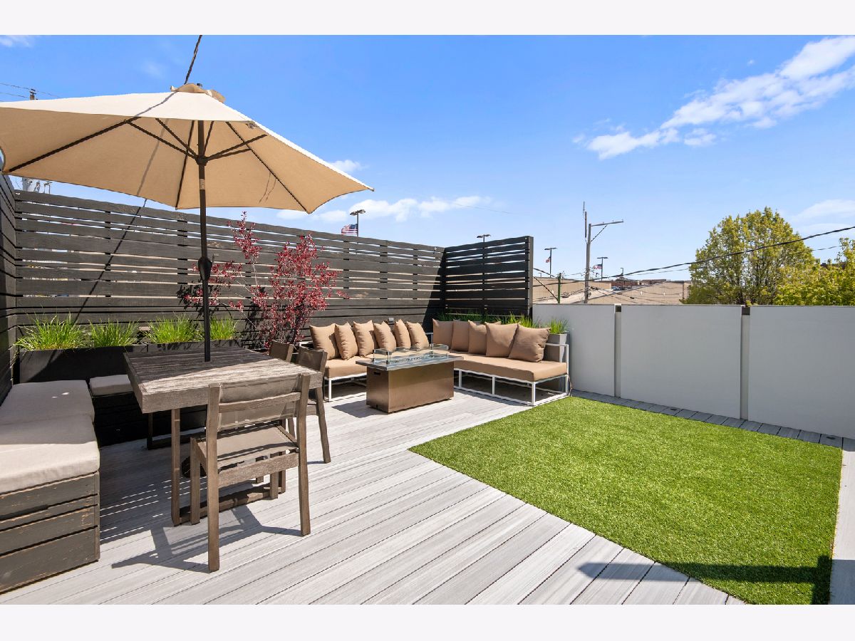 Stunning 4 bed, 3.1 bath all masonry single-family home in the heart of West Town. Flooded with sunlight, this home features hardwood flooring throughout, 3 beds on the same level, and 2 rooftop decks. A modern and open floor plan with floor to ceiling windows in the living and dining room allow the southern light to shine through. Gorgeous, updated kitchen complete with Bosch appliances, quartz waterfall countertop, and built-in banquette. Bedroom level features a spacious primary suite with floor to ceiling windows, double vanity, separate tub, steam shower, and walk-in closet. Penthouse level with wet bar, wine fridge, and rooftop deck. Lower level features hardwood floors, family room, 2nd wet bar, and 4th bedroom. Completely built-out rooftop deck with astroturf, privacy pergola, and fire pit. 2 car garage, close to transportation, and all that hip West Town has to offer.
