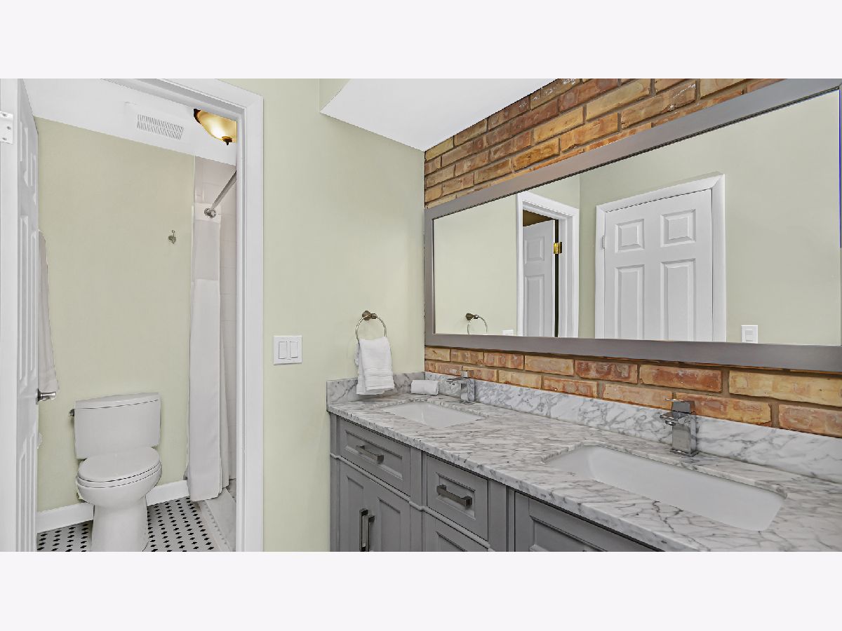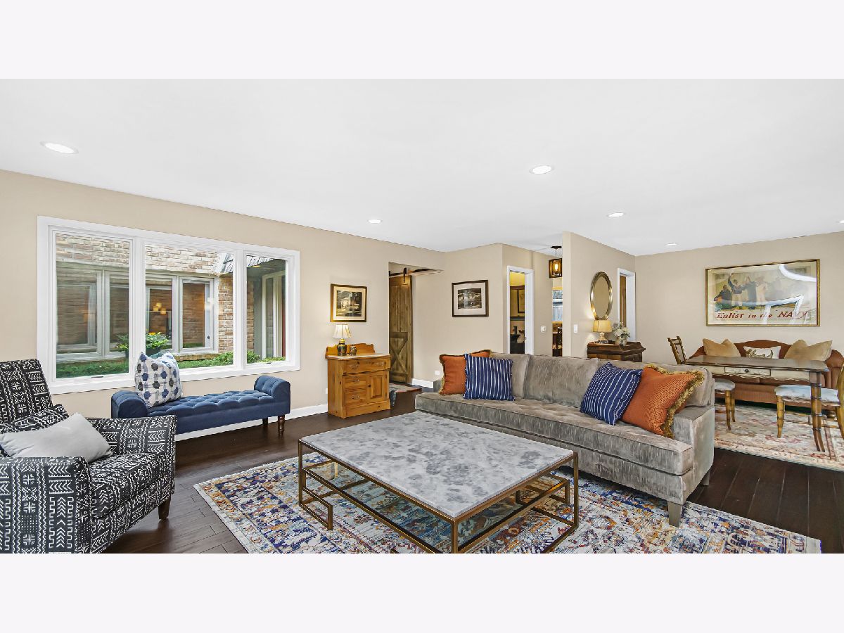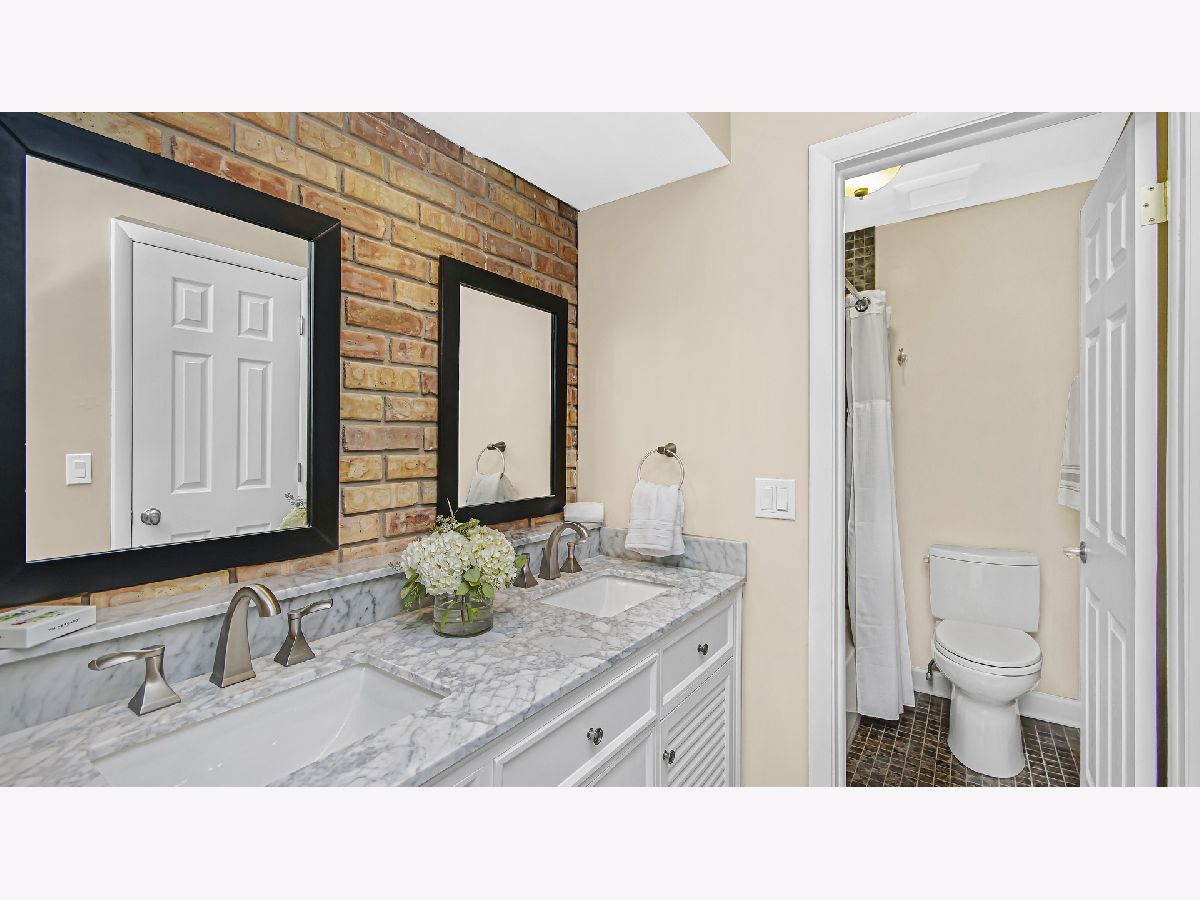 Welcome and move right in to this beautifully updated 2 bedroom, 2.5 bath ranch townhome in The Commons, Northbrook's popular maintenance-free community. This end unit home with a 2-car garage was completely rehabbed in 2019 creating open living spaces flooded with natural light and accented with brick walls, sliding barn doors, hardwood floors, recessed lighting, and designer light fixtures. The re-designed kitchen allows for an open kitchen/family room flow with a breakfast bar and views of the inviting family room with built-ins and a fireplace. The kitchen features updated cabinetry, granite countertops, tile backsplash, and stainless steel appliances. The floor plan offers two primary bedrooms both with customized walk-in closets and updated ensuite bathrooms with custom granite and tile work. One bathroom features a walk-in shower with a tile floor and the other offers a tub/shower combination. Conveniently located off the hallway on the main level is a newer high-efficiency washer and dryer. The basement features a finished rec room area and a large utility/storage area. Step out your family room french doors and relax and enjoy your private outdoor living space with a paver patio and fenced-in yard. In addition, the 2019 rehab included new Pella windows in the living room, a new Pella garage service door and Pella front door with sidelights, a new paver patio, new electric panel, new mechanicals (furnace, water heater, and AC), a new sump & back up battery and more. Truly one-level living - just move in and enjoy...all the work has been done for you!