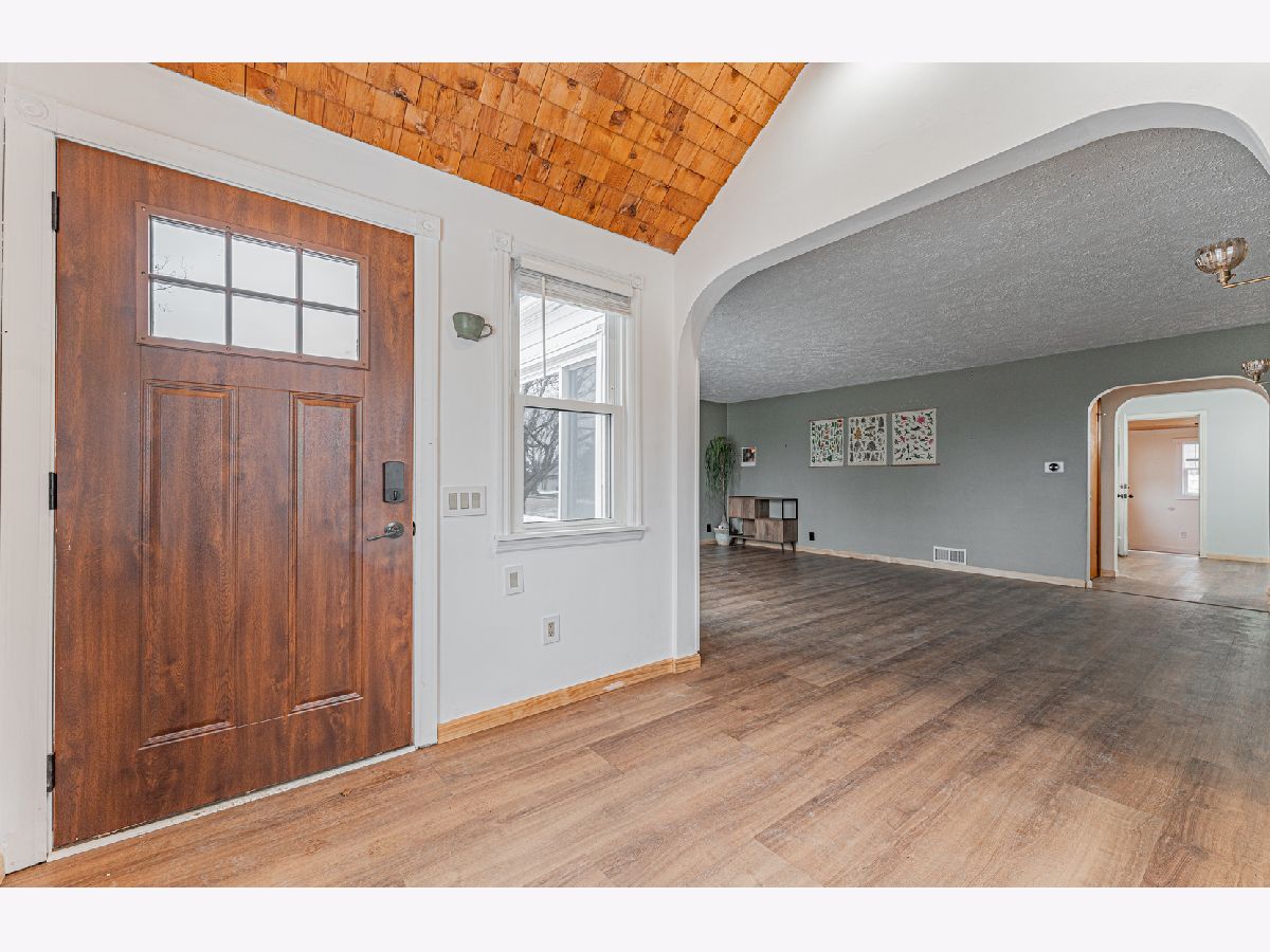 If you're searching for small town living just minutes from Rivian and all the amenities of Bloomington/Normal, this adorable bungalow might just be the one for you! This charming home features a large, welcoming foyer with built-in storage, beautiful LVP flooring that flows throughout most of the main level (2024), spacious living room with gas fireplace and large picture window, hall pantry, kitchen/dining room combo with newer appliances (2023), a primary bedroom addition (2015) with baseboard heating and private door to the backyard, two additional bedrooms with original hardwoods, and a recently updated full hall bath. The partially finished basement offers extra living space, exercise equipment, half bath, laundry area and plenty of storage. The backyard has a newer (2023) 6ft privacy fence and offers a spacious, quiet retreat with plenty of room for relaxing on the patio, grilling under the covered structure, gardening in the raised beds and raising chickens in the coop. Schedule your showing today and get yourself the best holiday gift of all - a wonderful new home!