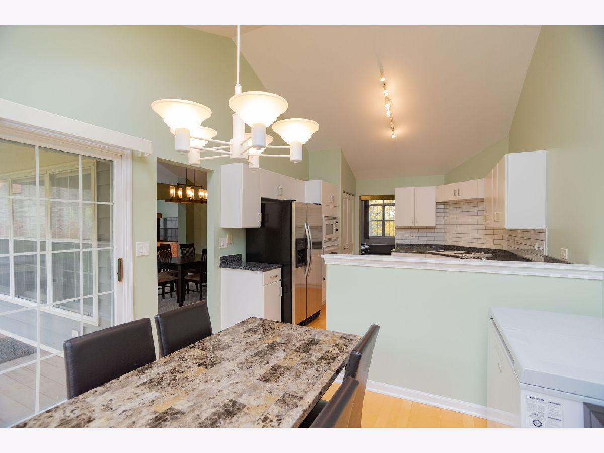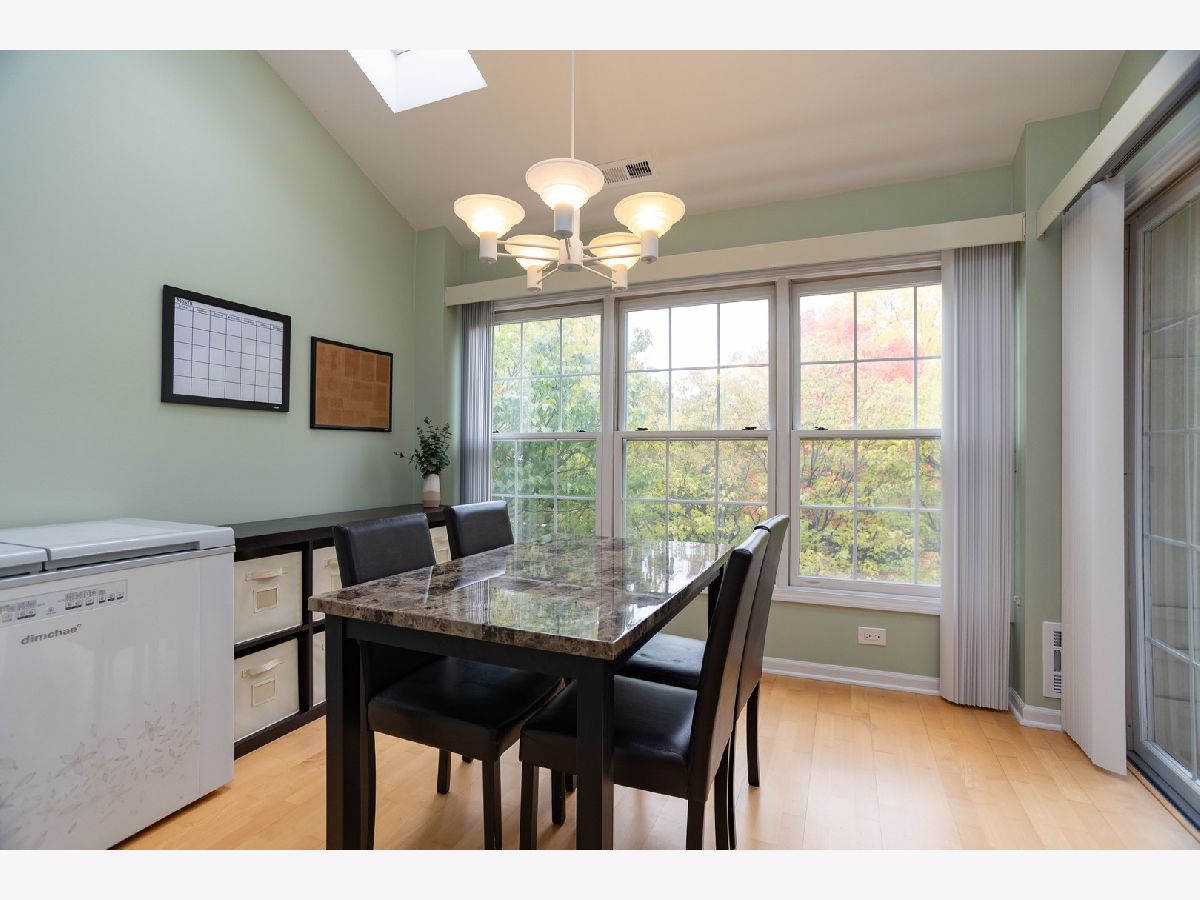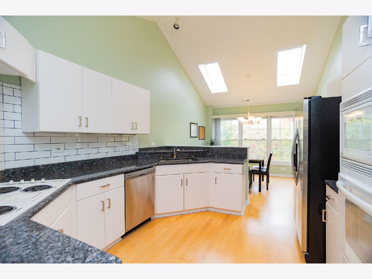 Welcome to this spacious, 2nd floor open concept home, located in Princeton Village! This beautiful 3 bedroom home has so much to offer! You are immediately welcomed by soaring cathedral ceilings with natural light flooding in from the skylights and a formal dining area. The large windows and the balcony offer a charming view of the outside garden. The eat in kitchen features granite countertops with a door to the balcony. The cozy family room has a gas fireplace with custom-designed built-in cabinetry. The master bedroom comes with a walk-in closet and newly remodeled bathroom. The second bedroom has plenty of space and an updated bathroom. This gated community has landscaped grounds and walking paths, outdoor pool and clubhouse. Conveniently located by The Glen, Metra, great restaurants, shopping, parks, award winning Glenview Schools and Interstate 294!
