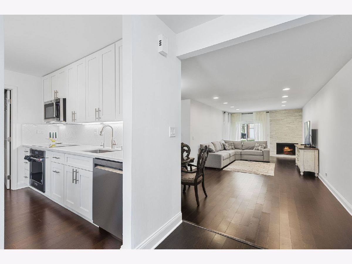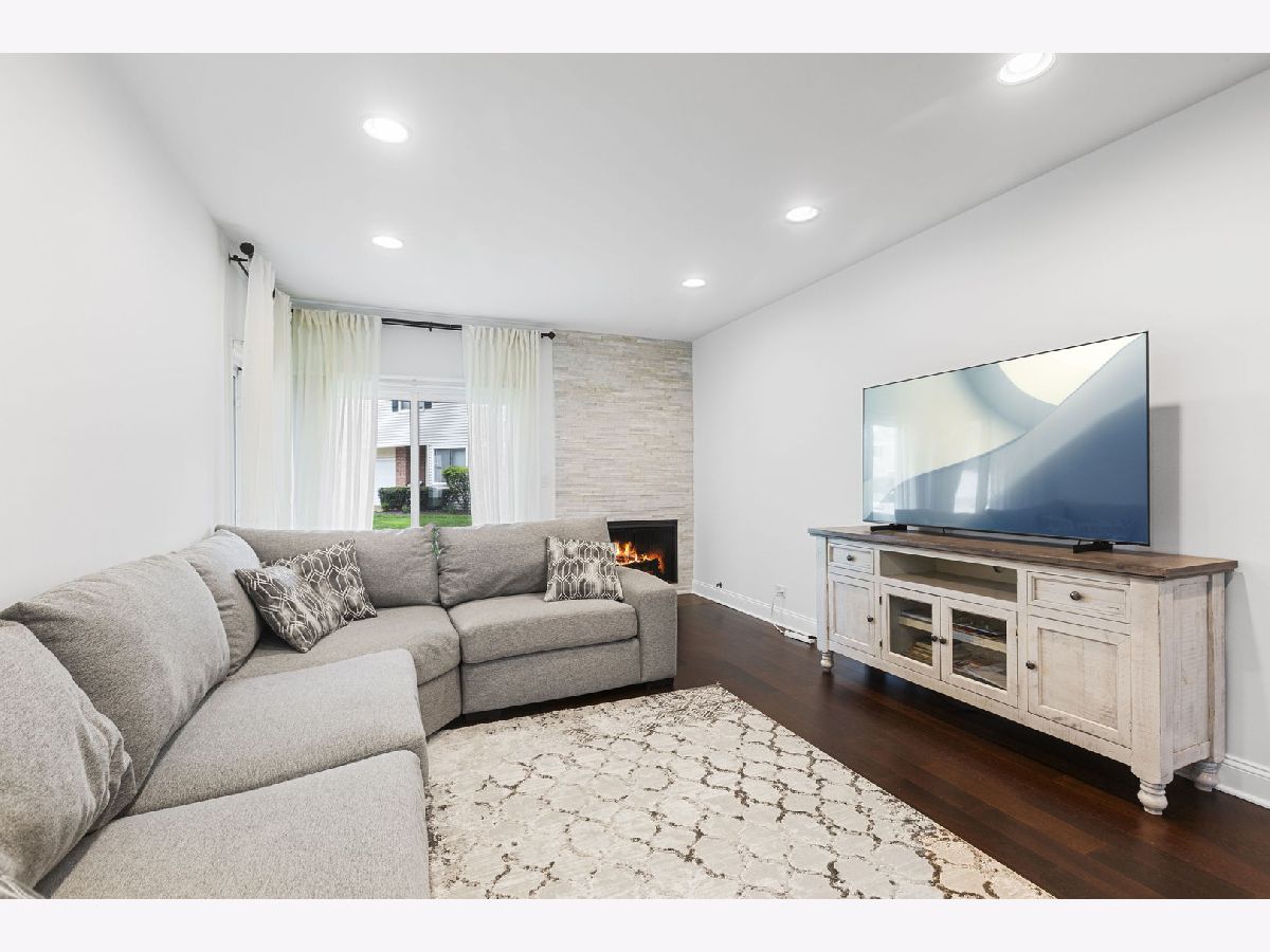 Presenting Luxury 2 bedroom 2 full bath ranch style townhome in Hidden Lake Village, Buffalo Grove. Stepping inside the hallway you will be welcomed by a spacious Living Room with recessed lighting, cozy fireplace and high quality wood laminate floors installed in 2022. Sliding doors wall-to-wall window in the living room brings natural light and leads to private patio. Dining room is connected with living room. Fully updated eat-in kitchen with recessed lighting, new cabinets, built in pantry, quartz counters, tiled backsplash, stainless steel appliances, wood laminate flooring and sliding doors leading to front private patio. The enormous size primary suite with stunning and luxurious just completely remodeled master bathroom in 2024 April, two closets with organizers! Second bathroom all new with in 2023. This home impresses with the quality and elegance. Everything was update recently and upgrades include; New washer, professional paint and high quality wood laminate floors, recessed lights, modern light fixtures throughout the unit and new patio cement blocks that seller has installed, new water heater 2022, furnace 2023, new doors and custom made closet doors. From private garage entering to mud room with extra storage space. Common grounds amenities provide plenty of opportunities for recreation at outdoor pool, tennis courts or playground. Conveniently located near the Buffalo Grove Fitness Center, Sky Fitness, Mike Rylko Community Park, commuter train, and shopping centers, this home offers easy access to all your daily needs. Complex offers pool and clubhouse, playground and parks near by. Once you see it, you will want to move right in! This gorgeous home resides in award-winning Adlai Stevenson High School district and walking distance to elementary school.