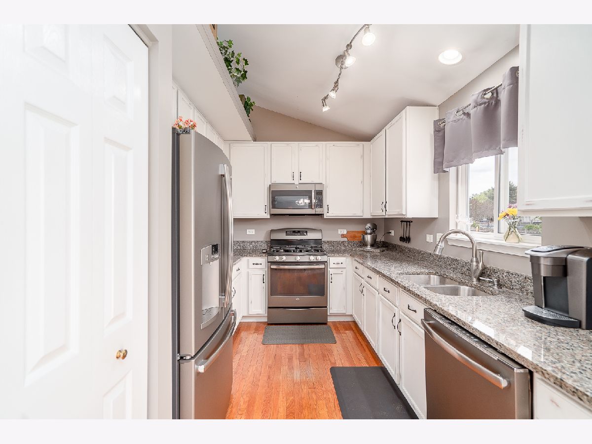 This amazing, nicely updated home that's nestled on a parklike lot features: Sun-filled vaulted living room & dining room with gleaming hardwood flooring; Updated kitchen that boasts beautiful white "distressed" cabinets, granite counters, stainless steel appliances & hardwood flooring; Breakfast area with door to the 30x18 paver patio overlooking the privacy fenced parklike yard that features loads of perennials; Spacious family room with many windows; Main level laundry/mudroom with custom organizers; Remodeled powder room with slate tile wall; Large master suite that offers double closets & new, private bath with "wood-look" porcelain tile & double vanity; Bath #2 has been updated as well; Full, finished basement that offers a recreation room with electric fireplace, office, ensuite bedroom with full bath that is perfect for related living & storage; 3 car, heated & finished garage with cabinets; Newer carpet, hardwood flooring; roof, water heater, water softener & more.