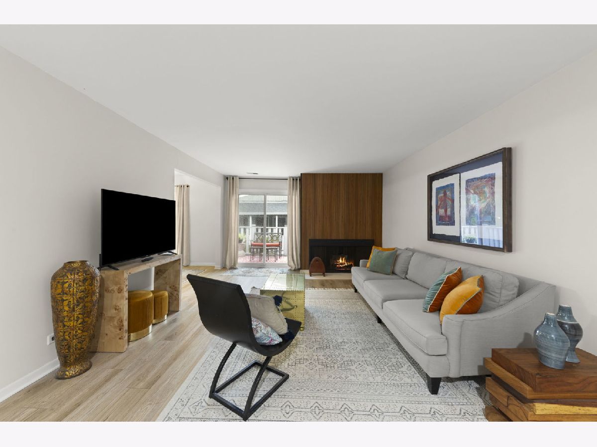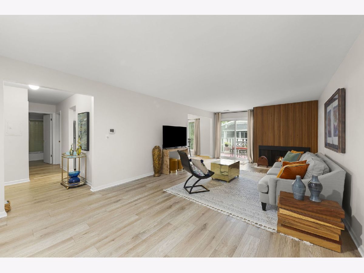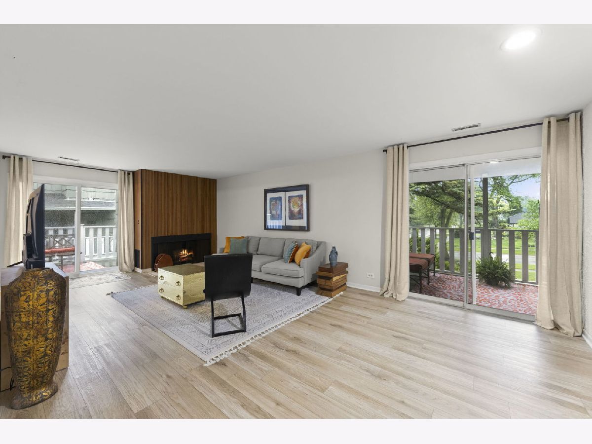 NEWLY RENOVATED condo boasts Luxury Vinyl Plank Flooring throughout (newer carpet in the bedroom), new Stainless Steel Appliances and Backsplash added in the kitchen, redesigned Fireplace, new Drapes throughout, new bathroom Vanity, Faucet and Toilet, and freshly Painted! A Great Location nestled on a quiet, low-traffic street in the desirable Streams subdivision; this corner-unit condo offers the best of both worlds-peaceful condo living with exceptional outdoor space. Surrounded by mature trees and professional landscaping, this home features two expansive wood decks: a covered 21' x 7' south-facing balcony perfect for relaxing even on rainy days, and a 16' x 8' east-facing deck overlooking lush green lawns-your personal outdoor retreat. Inside, you'll find a bright and spacious living room with two sliding glass doors, a separate dining area ideal for entertaining, and an eat-in kitchen with abundant cabinet space. The generously sized bedroom includes a large closet, and the conveniently located laundry room sits just steps outside your door. A storage room for this unit is available in the building. Easy access to Atten Park, Cantigny Golf Course, Blackwell Forest Preserve, and downtown Wheaton's shopping, dining, and entertainment, this home truly has it all. No Rentals Allowed-perfect for those looking for a stable, owner-occupied community. Don't miss this like-new property!