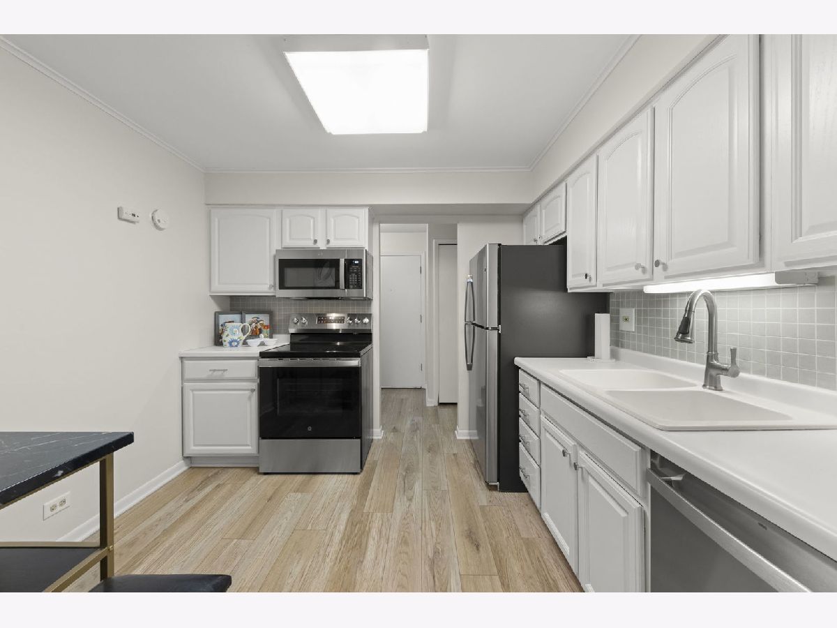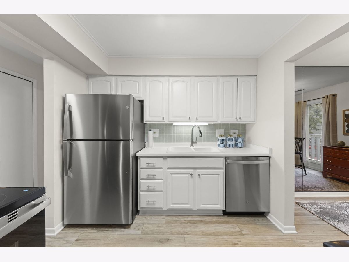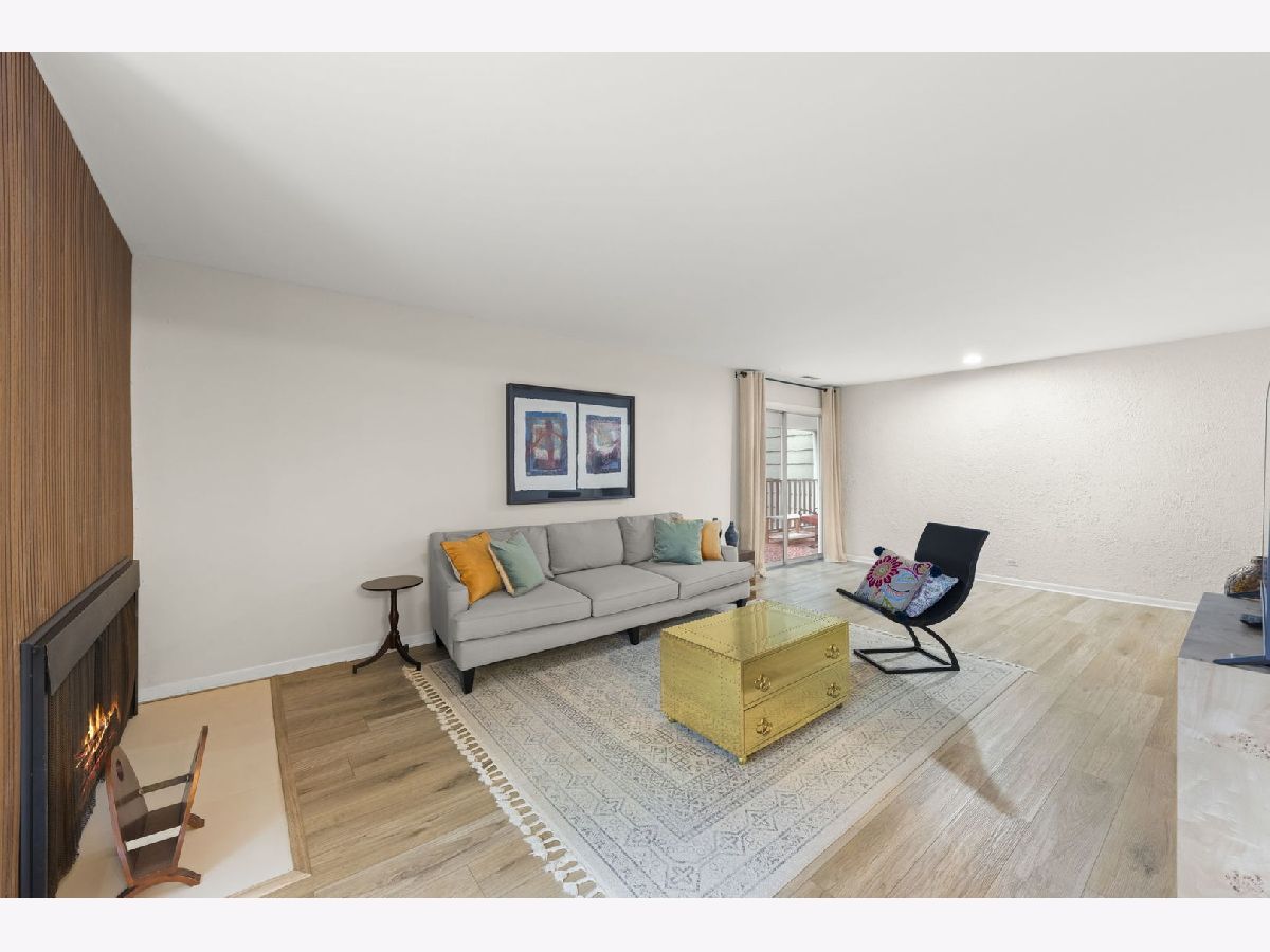 NEWLY RENOVATED condo boasts Luxury Vinyl Plank Flooring throughout (newer carpet in the bedroom), new Stainless Steel Appliances and Backsplash added in the kitchen, redesigned Fireplace, new Drapes throughout, new bathroom Vanity, Faucet and Toilet, and freshly Painted! A Great Location nestled on a quiet, low-traffic street in the desirable Streams subdivision; this corner-unit condo offers the best of both worlds-peaceful condo living with exceptional outdoor space. Surrounded by mature trees and professional landscaping, this home features two expansive wood decks: a covered 21' x 7' south-facing balcony perfect for relaxing even on rainy days, and a 16' x 8' east-facing deck overlooking lush green lawns-your personal outdoor retreat. Inside, you'll find a bright and spacious living room with two sliding glass doors, a separate dining area ideal for entertaining, and an eat-in kitchen with abundant cabinet space. The generously sized bedroom includes a large closet, and the conveniently located laundry room sits just steps outside your door. A storage room for this unit is available in the building. Easy access to Atten Park, Cantigny Golf Course, Blackwell Forest Preserve, and downtown Wheaton's shopping, dining, and entertainment, this home truly has it all. No Rentals Allowed-perfect for those looking for a stable, owner-occupied community. Don't miss this like-new property!