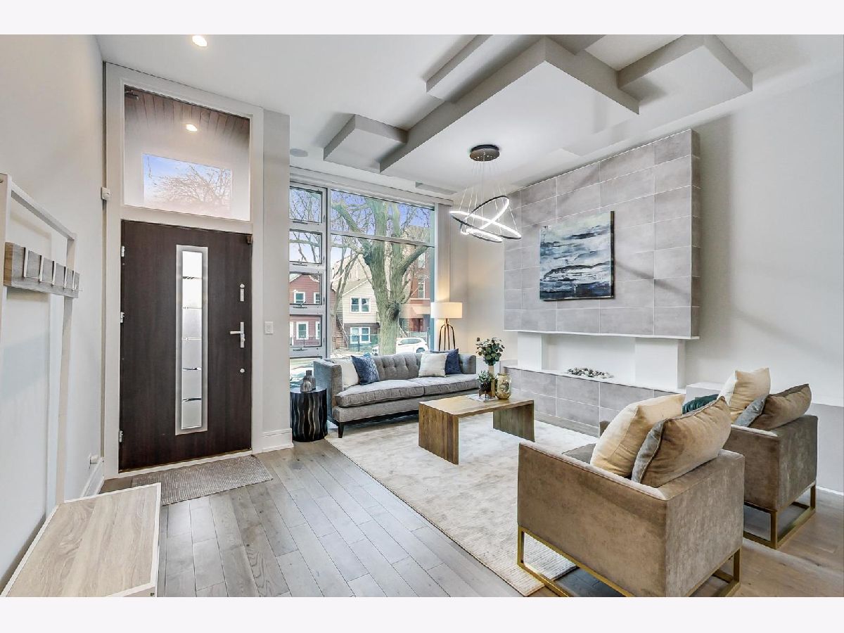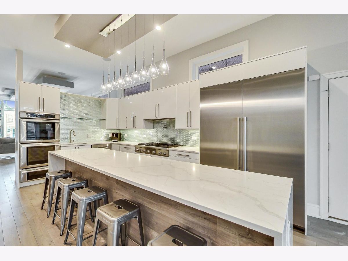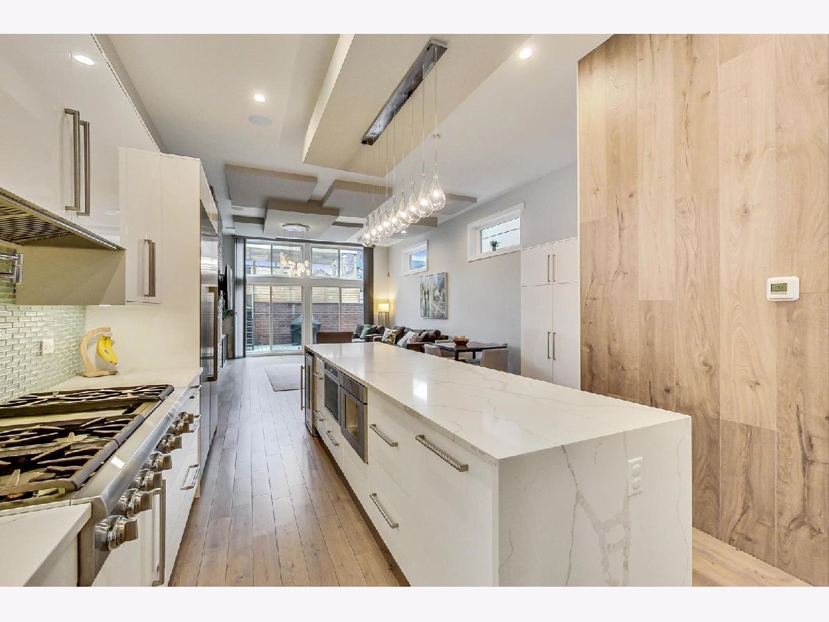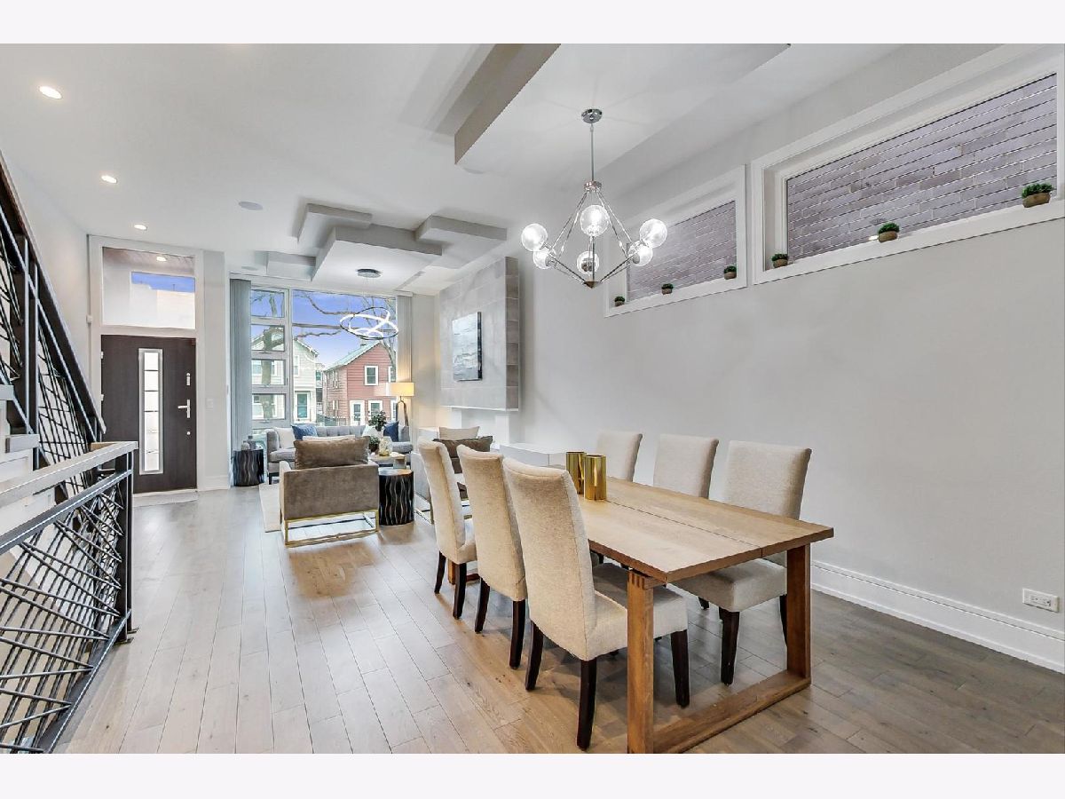 Nestled in the heart of Ukrainian Village, this stunning, like-new single family home blends modern aesthetic with unparalleled quality and craftsmanship that stands up to any new construction home on the market today. Once you step inside, you'll be immersed in natural light that pours through the floor to ceiling windows. Home features wide-plank, oak floor throughout, not an inch of carpet to be found! Thoughtful floor plan, features formal living and dining rooms in the front of the house. The rear boasts a large chef's kitchen, w/ designer finishes, high-end stainless steel Thermador appliances, island with quartz waterfall detail and an abundance of storage. Kitchen opens up to family room. Two fireplaces on the main level and a powder room. Second floor features 3 spacious bedrooms and side by side laundry closet. Primary suite, features a walk-in-closet to envy, opulent spa-like bath w/ tons of counter space, separate soaking tub and shower. Lower level features a large family room w/ 3rd fireplace and wall-mounted TVs, wet bar w/ wine fridge, dishwasher, and tons of storage, plus 2 more large bedrooms, a full bathroom and a second laundry room. Not to be outdone by the interior space this home boasts unparalleled outdoor living space. Interior stairs lead to the fourth floor, which features the home's second wet bar, complete with its own sink, dishwasher, ice maker and wine/beverage fridge. Rooftop deck is completely built out with composite decking that provide 360 degree views of Chicago. Out back, the family room leads to a large rear deck w/ gas line for grill and a second full deck w/ pergola above the oversized 2.5 car garage. From the upgraded light, built-out closets, window treatments, dual-zoned HVAC system, ADT security system and radiant heated floors in the lower level, this home is fully loaded! Huron is a quiet one-way street, just off the dining, shopping and nightlife in all directions!