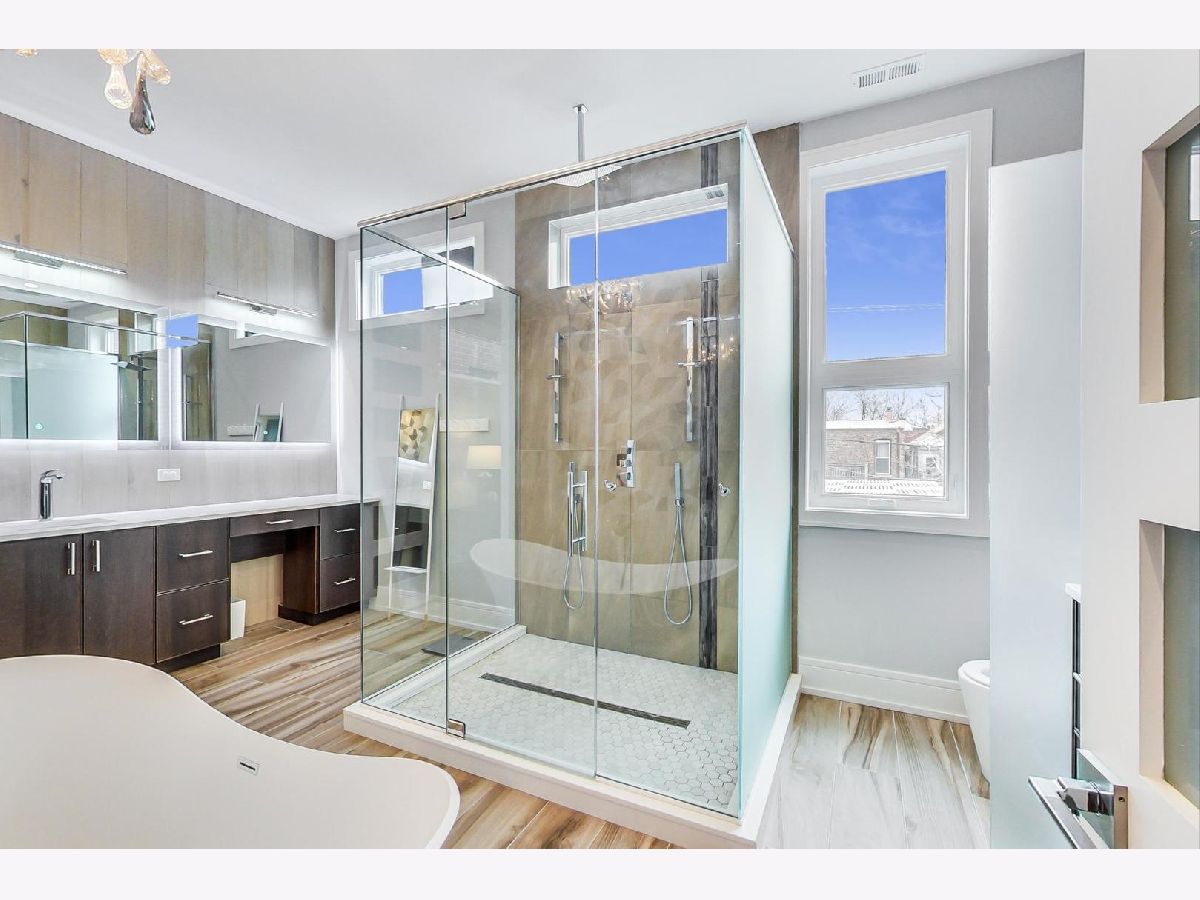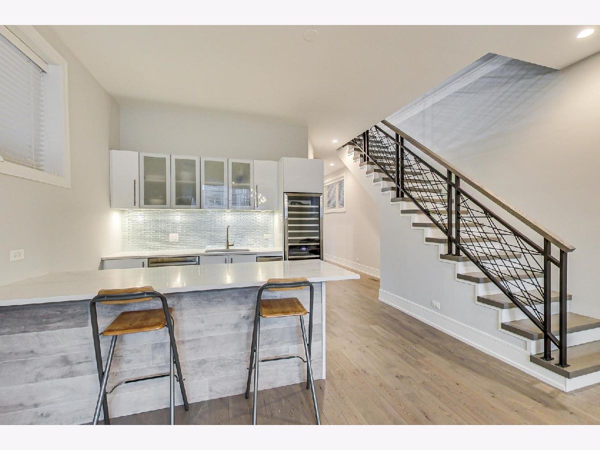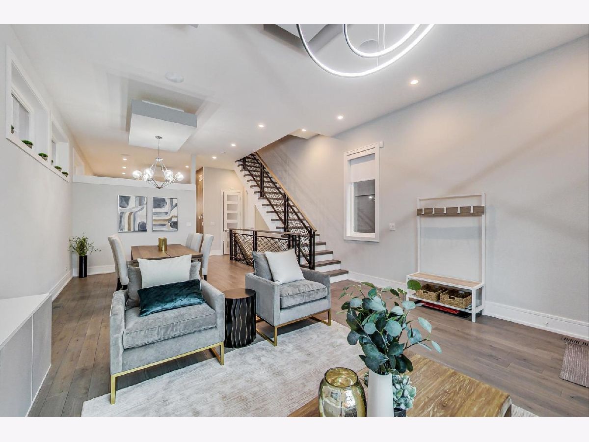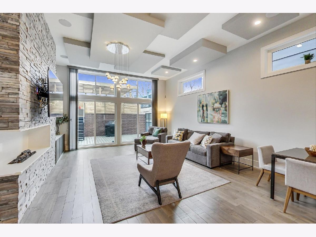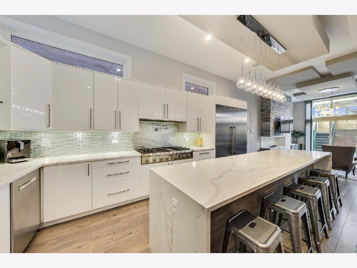 Nestled in the heart of Ukrainian Village, this stunning, like-new single family home blends modern aesthetic with unparalleled quality and craftsmanship that stands up to any new construction home on the market today. Once you step inside, you'll be immersed in natural light that pours through the floor to ceiling windows. Home features wide-plank, oak floor throughout, not an inch of carpet to be found! Thoughtful floor plan, features formal living and dining rooms in the front of the house. The rear boasts a large chef's kitchen, w/ designer finishes, high-end stainless steel Thermador appliances, island with quartz waterfall detail and an abundance of storage. Kitchen opens up to family room. Two fireplaces on the main level and a powder room. Second floor features 3 spacious bedrooms and side by side laundry closet. Primary suite, features a walk-in-closet to envy, opulent spa-like bath w/ tons of counter space, separate soaking tub and shower. Lower level features a large family room w/ 3rd fireplace and wall-mounted TVs, wet bar w/ wine fridge, dishwasher, and tons of storage, plus 2 more large bedrooms, a full bathroom and a second laundry room. Not to be outdone by the interior space this home boasts unparalleled outdoor living space. Interior stairs lead to the fourth floor, which features the home's second wet bar, complete with its own sink, dishwasher, ice maker and wine/beverage fridge. Rooftop deck is completely built out with composite decking that provide 360 degree views of Chicago. Out back, the family room leads to a large rear deck w/ gas line for grill and a second full deck w/ pergola above the oversized 2.5 car garage. From the upgraded light, built-out closets, window treatments, dual-zoned HVAC system, ADT security system and radiant heated floors in the lower level, this home is fully loaded! Huron is a quiet one-way street, just off the dining, shopping and nightlife in all directions!