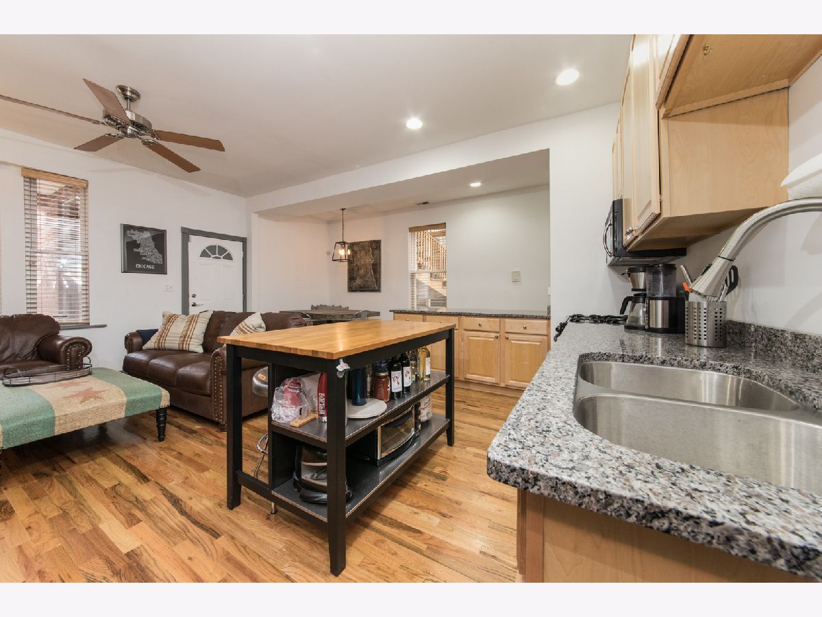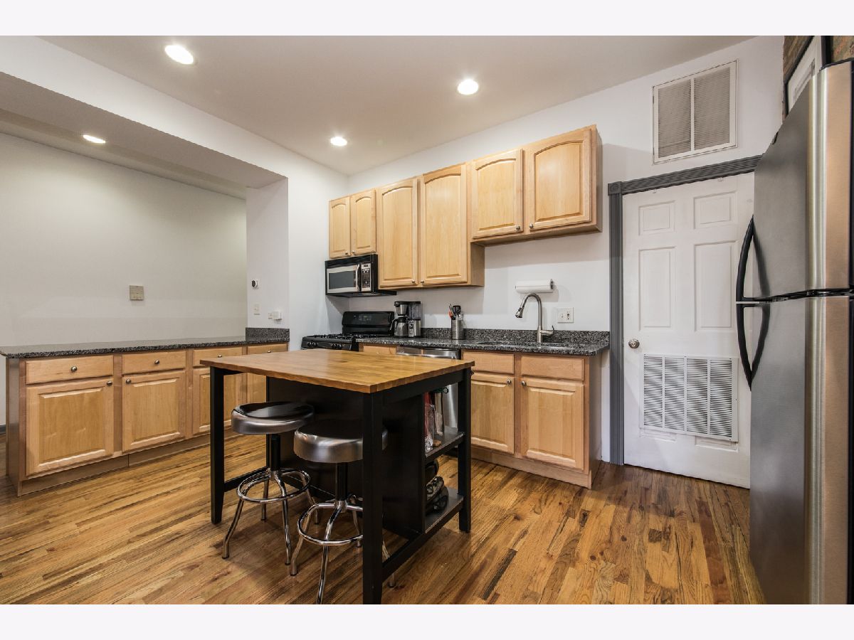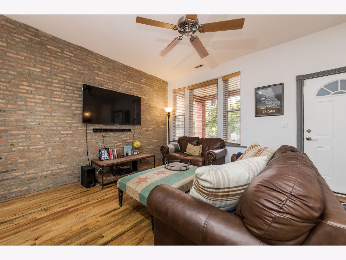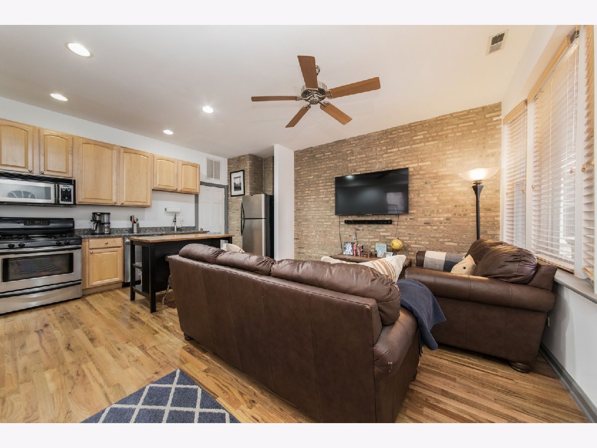 Beautiful 900sqft 1BR condo in the heart of Ukrainian Village! High first floor unit. Kitchen boasts SS appliances, new granite counters, 42" maple cabs and breakfast bar. Dining area nook has built in bench for additional seating. Open concept dining/living/kitchen combo with hardwood floors, beautiful exposed brick wall with tons of natural light. New granite in kitchen and kitchen sink, freshly painted throughout, new bathroom vanity w/granite and lighting. Walk to Damen/Division shops and nightlife. Large rear deck for grilling and hanging out.