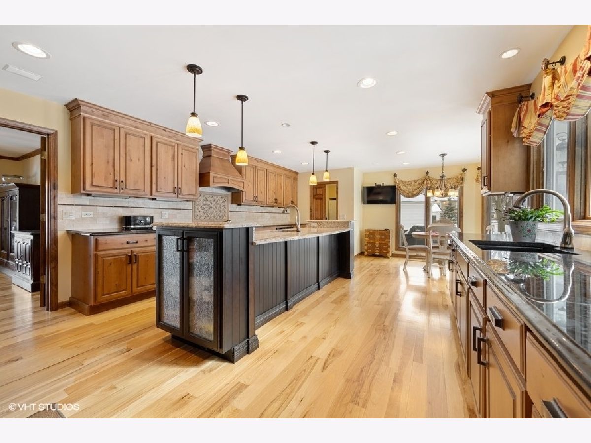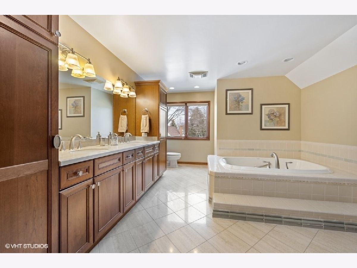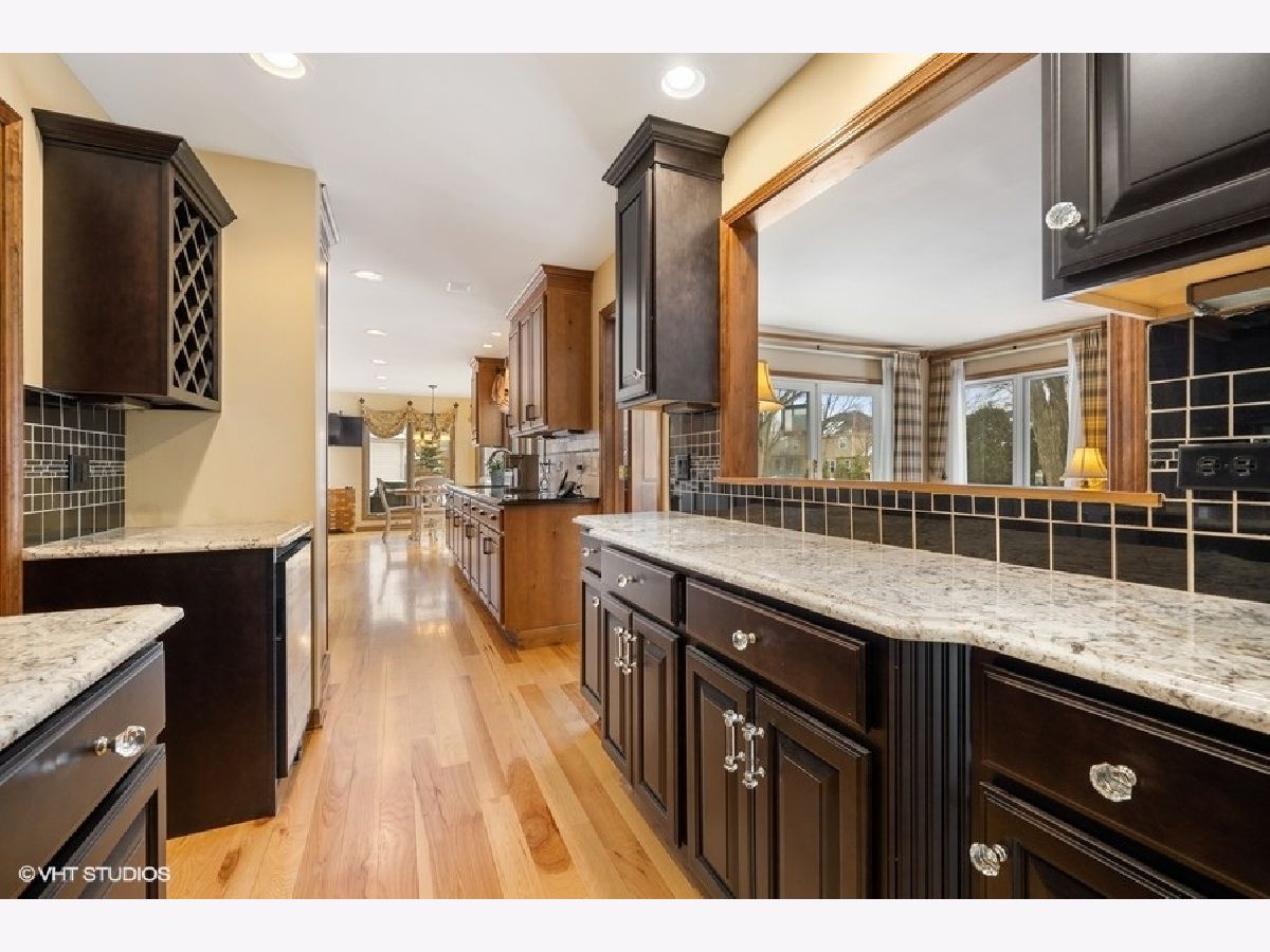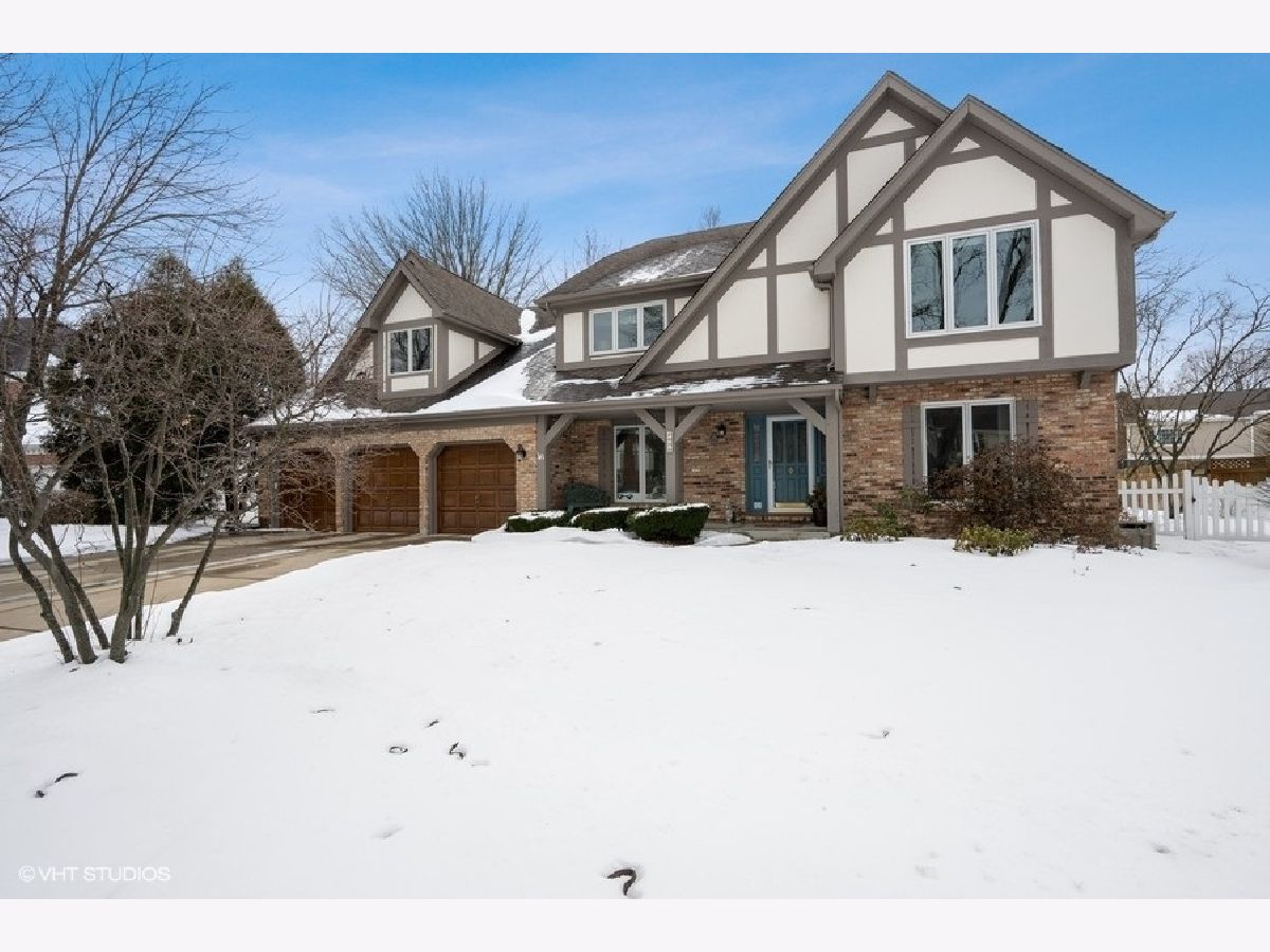 This beautiful Tudor style home is located in the desirable Stonehedge subdivision of Wheaton, IL. The location is close to Brighton Park/Playground & 66-acre Seven Gables Park, Whole Foods, Starbucks, and top rated schools. Enter the home off the huge front porch, through the stained glass entry door into the welcoming foyer with beautiful hickory wood floors. To the right is the private office with built in shelving, hardwood floors and a large closet. Further down the hall is a bright and roomy living room also with hardwood floors, this room could be a second office or a playroom for the kids. The Family room has a masonry fireplace with gas logs and lots of windows for natural light, there are sliding glass doors that lead you onto the stamped concrete patio and the expansive, fenced-in backyard. There is a beautiful butlers pantry off the family room with custom cabinetry, unique door pulls, granite countertops, a wine rack and a beverage refrigerator. Enter into the HUGE kitchen with an overabundance of beautiful Alder wood cabinets, upgraded granite countertops, a spacious island with a prep sink. The Kitchen is expansive with a breakfast nook too. There is a large dining room with hickory floors, crown molding and plenty of room for large family gatherings. The dining room also has a stained glass door to close it off from the kitchen. Come into the house from the 3 car garage into a roomy mudroom with lots of storage that enters into the kitchen. As you go upstairs notice the updated wrought iron rails and the spacious upstairs landing which is where the laundry room is located. The Master suite is very expansive with 2 walk in closets and a bay window overlooking the yard. The 3 other bedrooms are also large with great closets, and they share the updated hall bath with a separate shower room and 2 sinks. The basement is finished with a media room, a recreation room and sauna and lots of storage. Zoned heat and AC. Don't hesitate to come and see this home, it won't last long! Welcome to Wheaton!