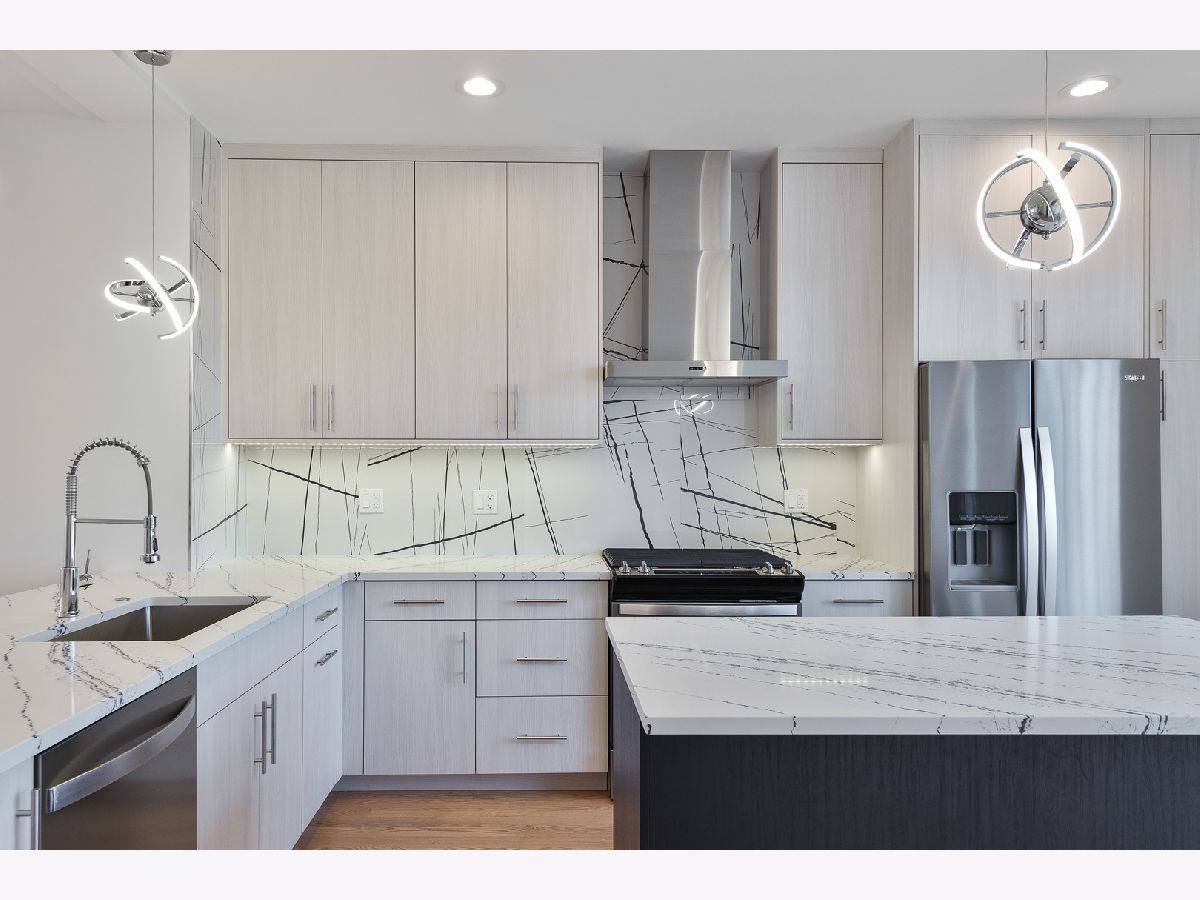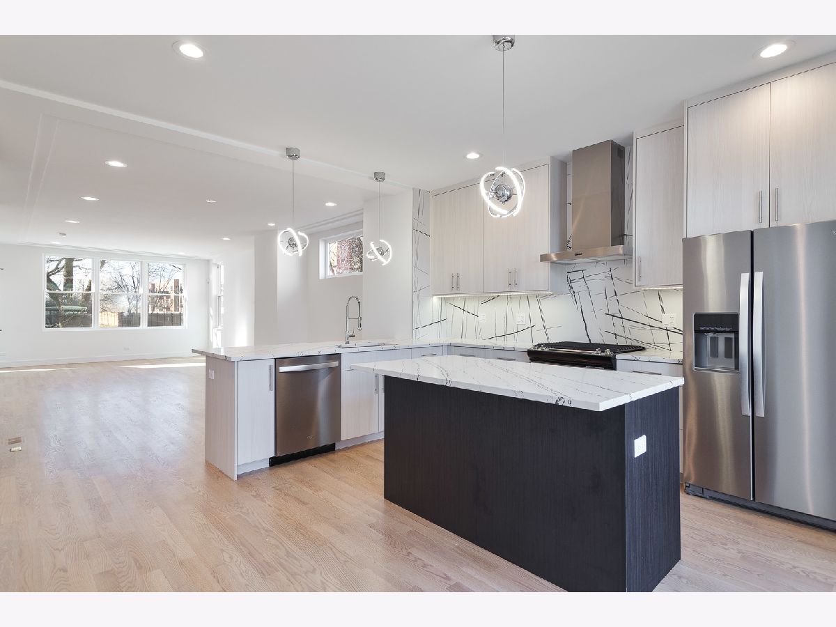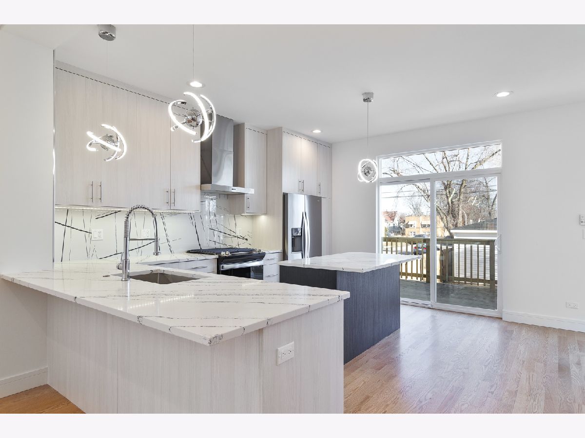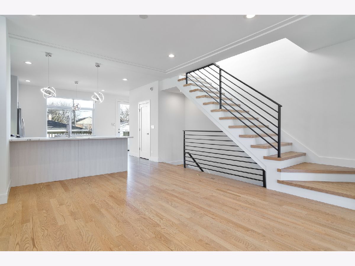 Modern new construction single family home by top developer! Sun filled open concept main level features spacious living/dining area with oversized front windows and hardwood flooring throughout. Adjoining eat-in kitchen with stainless steel Whirlpool appliance package, soft close cabinetry, quartz counters, island with breakfast bar seating, pantry, and patio door to rear deck. Bright and spacious primary bedroom with good storage and private bath featuring a frameless glass shower and dual vanity. Two additional bedrooms, full guest bath with tub, and laundry complete the upper level. Sunny lower level featuring a family room with wet bar, 4th bedroom, full bath, and utilities. On trend design features and tons of natural light! Large, enclosed yard with rear deck and detached two-car garage. Steps to the Metra station. Conveniently located near shopping, restaurants, parks, and more!