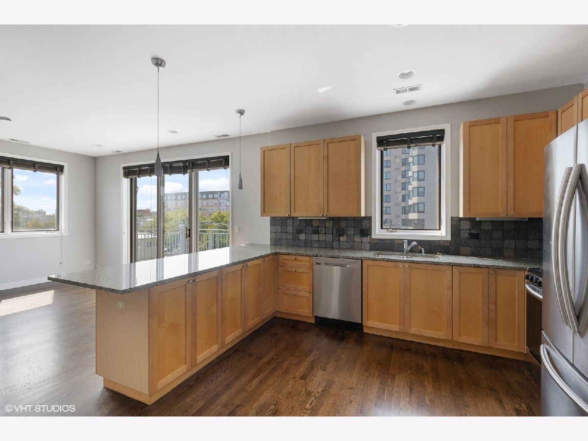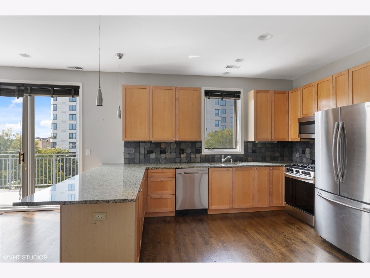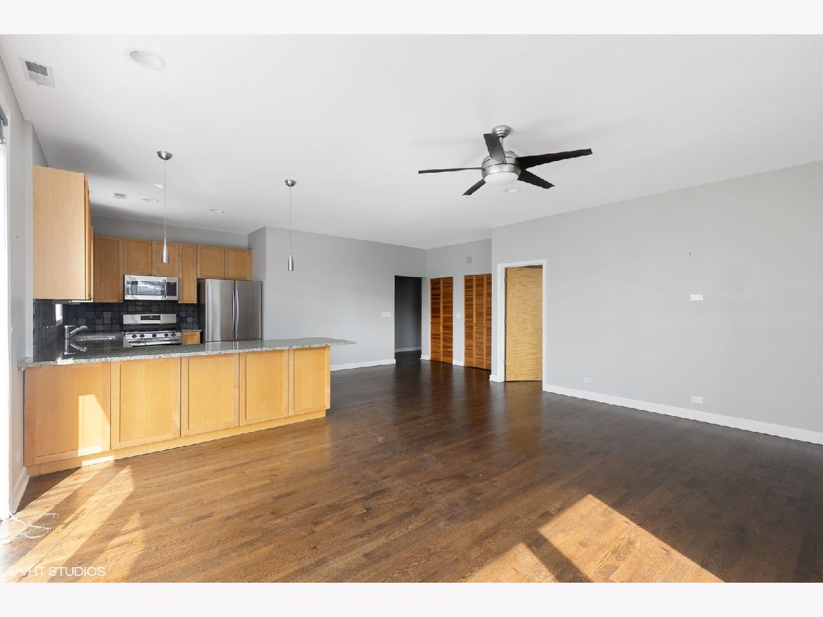 Immaculate 3BD/2BA sunlit top floor unit in boutique elevator building just north of Western Blue Line, Margie's Ice Cream and the 606 Trail in ideal Bucktown location. This amazing unit has an expansive open-concept living/dining area that features a chef's kitchen with stainless steel appliances and granite countertops with slate backsplash and can comfortably accommodate a large couch setup as well as a dining room table. Directly off the entertaining area is a large west facing balcony with room for outdoor seating and al fresco dining to soak in sunset views. The master suite is accompanied by a walk-in closet and marble bath with whirlpool tub, double vanity sink, and separate shower. The west-facing unit does not share walls with any other unit and is located in back of building off Western Avenue so very quiet. A fantastic unit in an elevator building with attached garage parking included in the price.