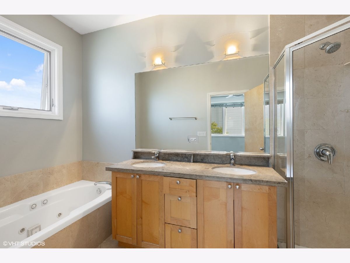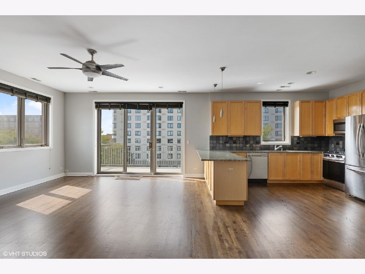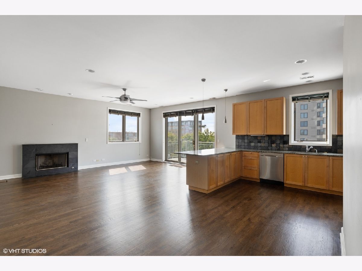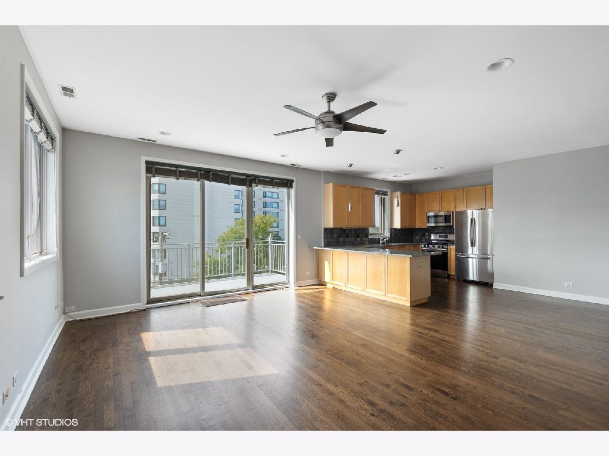 Immaculate 3BD/2BA sunlit top floor unit in boutique elevator building just north of Western Blue Line, Margie's Ice Cream and the 606 Trail in ideal Bucktown location. This amazing unit has an expansive open-concept living/dining area that features a chef's kitchen with stainless steel appliances and granite countertops with slate backsplash and can comfortably accommodate a large couch setup as well as a dining room table. Directly off the entertaining area is a large west facing balcony with room for outdoor seating and al fresco dining to soak in sunset views. The master suite is accompanied by a walk-in closet and marble bath with whirlpool tub, double vanity sink, and separate shower. The west-facing unit does not share walls with any other unit and is located in back of building off Western Avenue so very quiet. A fantastic unit in an elevator building with attached garage parking included in the price.