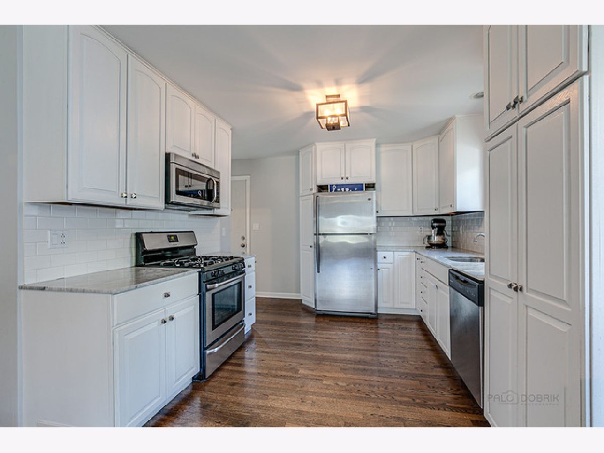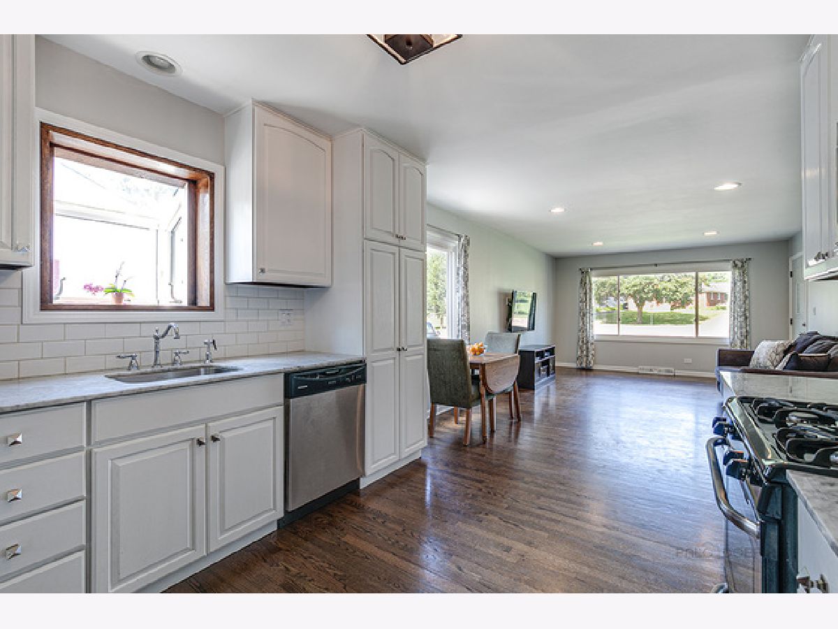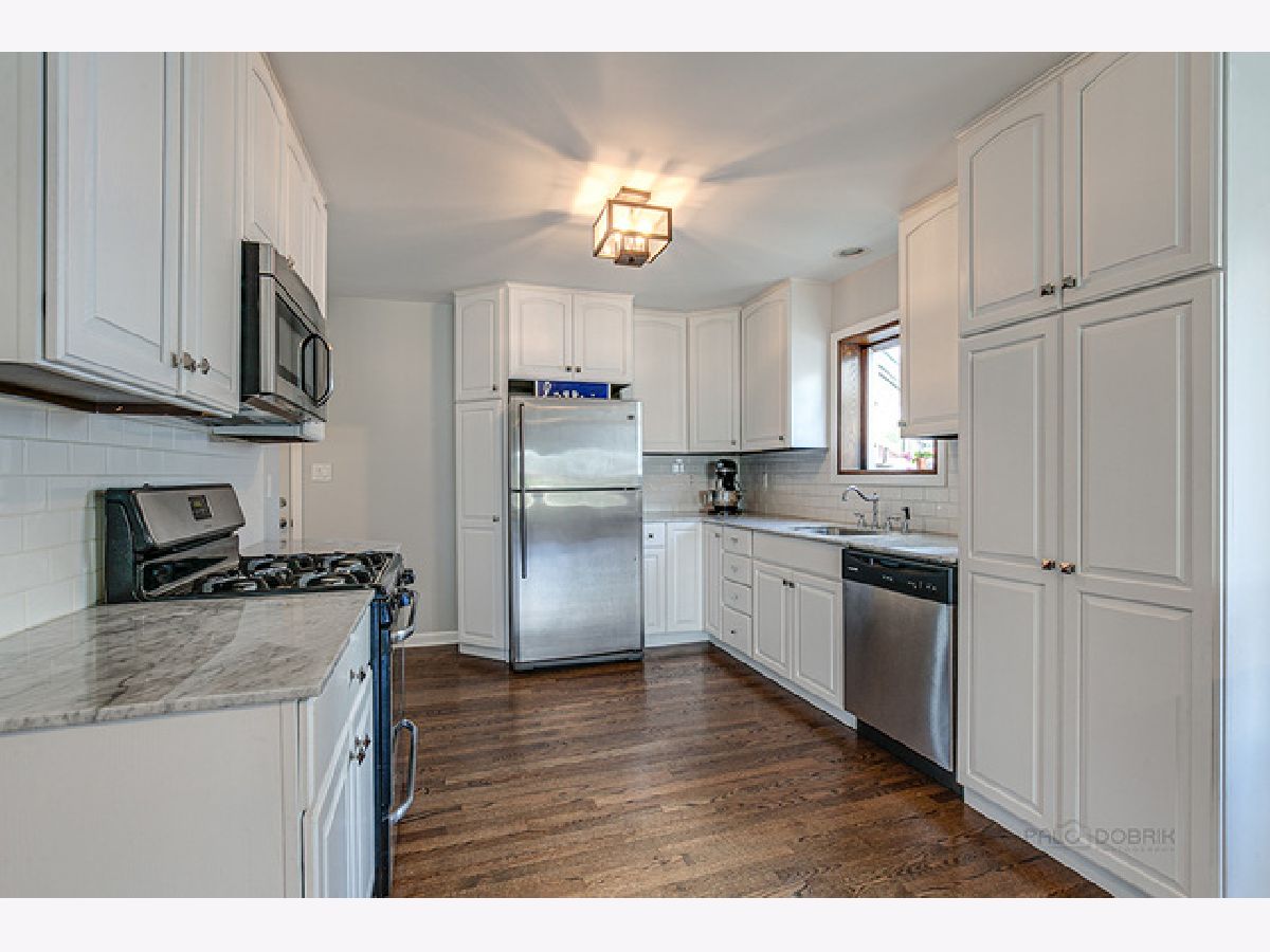 Refresh, relax and enjoy peaceful views from your front porch. New furnace and A/C in 2016. Freshly painted in today's most sought-after color palette. Head inside where you will be greeted by remarkable hardwood flooring that extends throughout the first floor. Enjoy family gatherings in the generous sized sun-filled living/dining room combo with large picture window. The eat-in kitchen showcases marble countertops, quality stainless steel appliances, subway tile backsplash and a myriad of white cabinets, for all your storage needs. Three generous sized bedrooms with plentiful closet space, shared full bath complete the main level. Walk downstairs where you will find the finished basement that adds to the living space with an expansive family room, fourth bedroom with walk-in closet, full bath, laundry, and versatile room that can be a great home office or fifth bedroom. Outside you will find a great space to enjoy summer cookouts in the fully fenced yard! 2.5 car detached garage. Close to parks and walking trails.