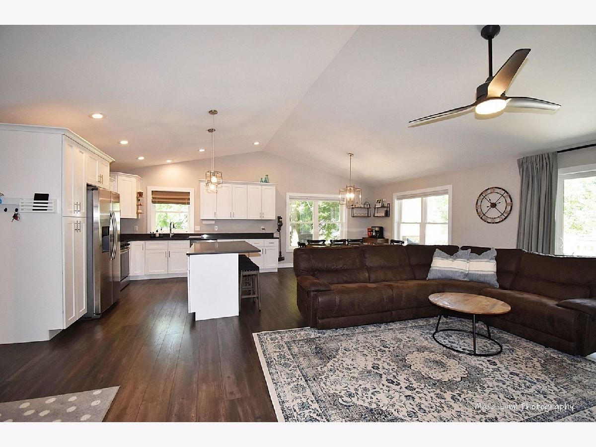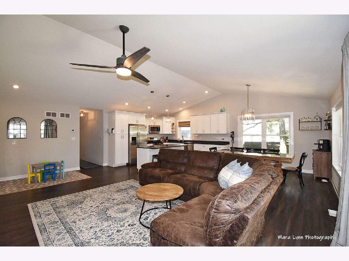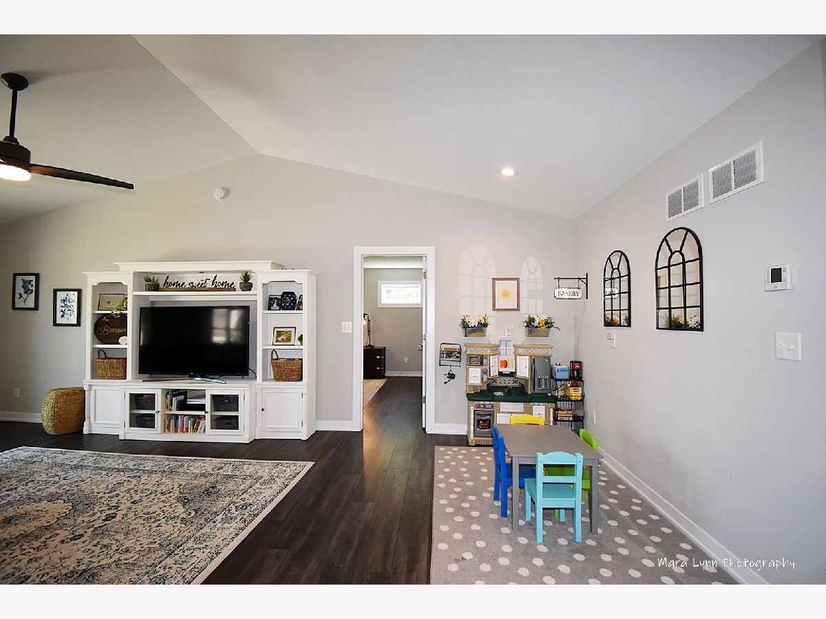 3-YEAR-NEW RANCH w/FULL basement and completely fenced yard! Say goodbye to walking up & down stairs or worries about home updates!! This 3-bedroom, 2-bath ranch home is upgraded to the HILT! It's the perfect mix of elegant, yet casual. Easy to maintain, gorgeous engineered hardwood floors and Graber blinds throughout the entire home. In the kitchen, you'll be WOWed by stunning fixtures, soft close drawers, white cabinetry, quartz counter tops, stainless steel appliances & fabulous island for food prep, dining & gathering. Master suite boasts a HUGE walk-in closet & the most luxurious spa-like bath you can imagine--it is beautiful! Oversized walk-in shower with gorgeous barn-style sliding-glass door, double sinks, quartz vanities...AMAZING! All appliances stay, including washer and dryer! RING doorbell, flood lights, ceiling fans, water softener, radon mitigation system! Basement has rough-in for additional bath. Backyard is the perfect size...big enough for privacy but not too much to maintain...spacious deck, fire pit and completely fenced!!! Situated within vintage Elburn w/mature trees & a quaint & quiet vibe!!! Easy walk to Metra, library, parks and REAMS Meat Market...It's a 10+++