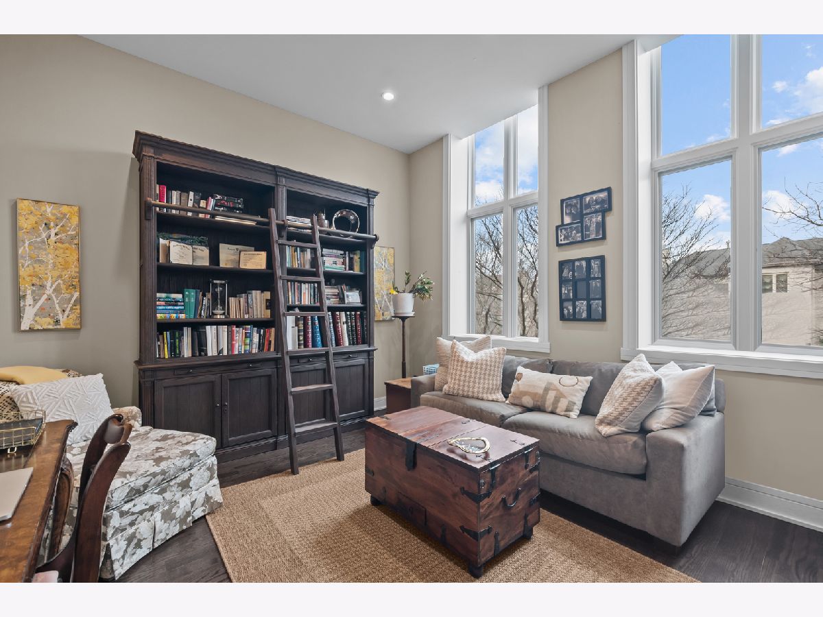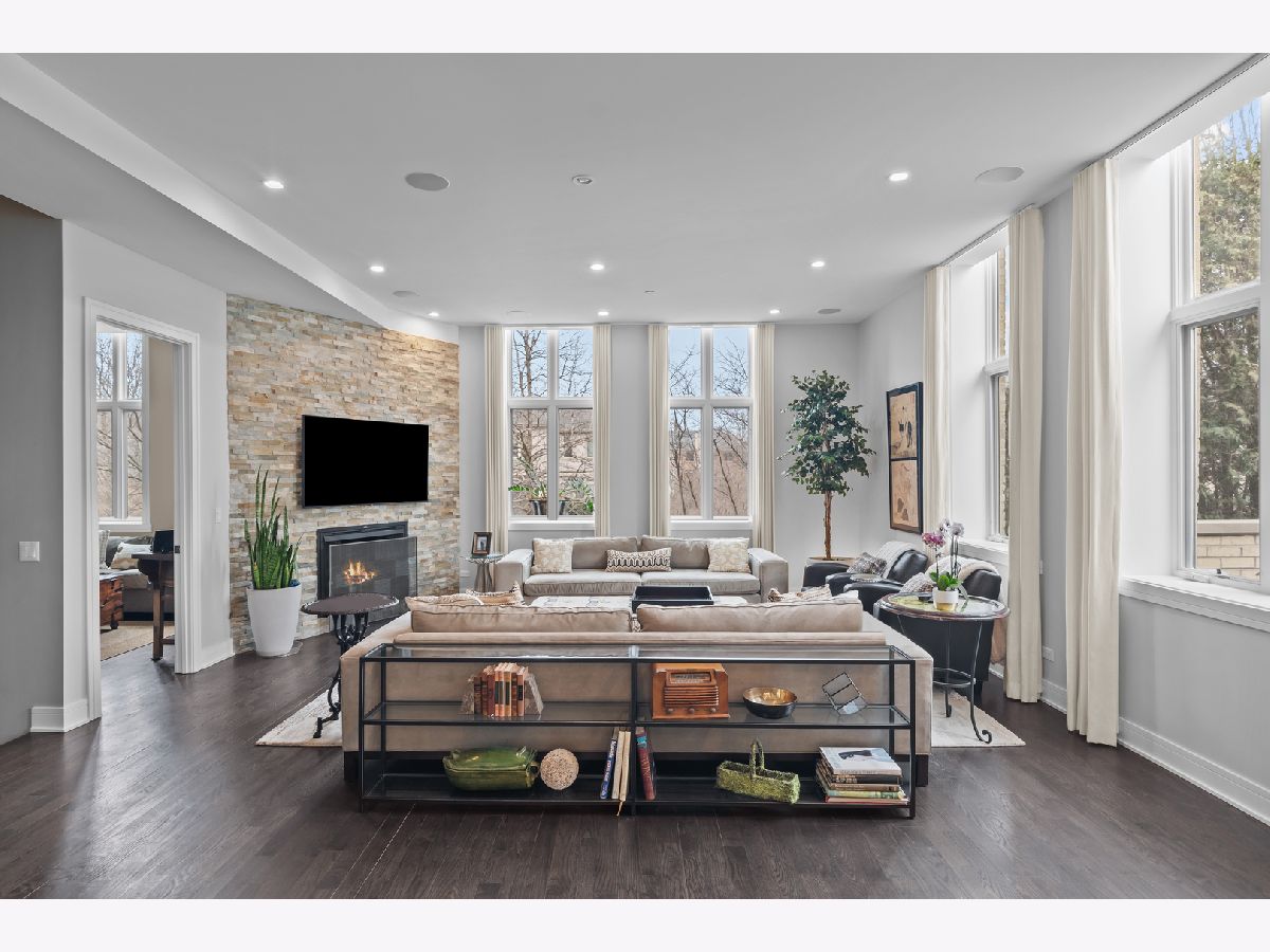 This is a rare opportunity to own a unique residence in Fort Sheridan's historic Enlisted Men's Mess Hall. The home features soaring ceilings, tall windows, and hardwood floors throughout; carpet was added for comfort in the primary suite. The open floor plan is filled with natural light, and there are two generous outdoor spaces; a large balcony spanning nearly the entire side of the building and a ground-level patio. Entering through the grand foyer, you'll immediately notice multiple, gracious seating areas. The kitchen offers plenty of cabinet space and a rebuilt large island, along with updated countertops and backsplash. Custom built-ins and woodwork are featured throughout the home, including a very special entry way. The first-floor office makes working from home a breeze. Upstairs, the primary suite includes two walk-in closets, one currently used as a workout room, and a sitting area with built-ins. The spa bath includes a walk-in double shower, soaking tub and double vanity. Two additional bedrooms and two more full baths, along with a second-floor laundry room featuring a new washer and dryer (2023), The walk-out basement is perfect for entertaining, with a bar and beverage fridge. Lockers and a drop zone off the garage, make life convenient. Also included, a full bathroom. From this level there is direct access to the patio. The heated, attached garage has a spot for an electric charger and extra storage space. 206 Whistler allows you to enjoy maintenance-free living with recent updates, including a new roof, copper downspouts and gutters, exterior tuck pointing, and composite decking on both outdoor spaces. All completed in 2023/2024. This home blends historic charm with modern updates, offering a truly special place to call home.