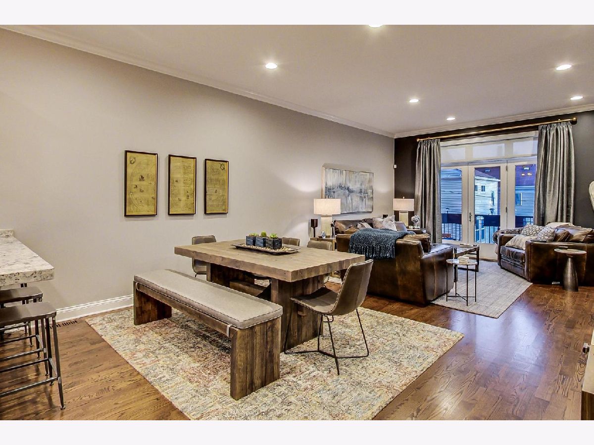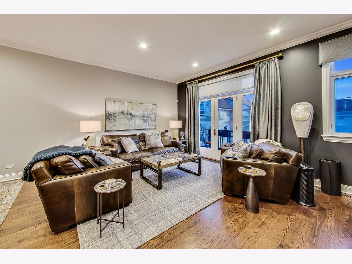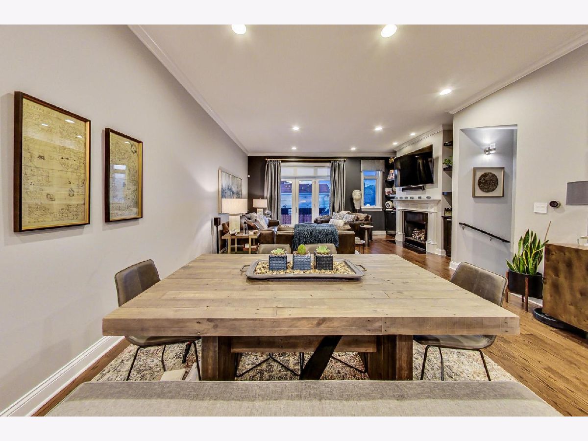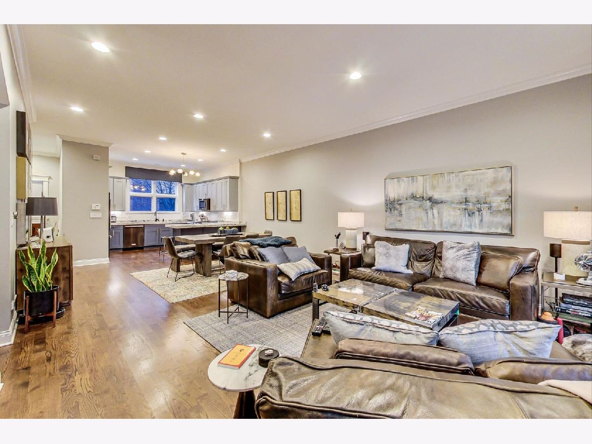 Fantastic Logan Square 4 bedroom, 3 bathroom upgraded townhome with amazing outdoor space. Beautiful kitchen with upgraded thick quartz countertops, backsplash, stainless steel appliances, and breakfast bar open to dining and living room with gas fireplace and south facing balcony. Three bedrooms up with large walk-in-closet in primary. Primary bath has heated floors, double vanity and oversized steam & rain shower with body sprays. Top floor has wet bar with beverage center leading to spectacular rooftop deck with city views. Lower level has 4th bedroom/office with heated floors, full bath and attached 2 car garage. Refinished hardwood floors and closet organizers throughout. All kitchen appliances, washer/dryer and beverage center new from 2018. Meticulously landscaped and gated courtyard and 2 car insulated attached garage. Smart home technology including motorized window treatments on main and lower floor, keyless/wireless entry locks, etc. Short walk to Blue Line, 606 Trail, and WICKER PARK/LOGAN SQUARE dining and retail.