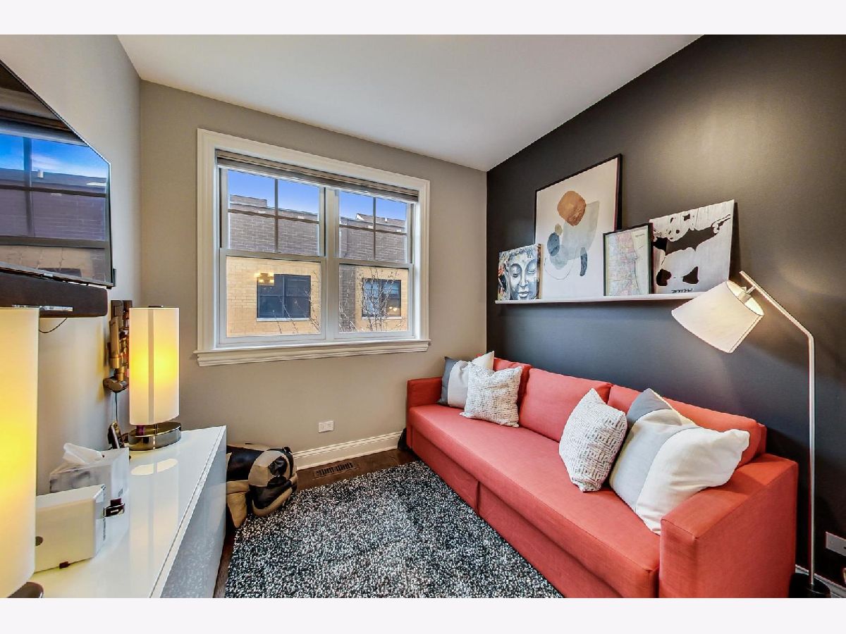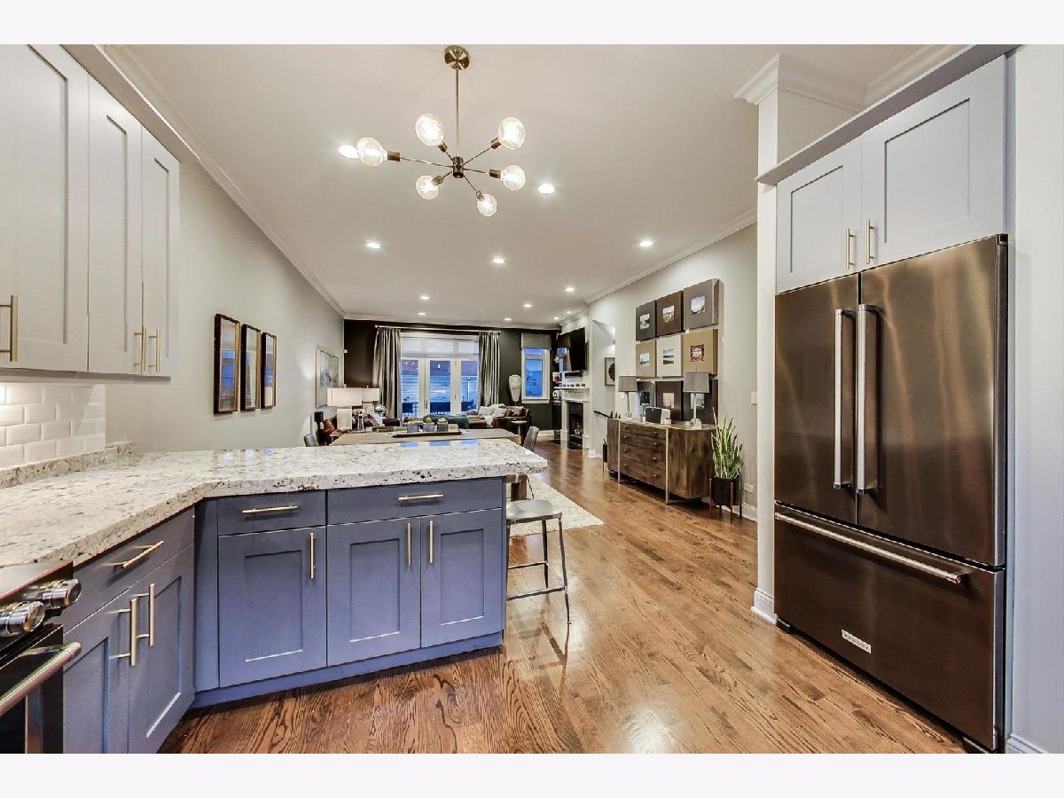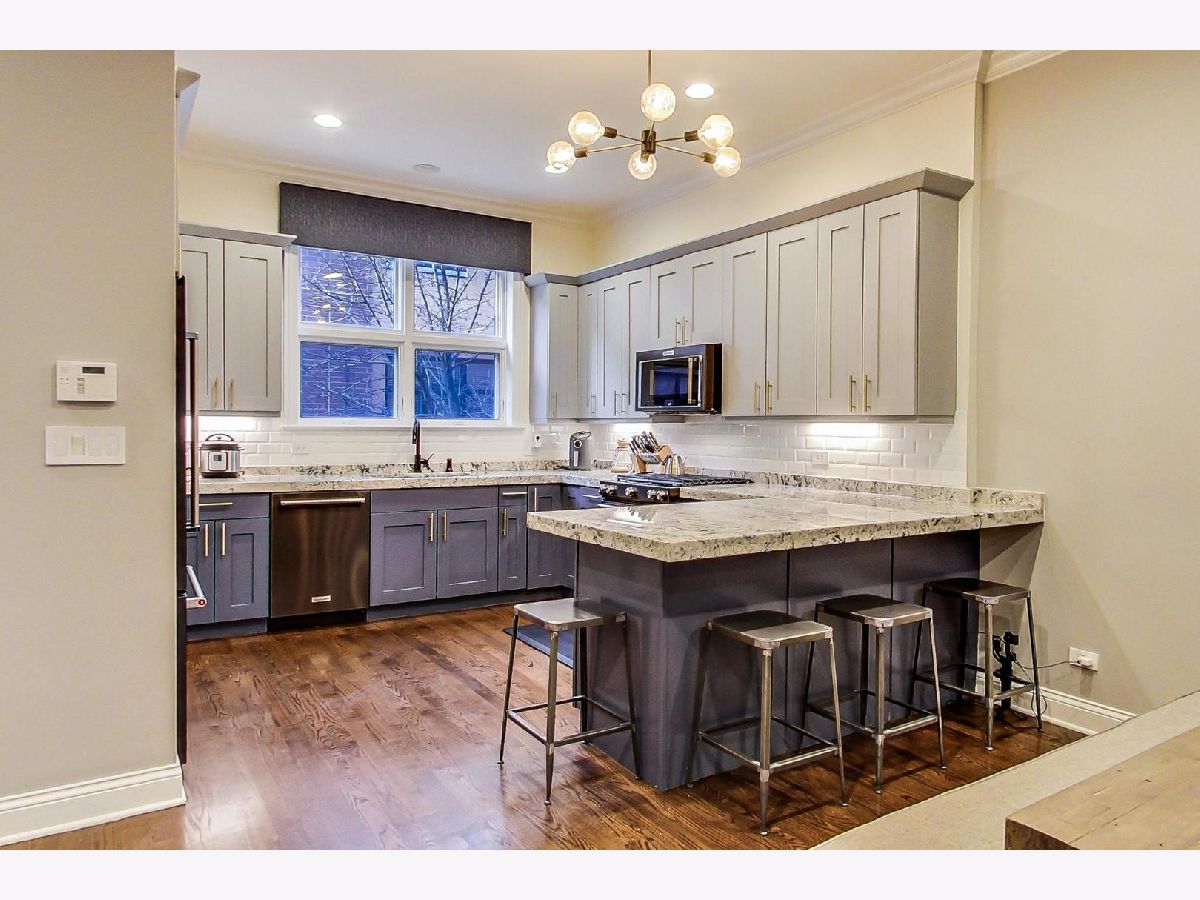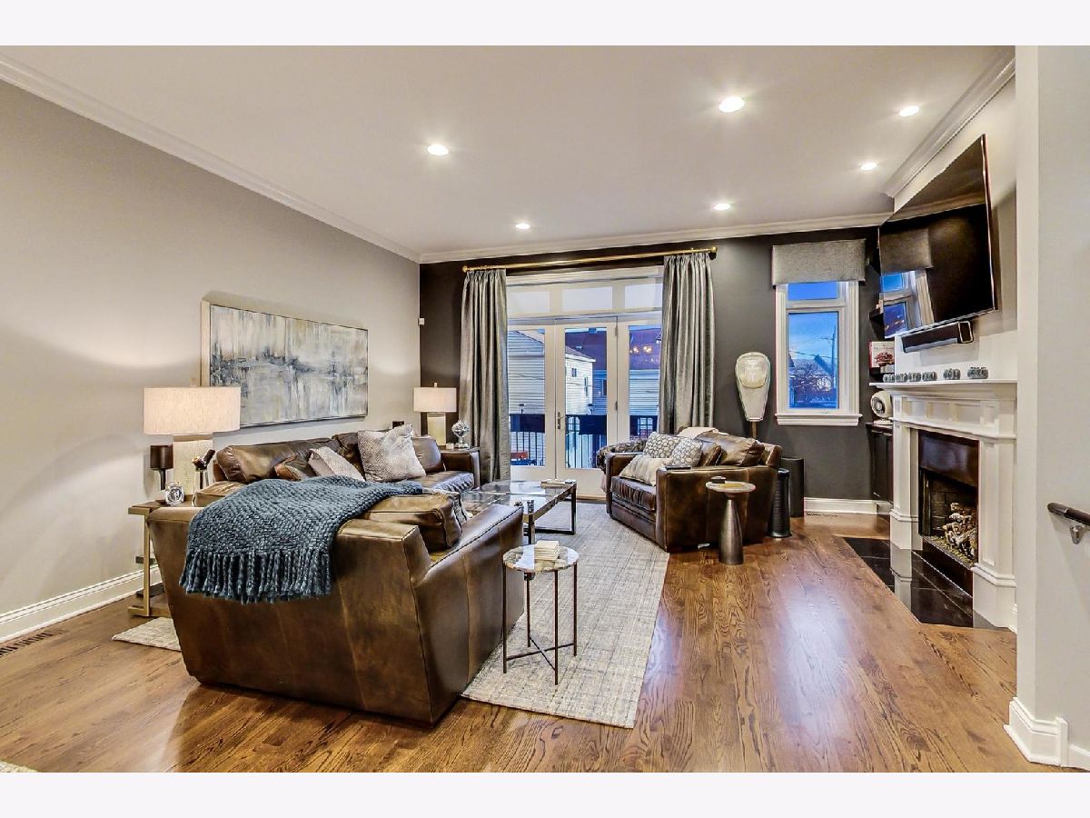 Fantastic Logan Square 4 bedroom, 3 bathroom upgraded townhome with amazing outdoor space. Beautiful kitchen with upgraded thick quartz countertops, backsplash, stainless steel appliances, and breakfast bar open to dining and living room with gas fireplace and south facing balcony. Three bedrooms up with large walk-in-closet in primary. Primary bath has heated floors, double vanity and oversized steam & rain shower with body sprays. Top floor has wet bar with beverage center leading to spectacular rooftop deck with city views. Lower level has 4th bedroom/office with heated floors, full bath and attached 2 car garage. Refinished hardwood floors and closet organizers throughout. All kitchen appliances, washer/dryer and beverage center new from 2018. Meticulously landscaped and gated courtyard and 2 car insulated attached garage. Smart home technology including motorized window treatments on main and lower floor, keyless/wireless entry locks, etc. Short walk to Blue Line, 606 Trail, and WICKER PARK/LOGAN SQUARE dining and retail.