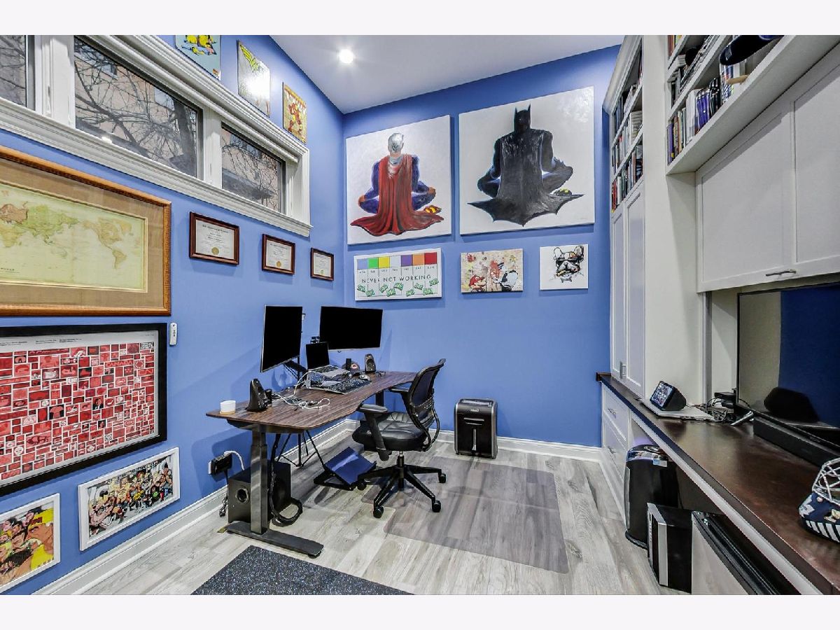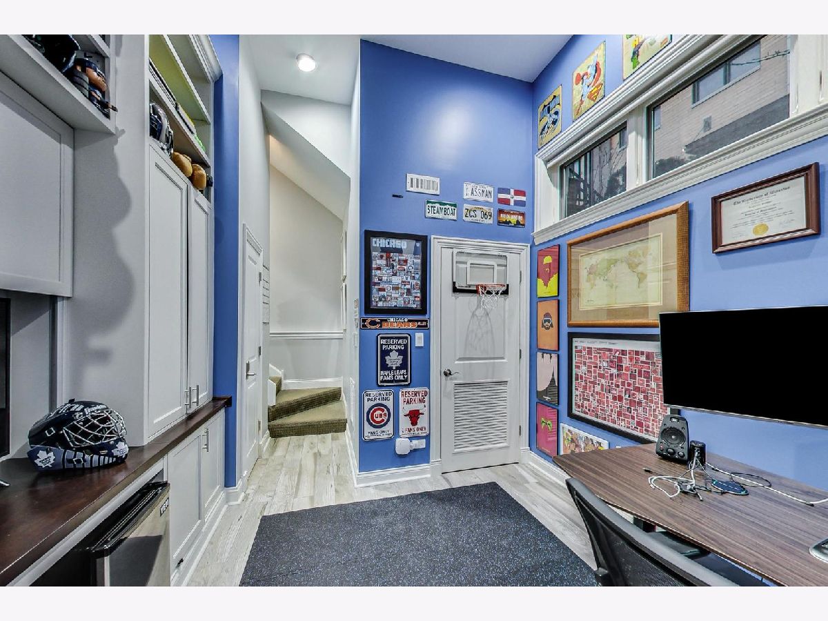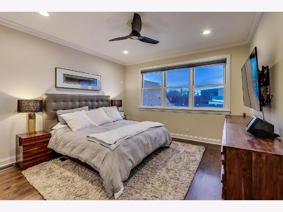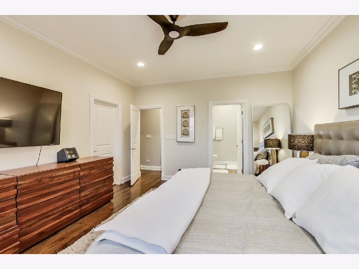 Fantastic Logan Square 4 bedroom, 3 bathroom upgraded townhome with amazing outdoor space. Beautiful kitchen with upgraded thick quartz countertops, backsplash, stainless steel appliances, and breakfast bar open to dining and living room with gas fireplace and south facing balcony. Three bedrooms up with large walk-in-closet in primary. Primary bath has heated floors, double vanity and oversized steam & rain shower with body sprays. Top floor has wet bar with beverage center leading to spectacular rooftop deck with city views. Lower level has 4th bedroom/office with heated floors, full bath and attached 2 car garage. Refinished hardwood floors and closet organizers throughout. All kitchen appliances, washer/dryer and beverage center new from 2018. Meticulously landscaped and gated courtyard and 2 car insulated attached garage. Smart home technology including motorized window treatments on main and lower floor, keyless/wireless entry locks, etc. Short walk to Blue Line, 606 Trail, and WICKER PARK/LOGAN SQUARE dining and retail.