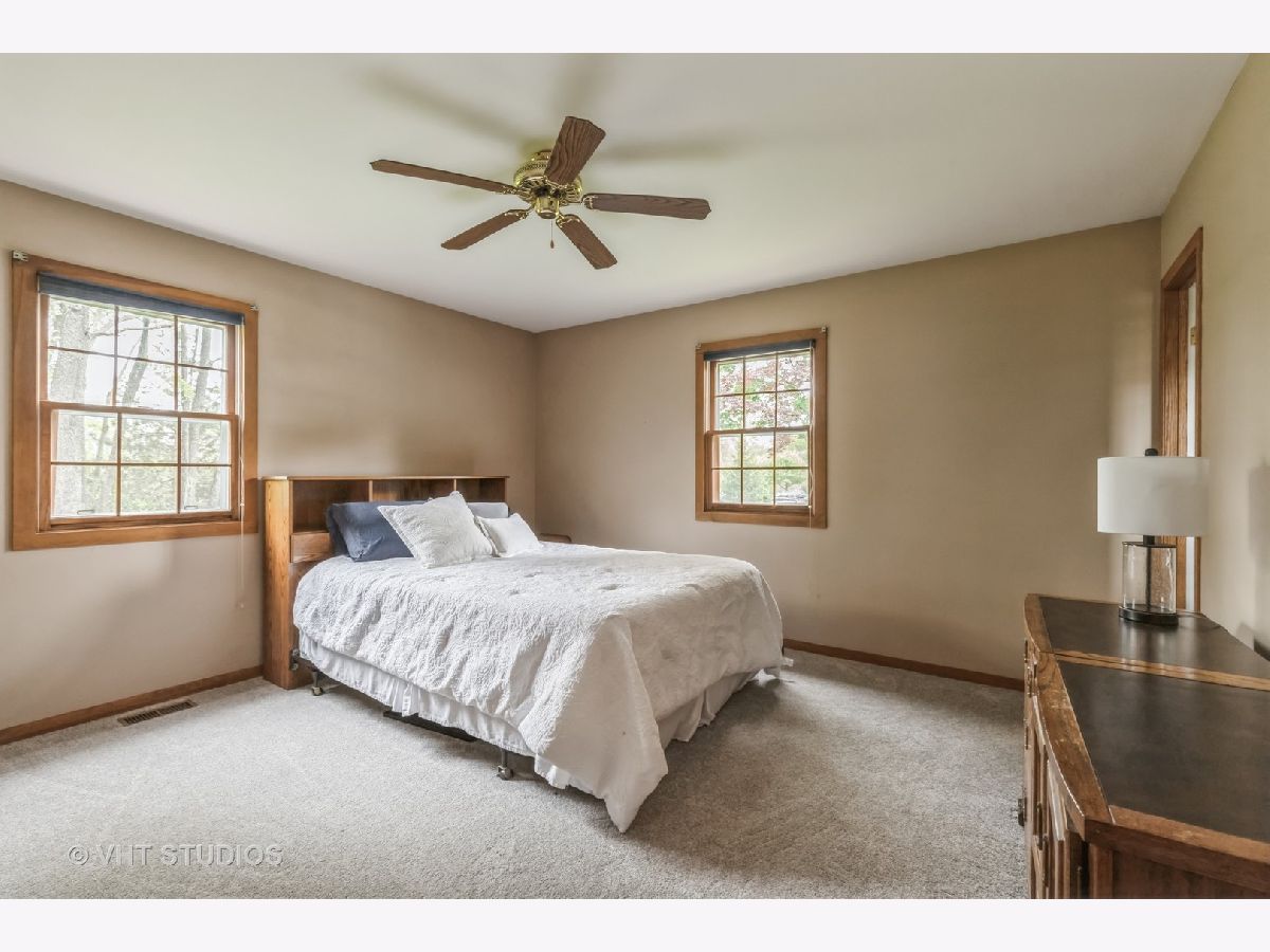 Rare Opportunity-Own the Whole Block! Welcome to your oasis nestled on a generous triple lot, a home where you will own corner to corner, commanding the whole block! Embrace the tranquility of Fourth Lake Forest Preserve to the east, providing a picturesque view. Expansive living areas, where you can entertain in style and comfort from the spacious family room, thoughtfully designed. A two-sided wood burning fireplace on the first floor connects the family room to the living room, creating an inviting ambiance for gatherings or quiet evenings by the fire. A 3-story addition in 2006 allows you to experience the delightful kitchen boasting ample elegant Kraft Maid cherry cabinets, granite countertops, a full-size double oven, complemented by porcelain tile flooring, seamlessly blending durability with sophistication. In addition, the kitchen is enhanced by a convenient island, a walk-in pantry and a separate wet bar for entertaining, offering both functionality and aesthetic appeal. 4 bedrooms plus one in the basement, this home offers unparalleled spaciousness, providing room for both relaxation and entertainment. Retreat to the upstairs primary bedroom suite, a luxurious haven with vaulted ceiling, a large bathroom with Kraft Maid cabinetry, granite countertops, double sinks, a two-sided gas burning fireplace, large walk-in closet and a private balcony. Three first floor bedrooms are nice sized including one having its own full bathroom which could act as a 2nd private suite. The bathrooms underwent a stylish remodel in 2020, featuring porcelain tile shower tile and flooring and custom finishes. A separate, oversized mud room off the attached 2 car garage and side deck provides a great entry space and closet storage for a large family, including a laundry chute to the basement laundry. Water access available in the mud room gives the option for the laundry to be elevated to the first floor if desired. This home also has a huge 2nd detached garage with its own driveway providing ample room to park additional cars, campers etc., with new roof added in 2020. The basement area offers endless possibilities with a finished space with a walk-in closet that could act as a 5th bedroom or an additional family room and other unfinished areas available for storage/other. Additional amenities include: ceiling fans, 6 panel doors, some newer windows and appliances. Hardwood flooring in the living and family room, all newer carpeting throughout the house, painted inside and outside. The outside is all cedar siding and beautifully landscaped with flowering trees, an outdoor wood shed, composite decking that wraps around the side of the house and into the back with room for lawn furniture and grill. Experience luxury living in this remarkable residence where space, comfort and convenience converge the perfect place to call home. Lake rights too! Schedule a showing today! Much loved and cared for home for over 30 years, but sellers are retired/downsizing and will miss this home! Their change is your gain - Easy to show and sellers can close quickly.