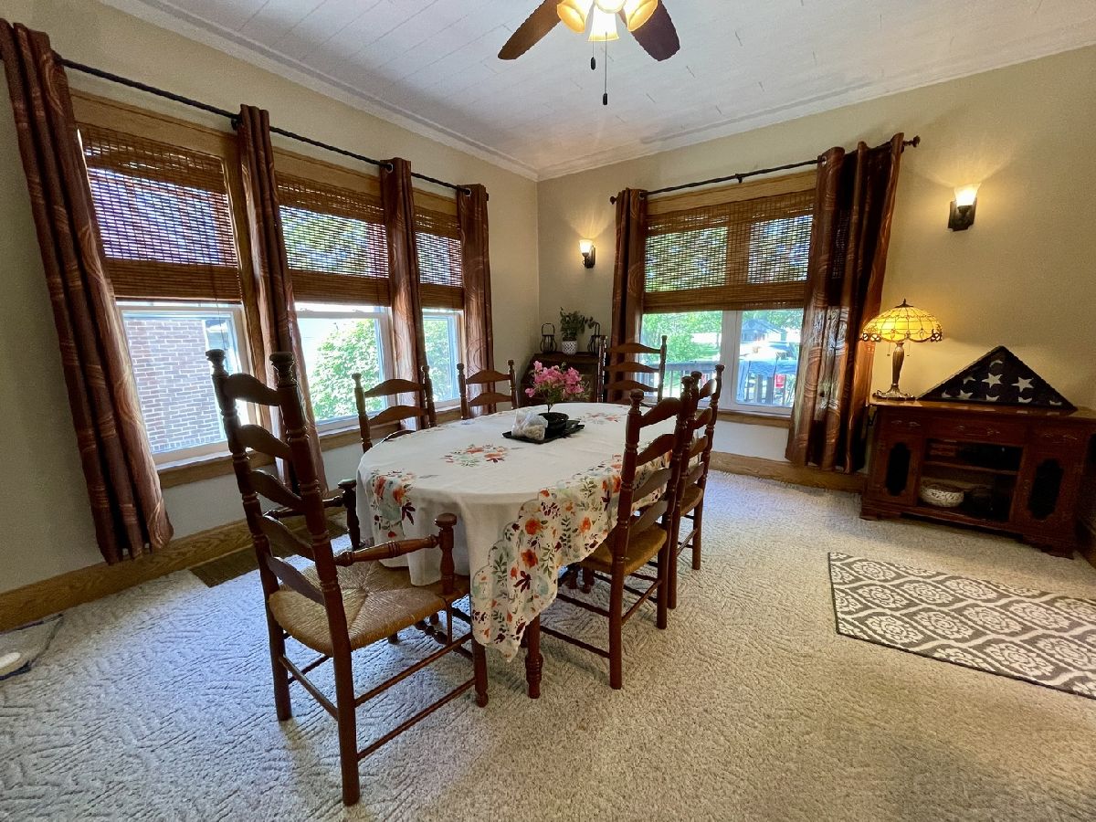 Dwight School District! You may never find a more well maintained 2-3 Bedroom home with original woodwork throughout, 1 full bath and 2-1/2 baths, full partially finished basement, whole house generator and two car detached garage! Enter by the enclosed heated/cooled front porch then the foyer opens to the beautiful stair case and original glass doors to the living room. Adjacent to the living room is the separate dining room which overlooks the deck. You then enter the beautiful kitchen with updated cabinets and granite countertops and all appliances stay! Just off the kitchen is the washer and dryer area and down the hallway is the first floor half bath. The original wood staircase bring you upstairs to two nice size bedrooms and the full bath. The partially finished basement has a huge bonus room under the porch that is insulated and can be completed as a game room/office and another nice size room could be completed as another bedroom, the basement also has the second half bath. What an opportunity for anyone looking for a move in ready home. Updates include; the patio, shed and deck, front porch roof was replaced and the garage was resided and roofed in last 4 years and the 1/2 bathroom in basement completed 04/24 and added shelving in basement. Walking distances to the grocery store, Renfrew Park, Community Pool and minutes from Amtrak, Interstate 55 and local restaurants and shopping.