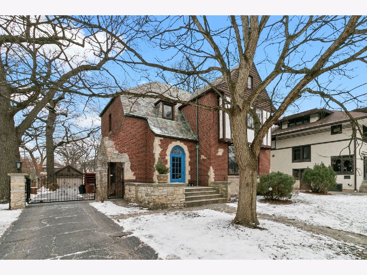 Welcome Home! Charming, classic brick four bedroom English Tudor home in a premier location on Maplewood Road in Riverside. Tree lined street and close to the Desplaines River. Classic architectural detailing includes ornate detail moldings, leaded glass windows, and natural woodwork. Formal living room with gas fireplace, separate dining room, spacious kitchen with lots of counterspace, plus island. Keep organized with the mudroom and the 1/2 bath, inviting family room with fireplace and built-in bookshelves. Updates include: painting most of the home, refinishing the hardwood floors on the staircase and the upstairs hallway hardwood floors, completely cedar fenced-in yard plus an electric metal gate on the driveway, waterproofing including adding a sump pump in the basement. Enjoy the trees in the yard from the deck and views throughout the house. Great location to local schools (Riverside district 96 and Riverside Brookfield district 208) and the downtown Riverside shopping district,the Metra train stop and the Brookfield Zoo.