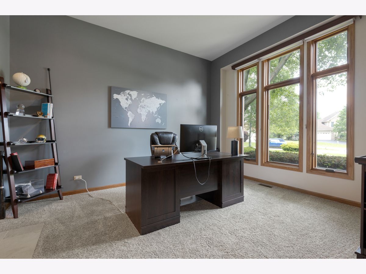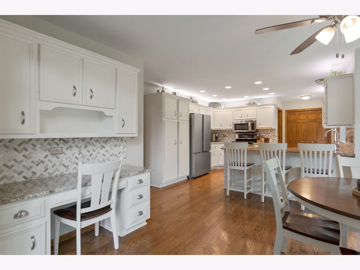 Amazing cul-de-sac home in desirable Fox Trail neighborhood! This spacious home features 4 beds, 2.1 baths, 3 car garage, finished basement with bar, home office space, and so much more! Newer kitchen (2016) with granite counter tops, marble back-splash, custom crown molding and fireplace finishes. SS appliances (dishwasher, fridge (2024), oven & microwave (2013), garbage disposal (2024), washer & dryer (2013), new carpet on the first floor (2024) hardwood floors (2013), Pella windows (2015), siding (2015), & roof (est. 2012 per previous owner) & insulation. AC (2018), furnace (2006), new hot water heater (Dec 2023), water softener (2017) & sump pumps (2013) with battery back-up systems (2015). Active radon mitigation system (2018). Finished basement with built-in bar. Bar stools in basement stay. Blackout curtains in the 3 upstairs bedrooms do not convey.