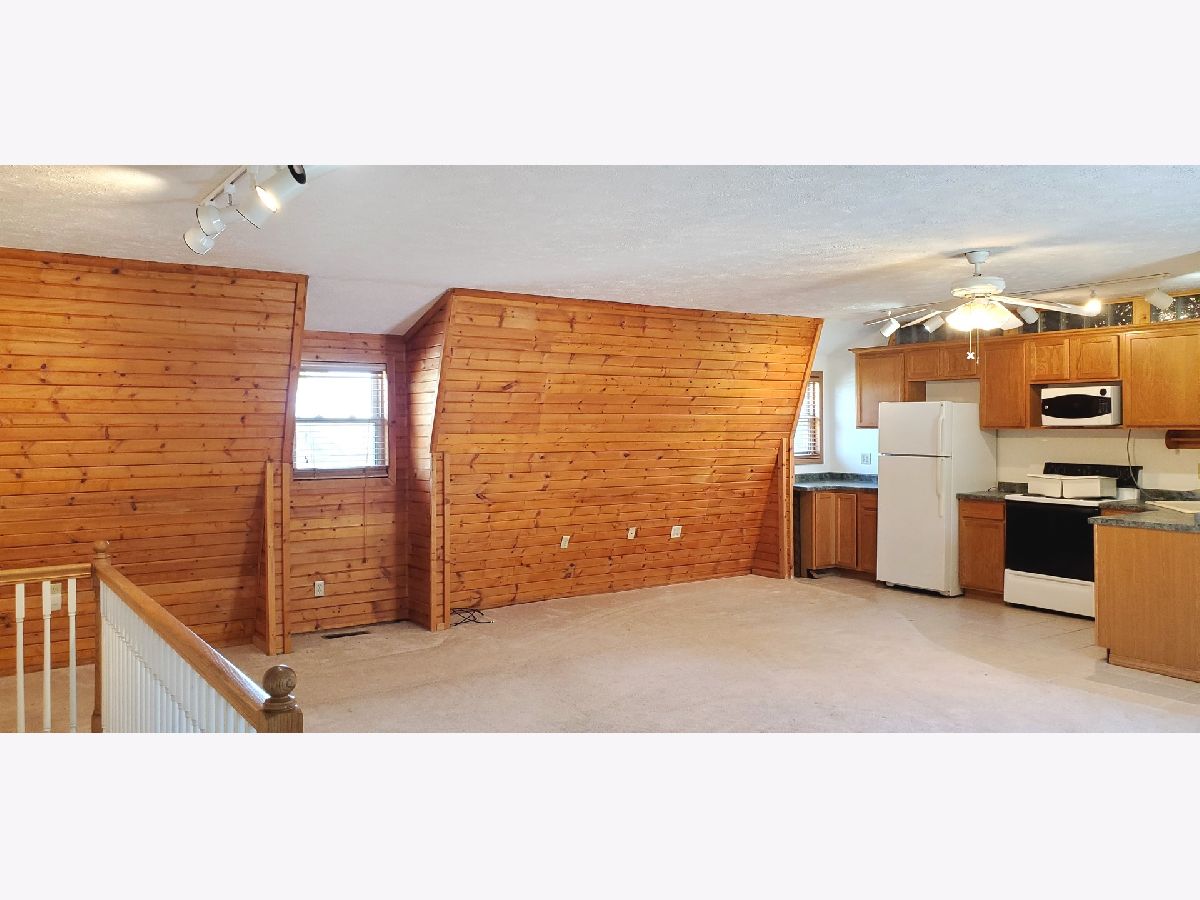Tons of potential & opportunity for this property! 3 car heated garage, newer HVAC, 2nd story built to the back of the large lot, leaving ample room to add to the house on the property. Excellent location for easy commute to Bloomington and Lincoln. 1/2 bath on garage level. Living quarters above garage with open plan & lovely deck. Huge bath with laundry hook ups. This has been a good income property for current owner, could be great workshop (garage has drain), income property, or build your home to suit! Living areas will be getting new carpet & paint by end of May!