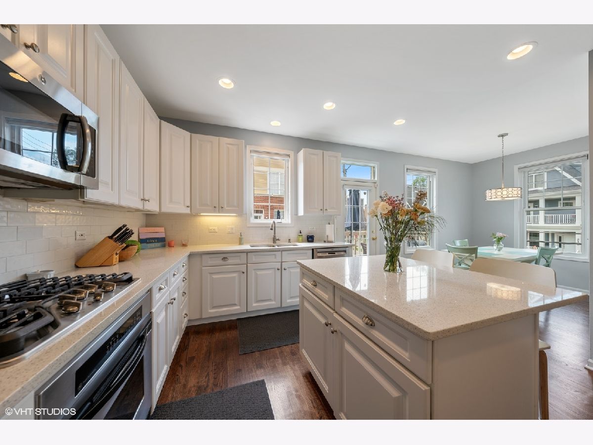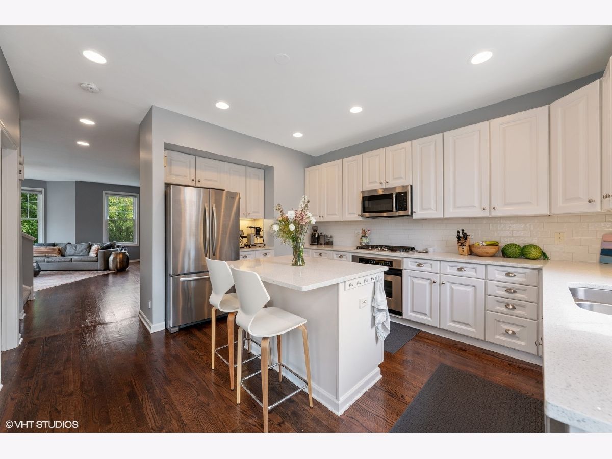 Lovely Wesley Square townhome. Luxury end-unit. One of six in complex with stunning bay windows. Faces courtyard. Ideal location--steps to train & downtown Wheaton with restuarants, coffee shops, and boutiques. Skylights and windows flood unit with natural light. Beautiful, large gourmet kitchen with quartz countertops & stainless appliances. Finished basement adds 4th bedroom plus a full bath. Office/den main floor. Over 2700 sf. of finished living space. Just move in and enjoy. Super unit. (Please note: intercom & vacuum, as-is.)