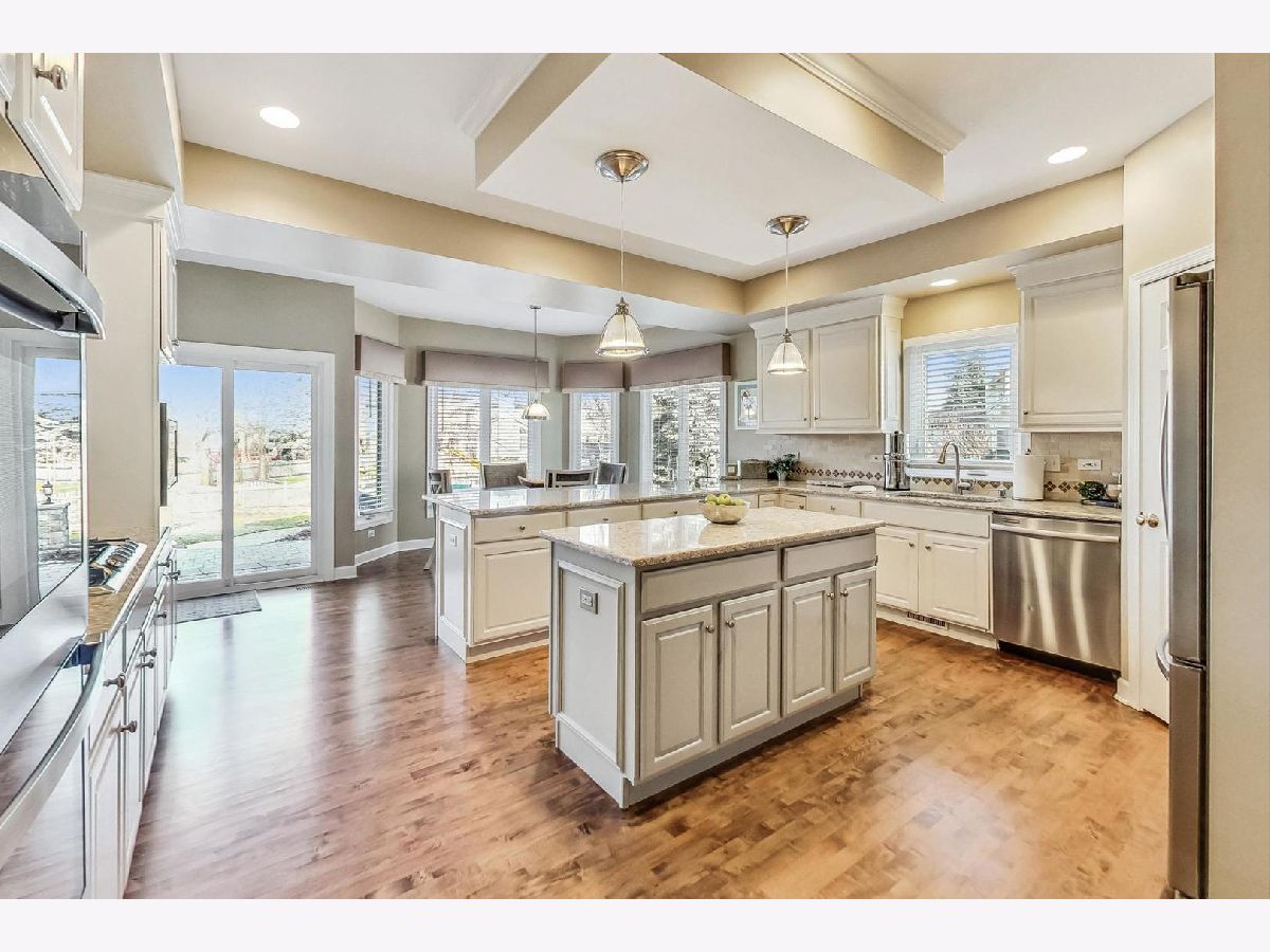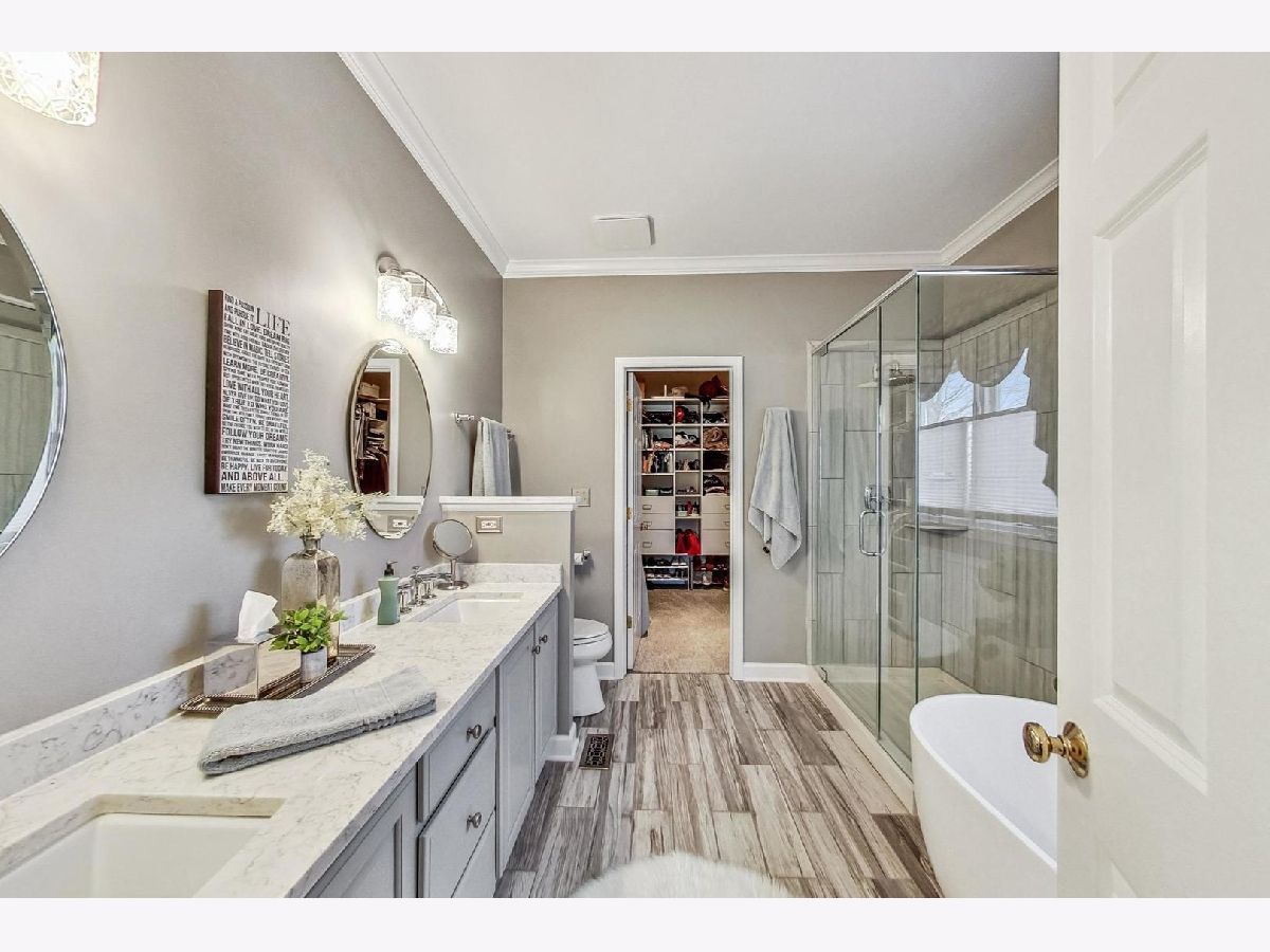 MULTIPLE OFFERS RECEIVED. BEST AND HIGHEST DUE SATURDAY FEB 10 th at 430. ESCALATION CLAUSE WILL NOT BE ACCEPTED. Custom home with FIRST FLOOR MASTER SUITE in Thornwood Pool Community and St Charles School District! Improvements include fresh exterior paint in 2023, new windows and a laundry remodel in 2021, a master bath remodel and a new roof and leaf guard gutters in 2020, and a kitchen remodel and A/C and furnace replaced in 2017. Grand two-story foyer and family room with wall of windows and fireplace! Gourmet kitchen with custom cabinetry, stainless appliances, tile backsplash and large island! Main level master suite has custom window treatments, walk-in closet with custom organizers and remodeled master bath with freestanding, soaker tub and separate shower. Finished basement with rec room, workout room, bath and large storage area. Custom, Brick patio with retaining walls, fenced yard and extensive landscaping. Enjoy all that Thornwood has to offer with a pool, clubhouse, Corron Elementary, miles of trails, parks and a convenient walk to shopping and dining! Join one of the volleyball leagues or Thornwood Thunder Swim Team! With so much to offer, Thornwood is such an amazing neighborhood to call HOME!