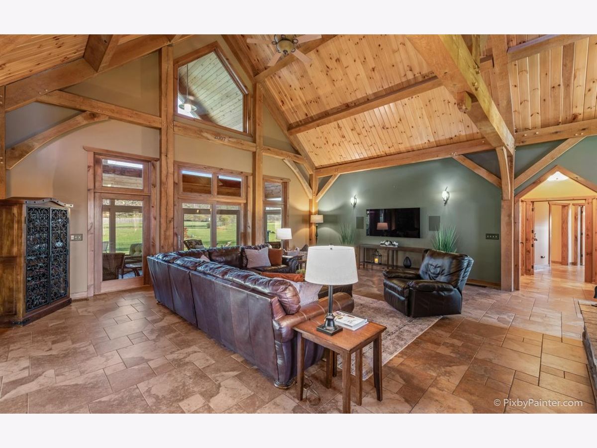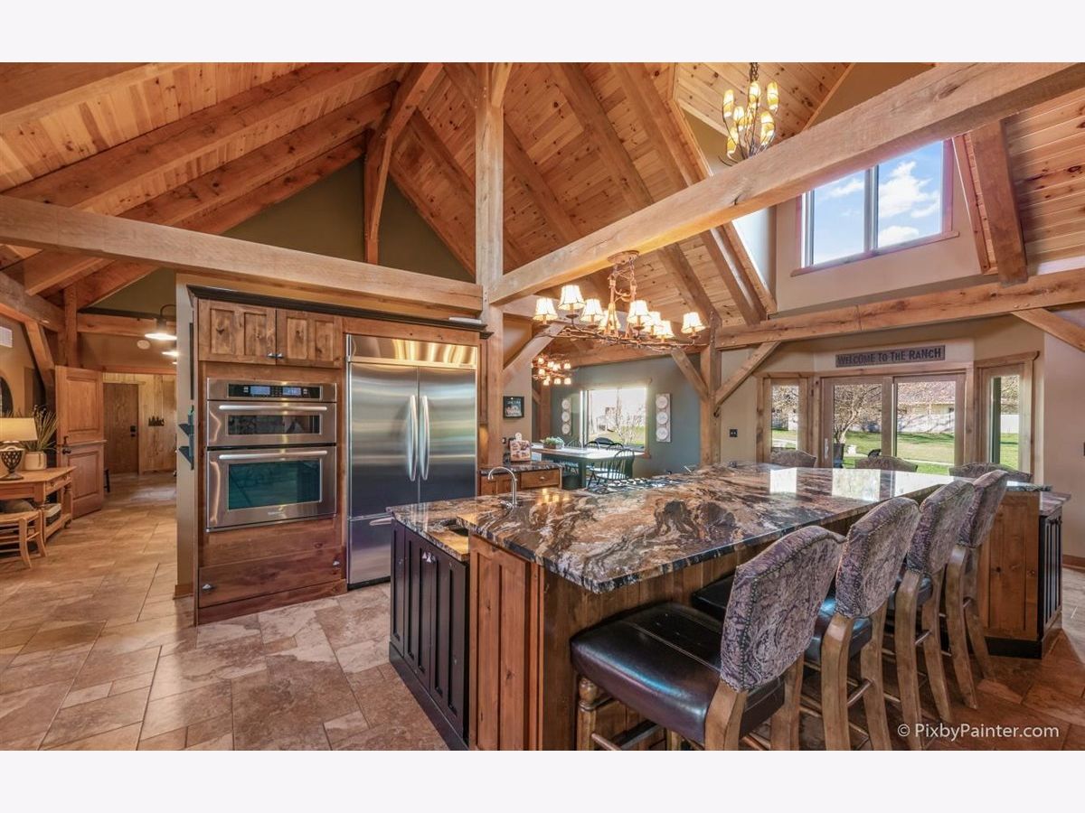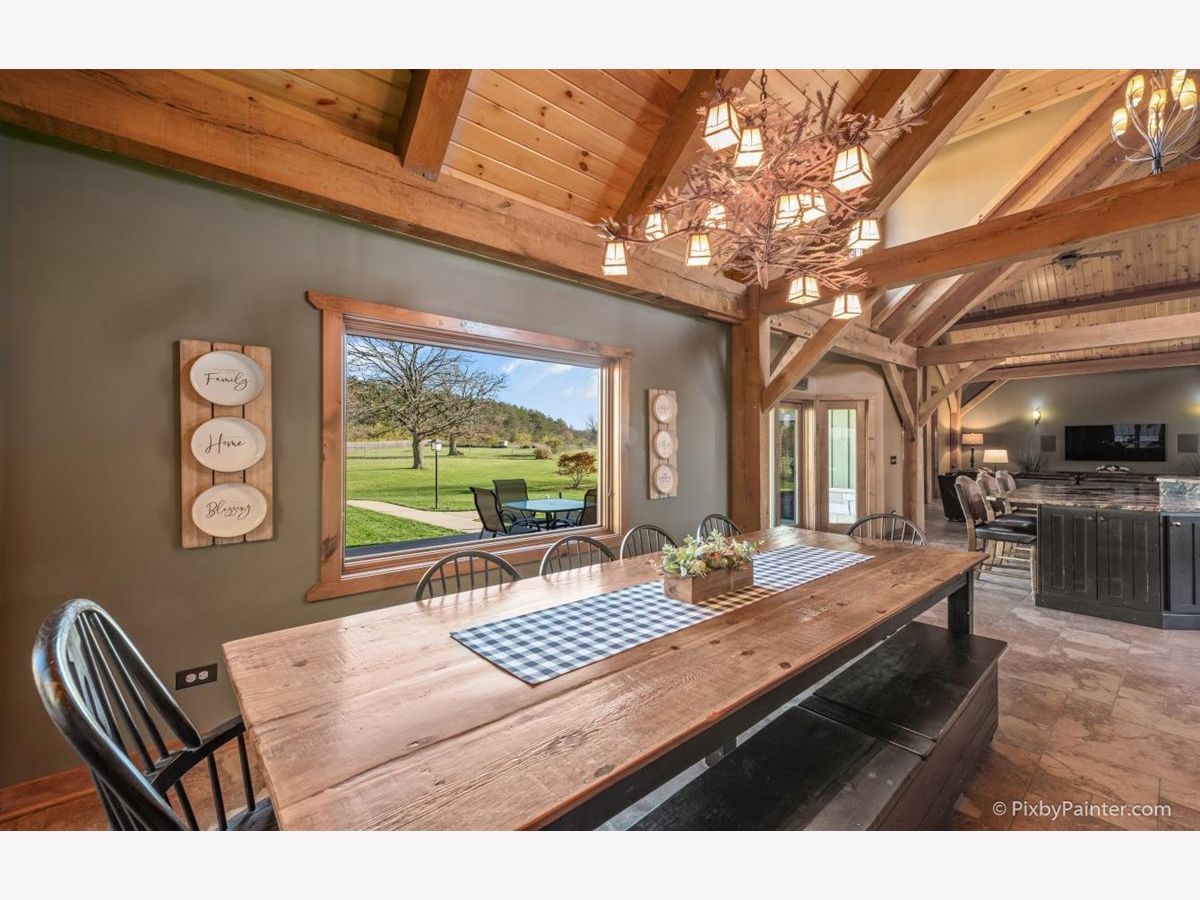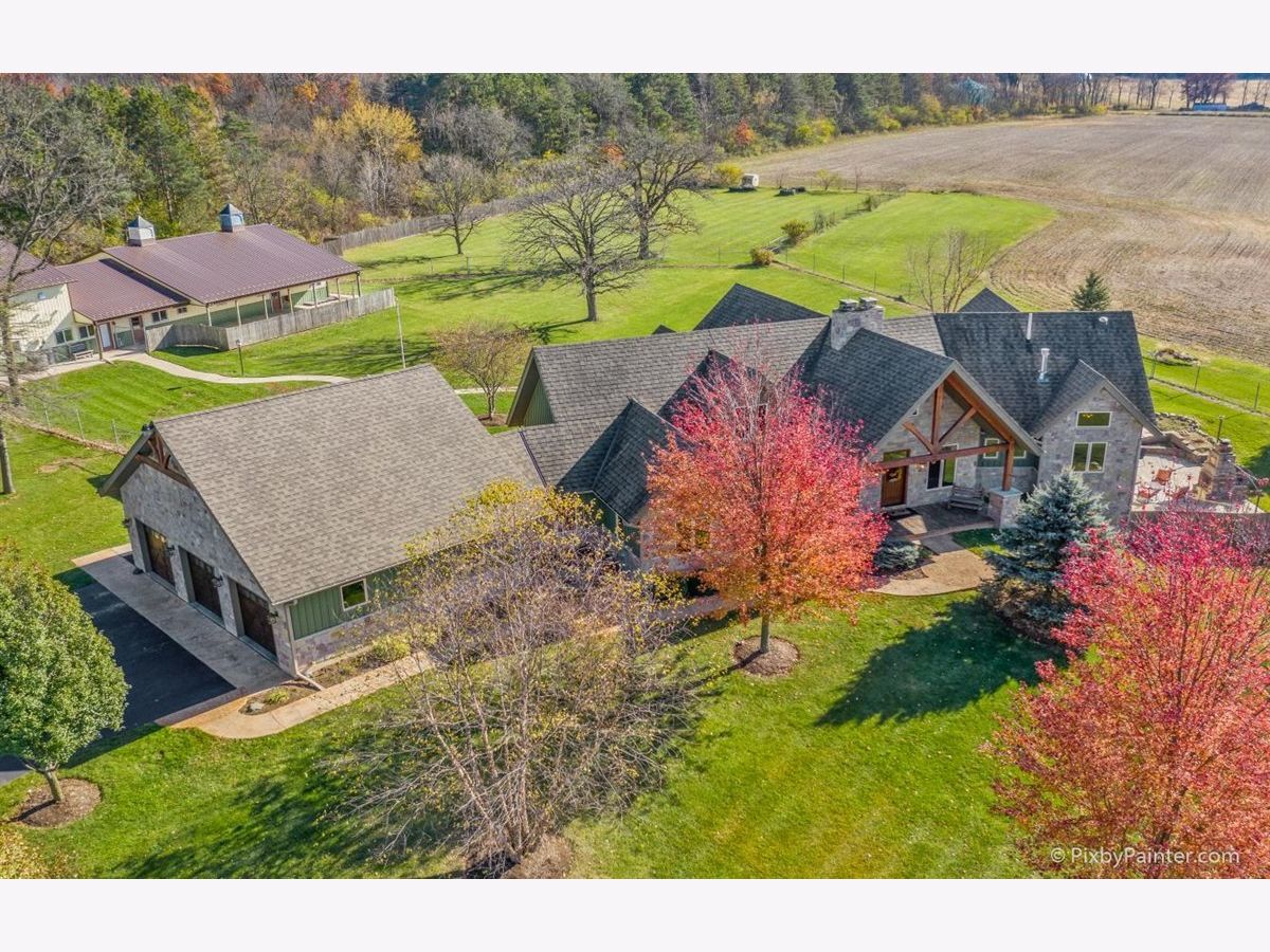 One of a kind custom home feels like a magnificent private retreat on 30 ACRES is surrounded by rolling land, trees, 3 ponds, and farmland, just 7 minutes north of town. Plus a 5,000 SQ FT out building with 2,000 SQ FT shop area including FULL RV hook-up, radiant heat, A/C, kitchen, office, bath, impressive 14 stall kennel. And Tesla hook-up in attached 3 car garage. This stunning custom River Bend Timber Frame WALK OUT RANCH home was built in 2007 and features privacy and luxury. 4 bedrooms, 3.1 baths, OFFICE. 2 bedrooms on the main level and 2 bedrooms in the walk out lower level, with radiant floors throughout both levels in home and outbuilding. Main level master suite with fireplace, amazing master bath and huge walk in closet and private slider access to hot tub from master suite. Beautiful large covered porch. Floor to ceiling fireplace in foyer with a true great room on the other side welcome guests into this serene home. Dream kitchen to delight any chef with an expansive center island to fit all of your guests. Sunroom overlooking the backyard with a freestanding gas FIREPLACE and surrounded by sliding doors, leads to a large deck perfect for entertaining. Lower level features 2 additional bedrooms, 2 large storage rooms plus storage closets, lower level family room, wet bar area, sliders leading to the large patio area with brick outdoor fireplace and stunning views. New hot tub will be delivered Winter 2020. Please note, a Virtual 3D Tour and Video of the entire home is available for you to view!