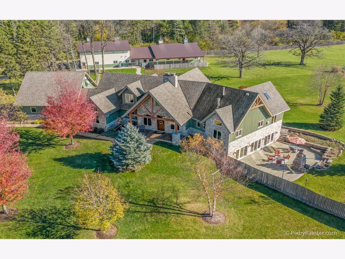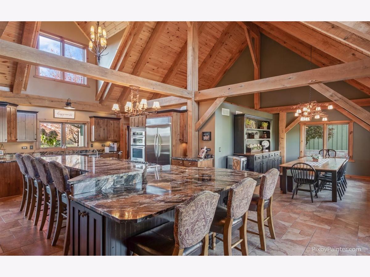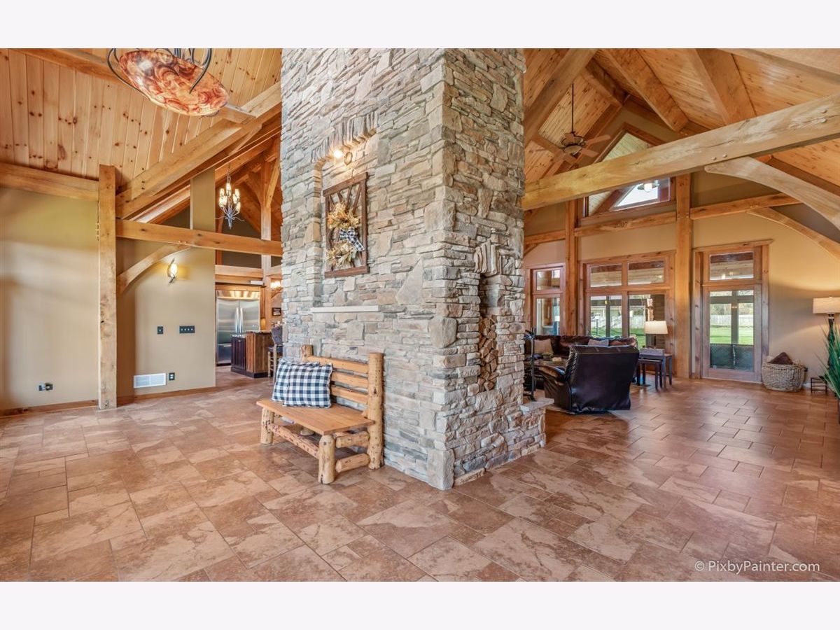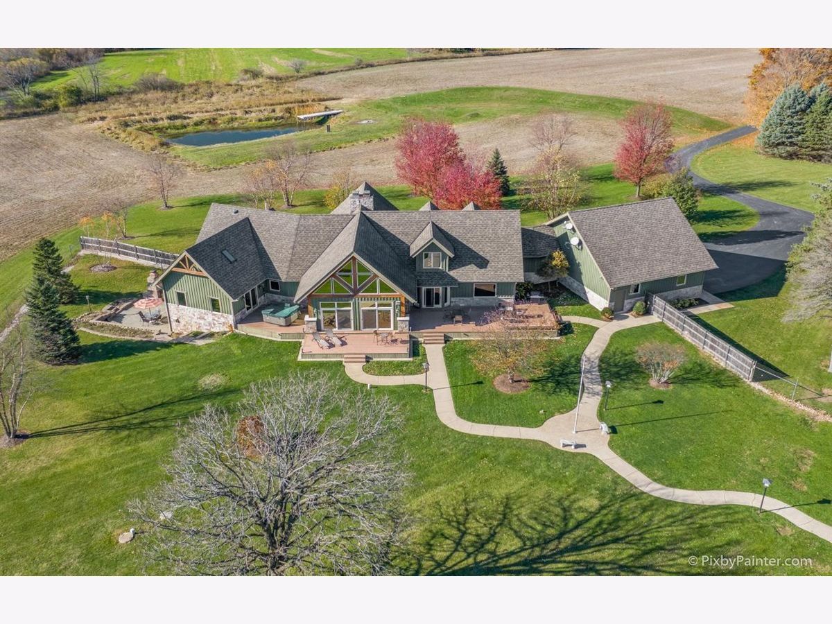 One of a kind custom home feels like a magnificent private retreat on 30 ACRES is surrounded by rolling land, trees, 3 ponds, and farmland, just 7 minutes north of town. Plus a 5,000 SQ FT out building with 2,000 SQ FT shop area including FULL RV hook-up, radiant heat, A/C, kitchen, office, bath, impressive 14 stall kennel. And Tesla hook-up in attached 3 car garage. This stunning custom River Bend Timber Frame WALK OUT RANCH home was built in 2007 and features privacy and luxury. 4 bedrooms, 3.1 baths, OFFICE. 2 bedrooms on the main level and 2 bedrooms in the walk out lower level, with radiant floors throughout both levels in home and outbuilding. Main level master suite with fireplace, amazing master bath and huge walk in closet and private slider access to hot tub from master suite. Beautiful large covered porch. Floor to ceiling fireplace in foyer with a true great room on the other side welcome guests into this serene home. Dream kitchen to delight any chef with an expansive center island to fit all of your guests. Sunroom overlooking the backyard with a freestanding gas FIREPLACE and surrounded by sliding doors, leads to a large deck perfect for entertaining. Lower level features 2 additional bedrooms, 2 large storage rooms plus storage closets, lower level family room, wet bar area, sliders leading to the large patio area with brick outdoor fireplace and stunning views. New hot tub will be delivered Winter 2020. Please note, a Virtual 3D Tour and Video of the entire home is available for you to view!
