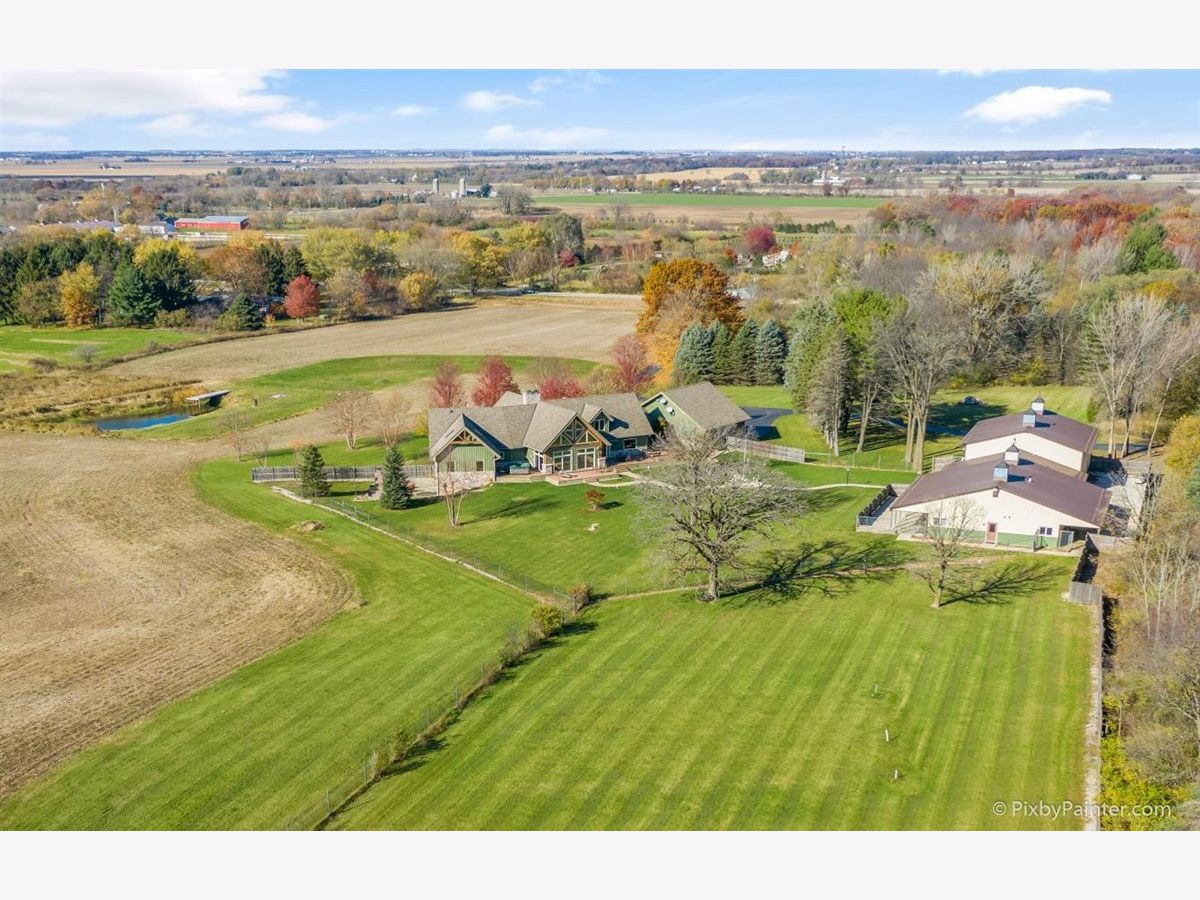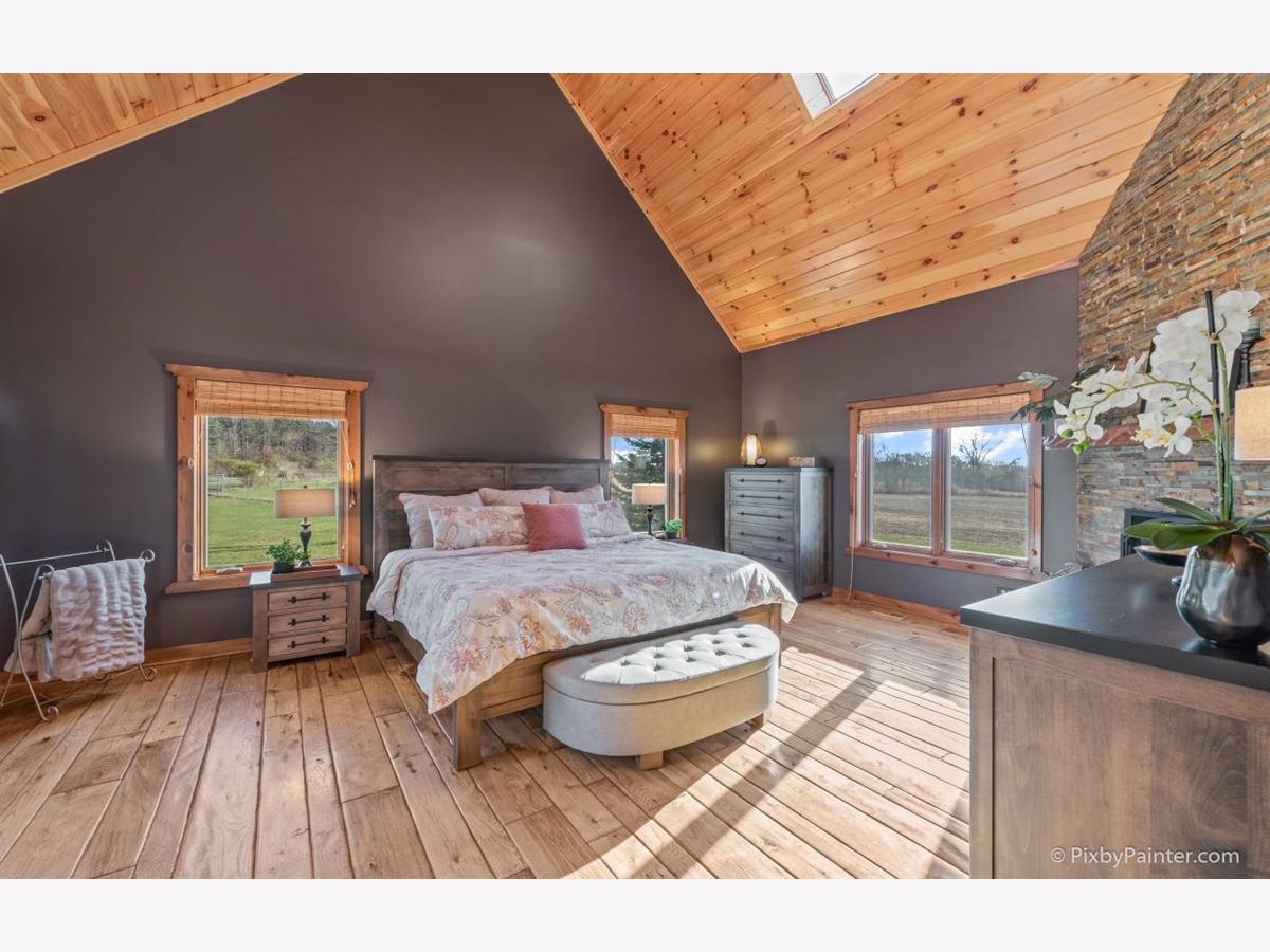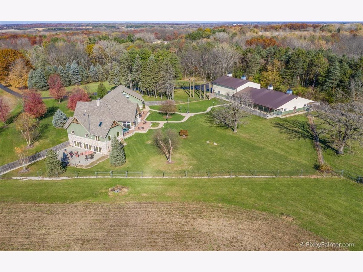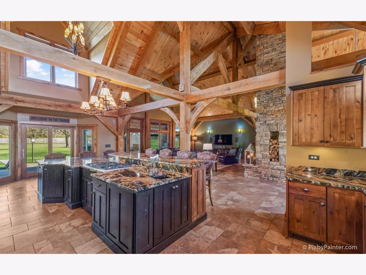 One of a kind custom home feels like a magnificent private retreat on 30 ACRES is surrounded by rolling land, trees, 3 ponds, and farmland, just 7 minutes north of town. Plus a 5,000 SQ FT out building with 2,000 SQ FT shop area including FULL RV hook-up, radiant heat, A/C, kitchen, office, bath, impressive 14 stall kennel. And Tesla hook-up in attached 3 car garage. This stunning custom River Bend Timber Frame WALK OUT RANCH home was built in 2007 and features privacy and luxury. 4 bedrooms, 3.1 baths, OFFICE. 2 bedrooms on the main level and 2 bedrooms in the walk out lower level, with radiant floors throughout both levels in home and outbuilding. Main level master suite with fireplace, amazing master bath and huge walk in closet and private slider access to hot tub from master suite. Beautiful large covered porch. Floor to ceiling fireplace in foyer with a true great room on the other side welcome guests into this serene home. Dream kitchen to delight any chef with an expansive center island to fit all of your guests. Sunroom overlooking the backyard with a freestanding gas FIREPLACE and surrounded by sliding doors, leads to a large deck perfect for entertaining. Lower level features 2 additional bedrooms, 2 large storage rooms plus storage closets, lower level family room, wet bar area, sliders leading to the large patio area with brick outdoor fireplace and stunning views. New hot tub will be delivered Winter 2020. Please note, a Virtual 3D Tour and Video of the entire home is available for you to view!