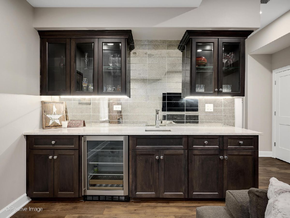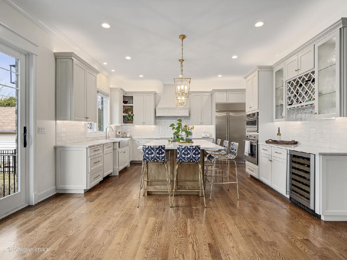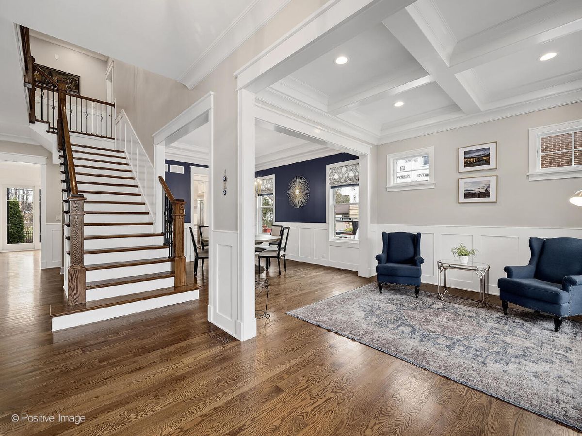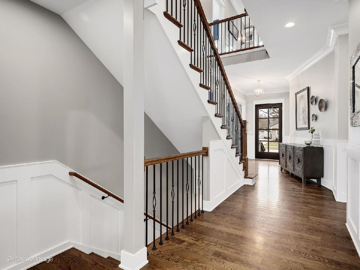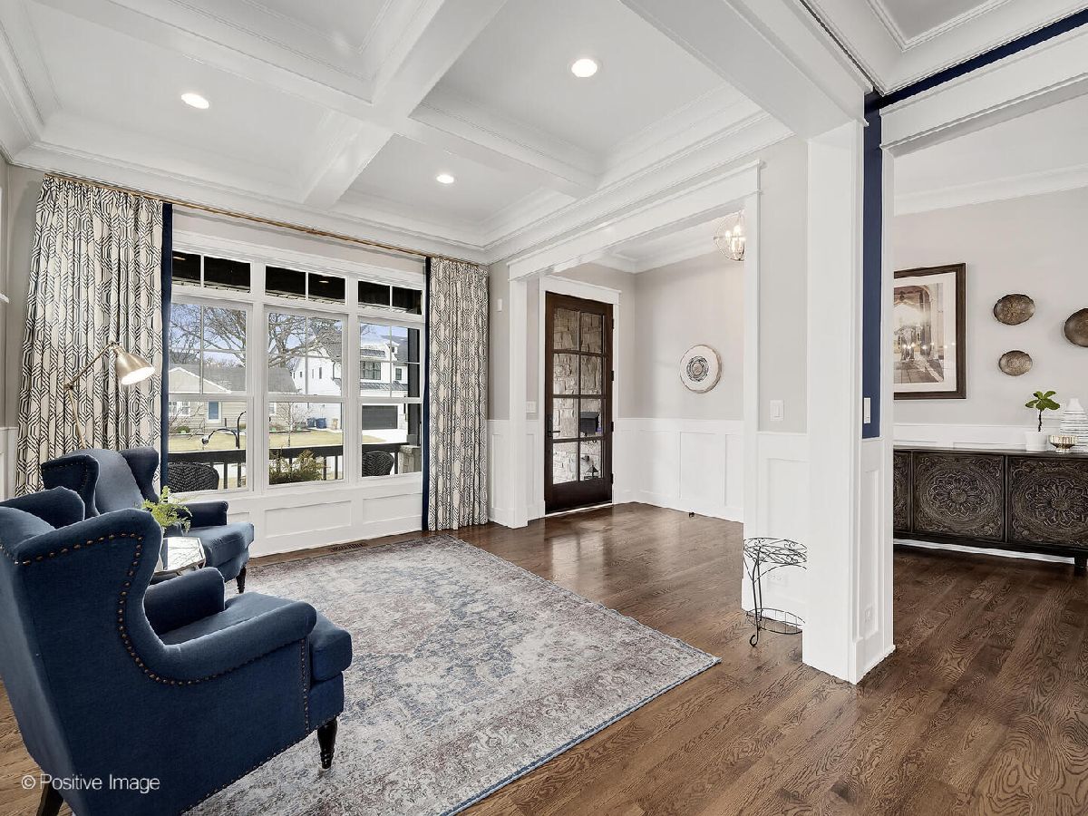 This stunning 2019 Island Construction home, crafted from stone and brick, offers 5 bedrooms, 4.5 bathrooms, and over 4,500 square feet of meticulously designed living space. You'll be captivated by the covered patio featuring a beadboard ceiling and stylish can lighting from the moment you arrive. The grand two-story foyer and soaring 10-foot ceilings make an immediate impression upon entering. The home exudes elegance with its beautiful hardwood floors, intricate millwork, custom window treatments, and premium finishes throughout. The open-concept main level is perfect for both everyday living and entertaining. The spacious living room flows seamlessly into the adjacent dining room, with easy access to the chef's kitchen through a butler's pantry. The kitchen is a culinary dream, featuring a large island with seating for 6, custom cabinetry, an induction cooktop, oven, convection oven, and a dedicated beverage station complete with wine racks and a fridge. The family room, with its coffered ceiling, built-in shelving, and cozy gas fireplace, offers the perfect spot to unwind. A powder room and a large mudroom round out the first floor. Upstairs, the master suite serves as a private retreat, boasting a spa-inspired bathroom with double sinks, a make-up vanity, soaking tub, separate shower, linen closet, and water closet. The spacious walk-in closet features a central island, providing abundant storage space. Two additional bedrooms share a cleverly designed bathroom, with each side offering its own sink and toilet while sharing only the tub/shower-an ideal layout for siblings who crave privacy. There's also another en suite bedroom (currently used as an office) and a convenient upstairs laundry room with a sink, cabinetry, and folding space. The finished basement, with its impressive 10-foot ceilings, includes a bedroom, full bathroom, and home gym. The recreation area is perfect for entertaining, featuring a wet bar and a play area that can be concealed behind a charming barn door. Outside, the fully fenced backyard provides a peaceful retreat with a paver patio, built-in grill, and island seating-ideal for outdoor dining and relaxation. Located just minutes from York High School, downtown Elmhurst, Wilder Park, the library, art museum, conservatory, and more, this home's location is truly unbeatable!