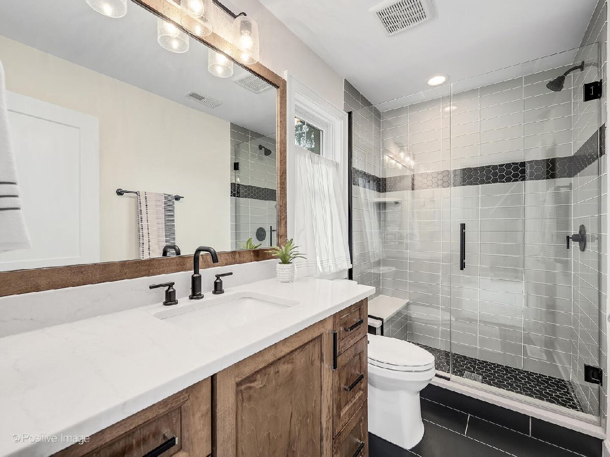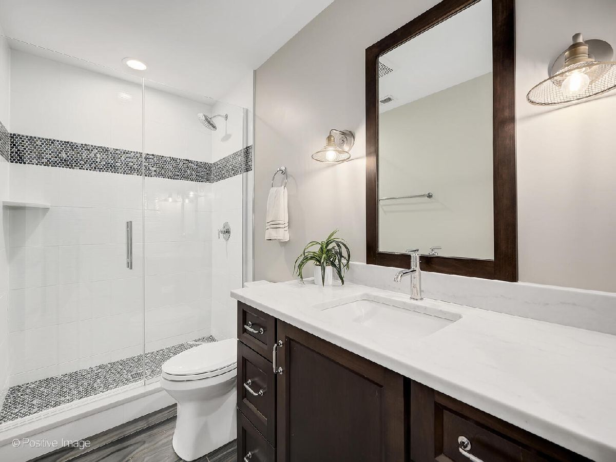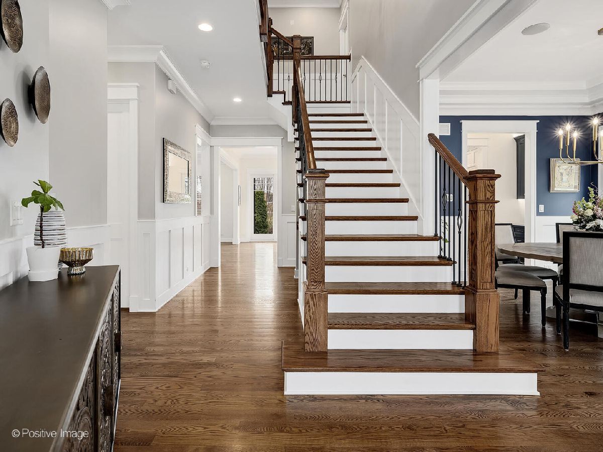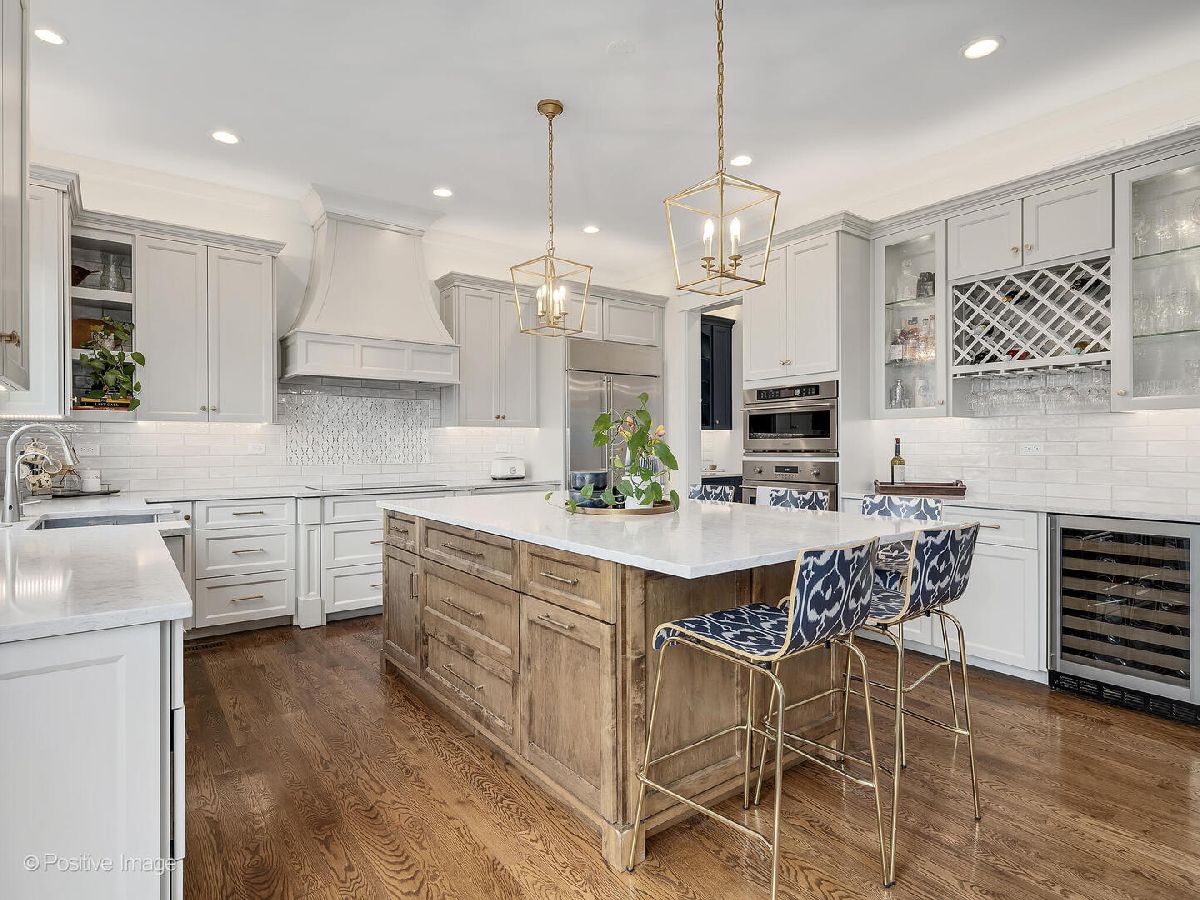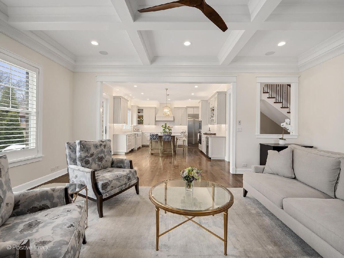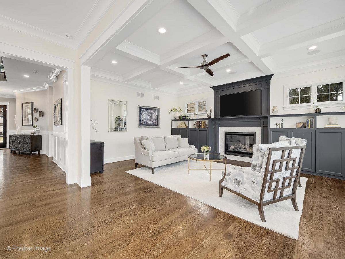 This stunning 2019 Island Construction home, crafted from stone and brick, offers 5 bedrooms, 4.5 bathrooms, and over 4,500 square feet of meticulously designed living space. You'll be captivated by the covered patio featuring a beadboard ceiling and stylish can lighting from the moment you arrive. The grand two-story foyer and soaring 10-foot ceilings make an immediate impression upon entering. The home exudes elegance with its beautiful hardwood floors, intricate millwork, custom window treatments, and premium finishes throughout. The open-concept main level is perfect for both everyday living and entertaining. The spacious living room flows seamlessly into the adjacent dining room, with easy access to the chef's kitchen through a butler's pantry. The kitchen is a culinary dream, featuring a large island with seating for 6, custom cabinetry, an induction cooktop, oven, convection oven, and a dedicated beverage station complete with wine racks and a fridge. The family room, with its coffered ceiling, built-in shelving, and cozy gas fireplace, offers the perfect spot to unwind. A powder room and a large mudroom round out the first floor. Upstairs, the master suite serves as a private retreat, boasting a spa-inspired bathroom with double sinks, a make-up vanity, soaking tub, separate shower, linen closet, and water closet. The spacious walk-in closet features a central island, providing abundant storage space. Two additional bedrooms share a cleverly designed bathroom, with each side offering its own sink and toilet while sharing only the tub/shower-an ideal layout for siblings who crave privacy. There's also another en suite bedroom (currently used as an office) and a convenient upstairs laundry room with a sink, cabinetry, and folding space. The finished basement, with its impressive 10-foot ceilings, includes a bedroom, full bathroom, and home gym. The recreation area is perfect for entertaining, featuring a wet bar and a play area that can be concealed behind a charming barn door. Outside, the fully fenced backyard provides a peaceful retreat with a paver patio, built-in grill, and island seating-ideal for outdoor dining and relaxation. Located just minutes from York High School, downtown Elmhurst, Wilder Park, the library, art museum, conservatory, and more, this home's location is truly unbeatable!