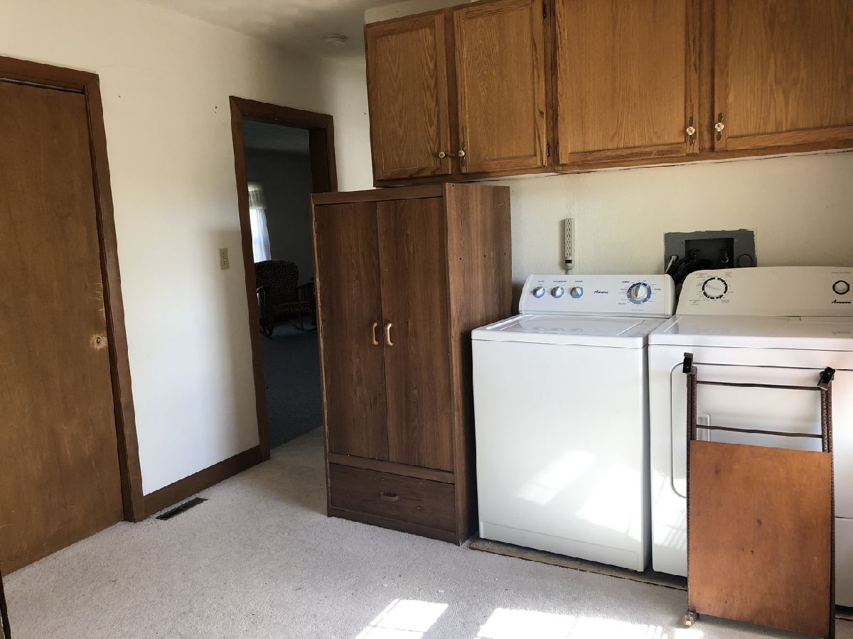 1 Story, 2 bedroom home on a large corner lot. Eat in kitchen with breakfast bar. Built in cabinet in kitchen dining area. Heated enclosed front porch with new windows. Deck and 2 car attached garage. Gutter guards added 2 years ago. Additional bedroom/den space in the basement. One of the main floor bedrooms currently used as a main floor laundry area.