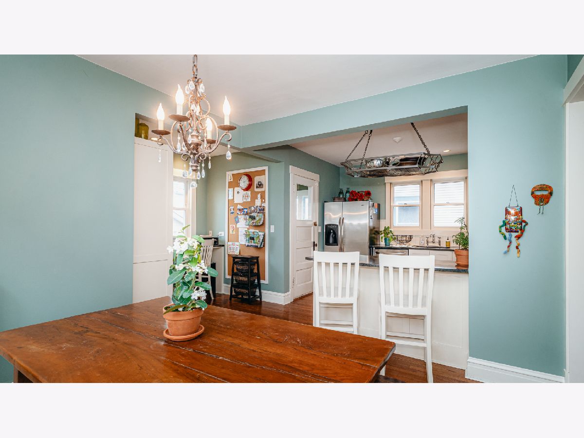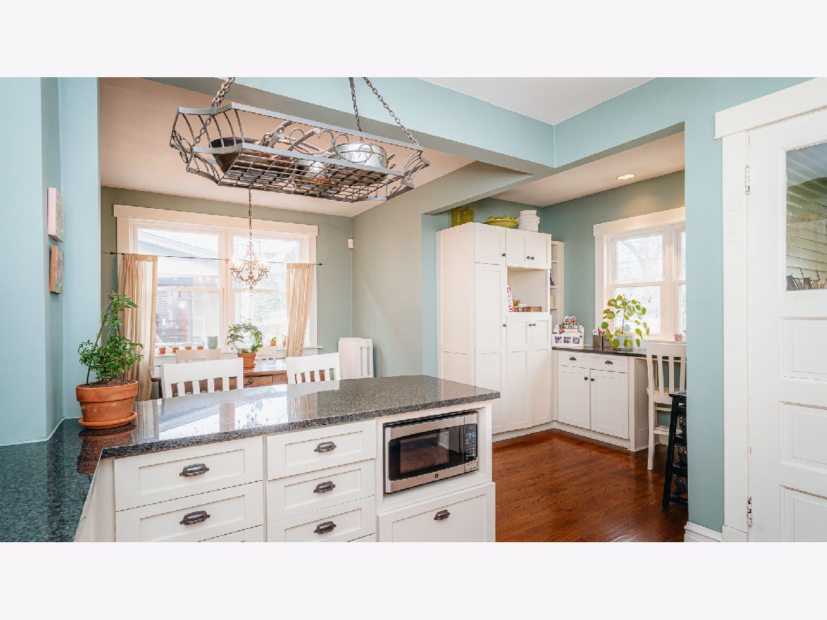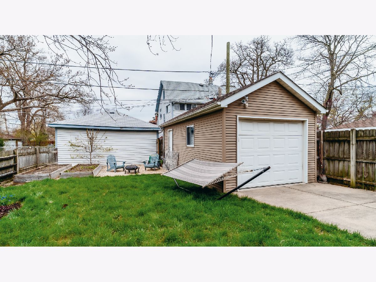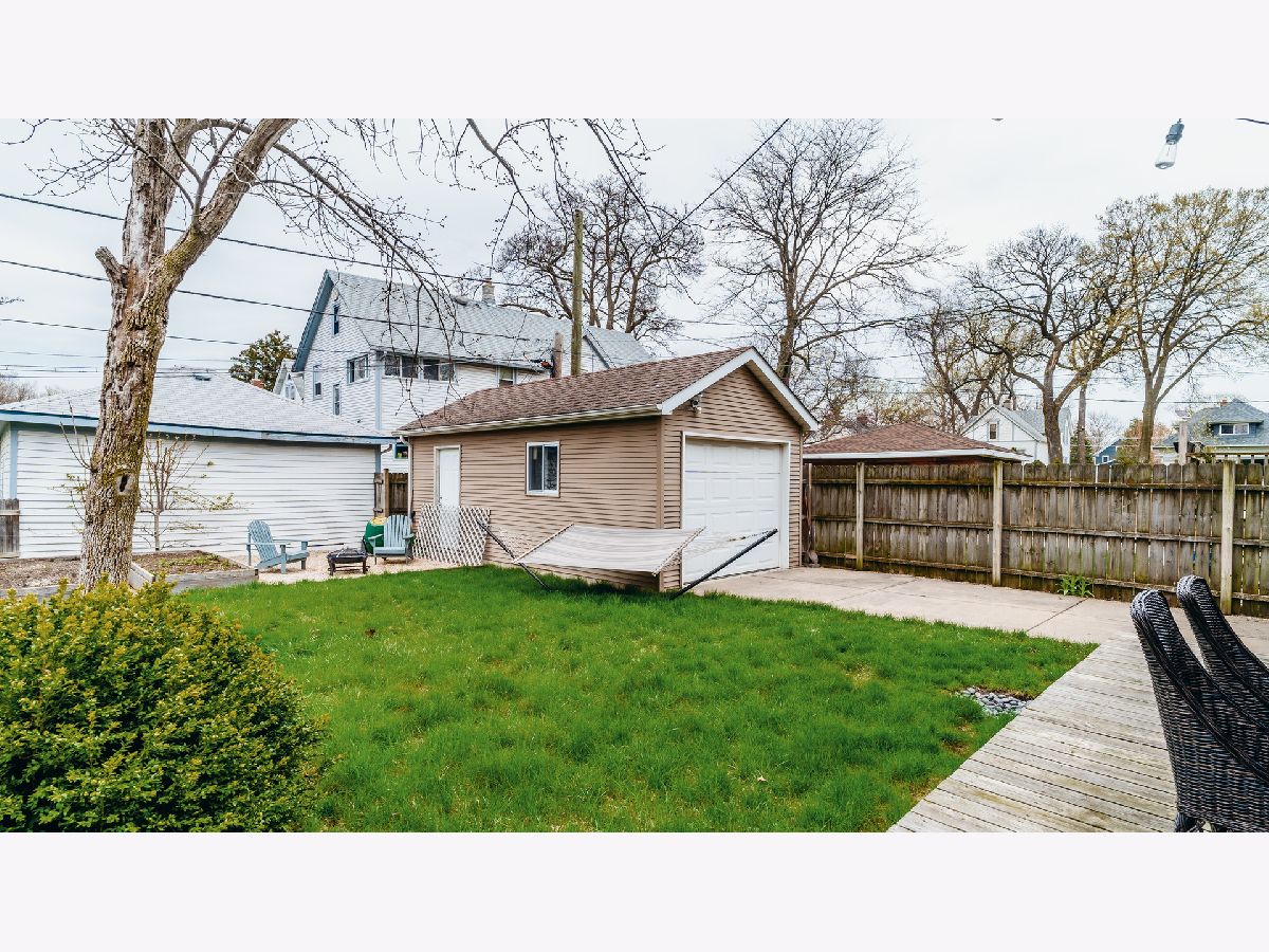 Beautiful Bungalow with hardwood floors, kitchen with open eating area and office space, central air, large bedrooms and plenty of storage. Inviting front porch with seating area and porch swing welcomes you to this updated bungalow with large living room with stained glass windows. The dining room boasts mission lighting and beautiful coffered ceiling. First floor bedroom and full bath with gorgeous fixtures and charming white tile. Large kitchen with buttercream white cabinets, granite counters, stainless steel appliances, chef's gas range, peninsula with barstools plus large eating area and separate pantry and office/workstation area. Mud room off of the kitchen leads to the large yard with patio, fire-pit area and raised beds for gardening. Side drive and one car garage. Upstairs you will find the spacious primary bedroom with great closet space, an additional large bedroom with two closets and another gorgeous bath. Large hallways upstairs with room for additional storage pieces as well as a huge walk-in closet. The large finished basement includes plenty of room for a family room and playroom. Additional room for storage and laundry in the unfinished area. Gorgeous home!