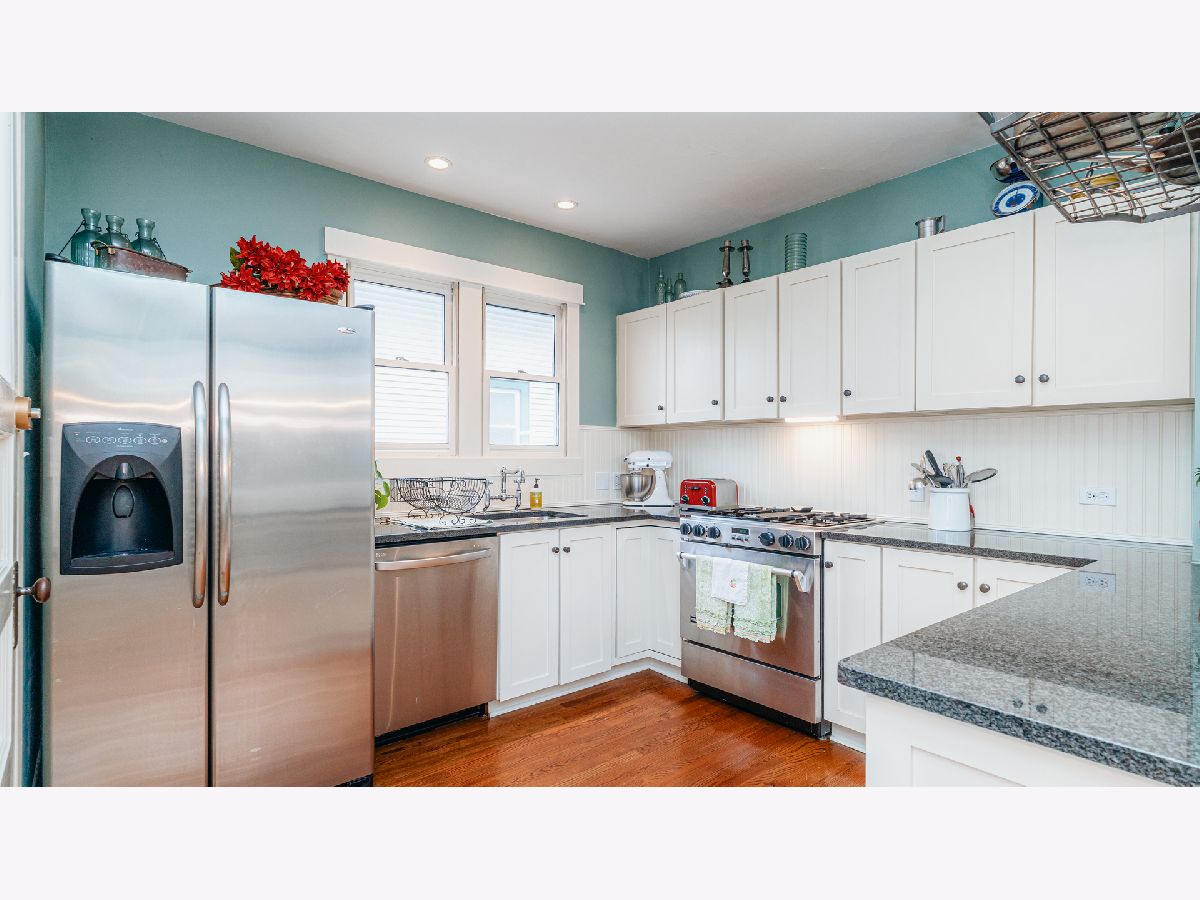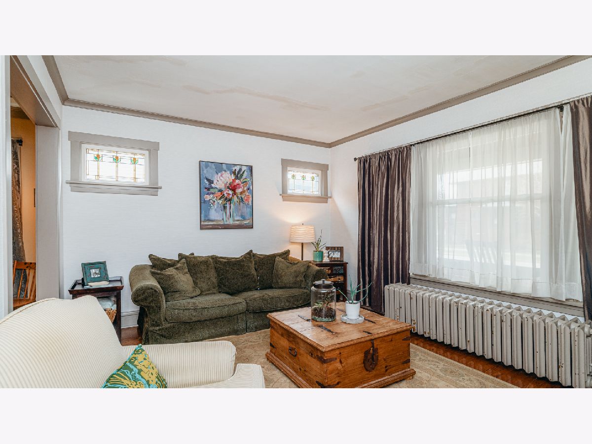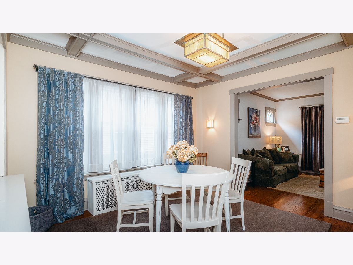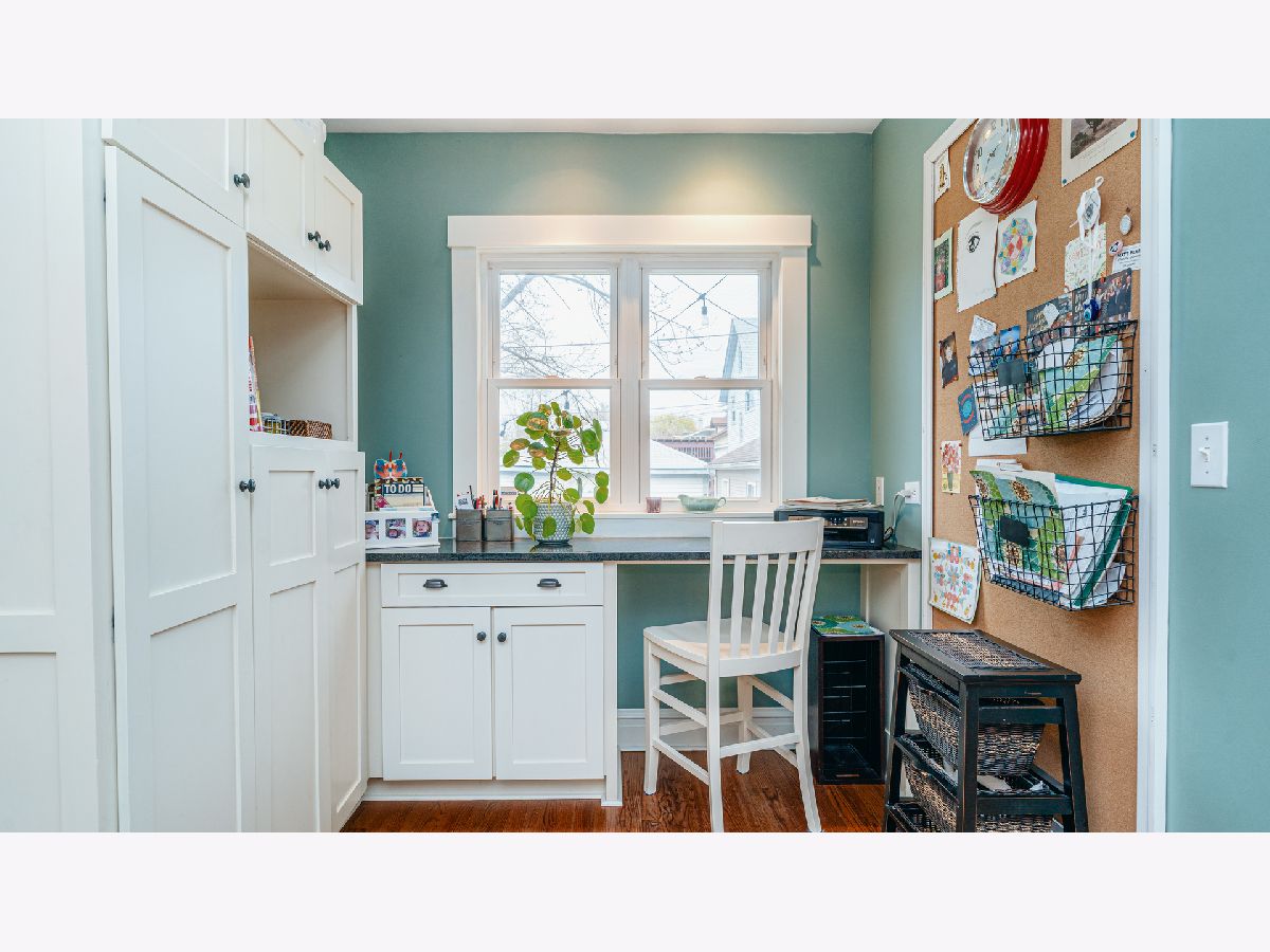 Beautiful Bungalow with hardwood floors, kitchen with open eating area and office space, central air, large bedrooms and plenty of storage. Inviting front porch with seating area and porch swing welcomes you to this updated bungalow with large living room with stained glass windows. The dining room boasts mission lighting and beautiful coffered ceiling. First floor bedroom and full bath with gorgeous fixtures and charming white tile. Large kitchen with buttercream white cabinets, granite counters, stainless steel appliances, chef's gas range, peninsula with barstools plus large eating area and separate pantry and office/workstation area. Mud room off of the kitchen leads to the large yard with patio, fire-pit area and raised beds for gardening. Side drive and one car garage. Upstairs you will find the spacious primary bedroom with great closet space, an additional large bedroom with two closets and another gorgeous bath. Large hallways upstairs with room for additional storage pieces as well as a huge walk-in closet. The large finished basement includes plenty of room for a family room and playroom. Additional room for storage and laundry in the unfinished area. Gorgeous home!