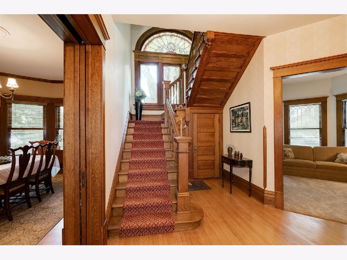 Beautiful Victorian with stained glass windows, 3 fireplaces and original woodwork! Home sits on 3 lots in the heart of Fairbury! You will be WOWed from the moment you approach the front porch with mature landscaping. Original oak woodwork with pocket doors and trim can be found throughout the home with immaculate care and preservation. Updated kitchen and baths. Fantastic space and 3 car garage!