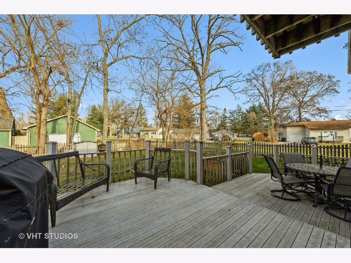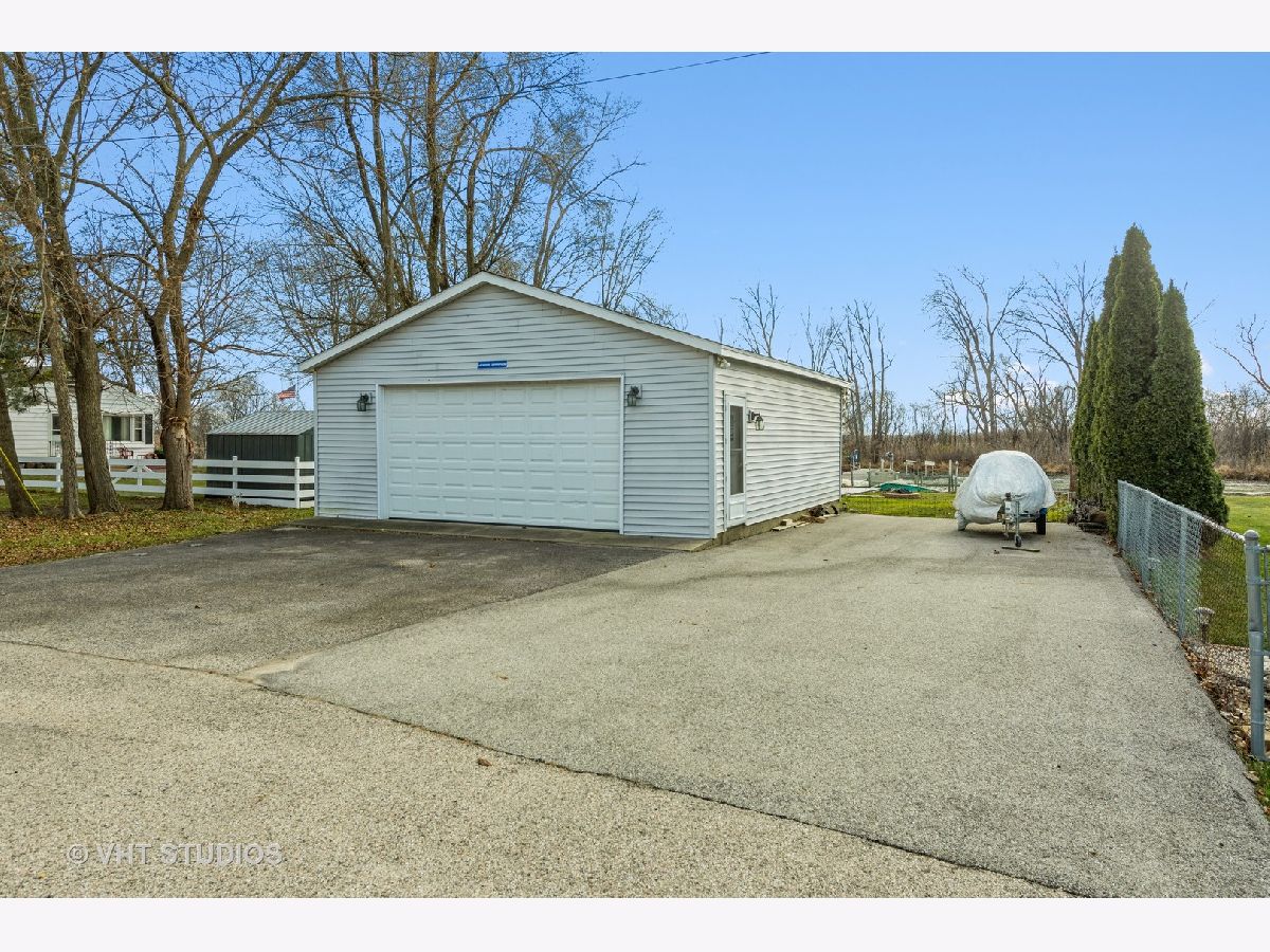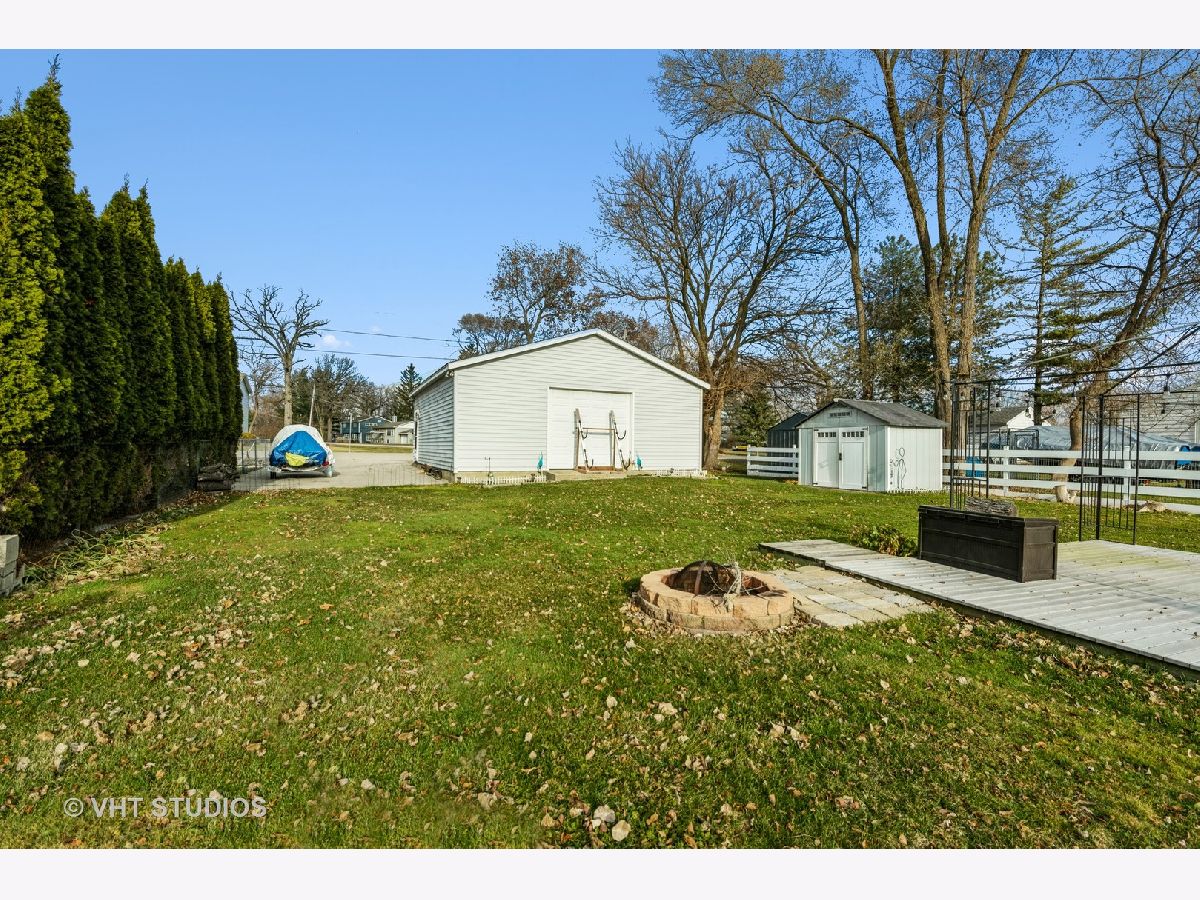 Bring your boat and cars because this house has it all! This property includes 3 lots and is over a 1/2 acre combined. The house sits on a double lot and the garage another lot. The property includes a beautiful 2 story house and a Chain of Lakes waterfront lot across the street with access to Pistakee Lake and a 2 1/2 car garage. Its a deep channel with plenty of room for a larger sized boat. This spacious 2 story house features wood laminate flooring and 6 panel doors on the first floor. The large kitchen opens up to the family room with wood burning fireplace and French Doors leading out to the double tiered no maintenance composite decking and fenced in spacious backyard. The roomy primary bedroom has vaulted ceilings and skylights as well as a balcony overlooking the peaceful fenced in yard. The primary bathroom has a large vanity and shower. Plenty of storage in the upstairs with walk in closets in each bedroom. The newly remodeled 2023 upstairs bathroom has new vanity, sink, faucet, tile and bathtub. There is a 2 1/2 attached garage as well as another 2 1/2 car garage on the lot across the street. Both are heated, insulated, drywalled and have concrete flooring. The separate garage sits on a waterfront channel lot with large maintenance free composite decking as well as a sitting patio area with canopy gazebo. Most of the house was remodeled or replaced 10 years of less. Roof 2016, microwave 2021, dryer 2020. Award Winning Johnsburg Schools! The house comes with a year Home Warranty.