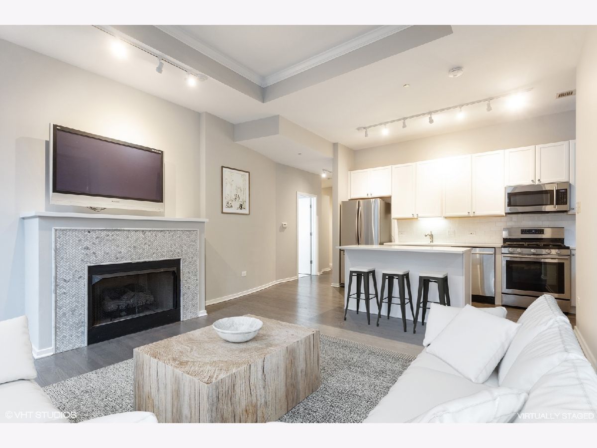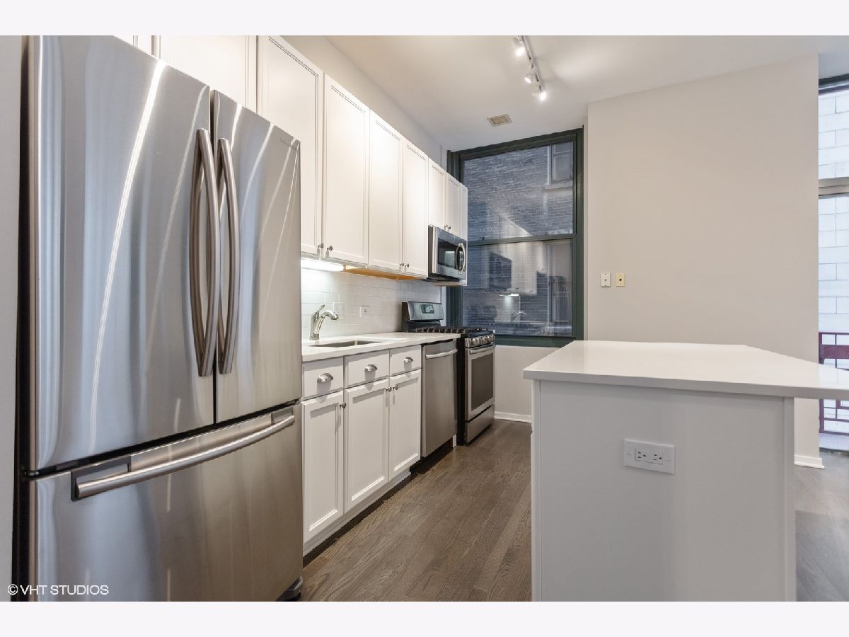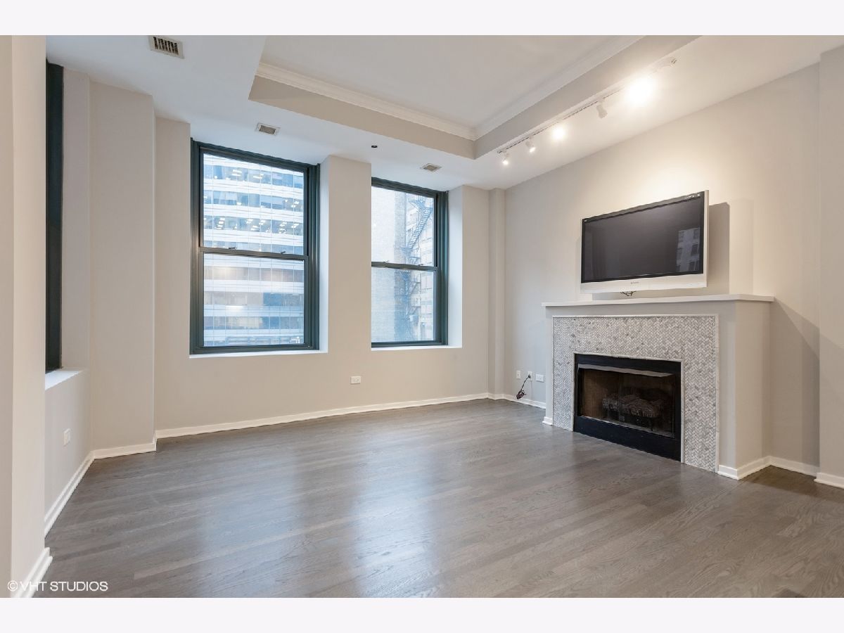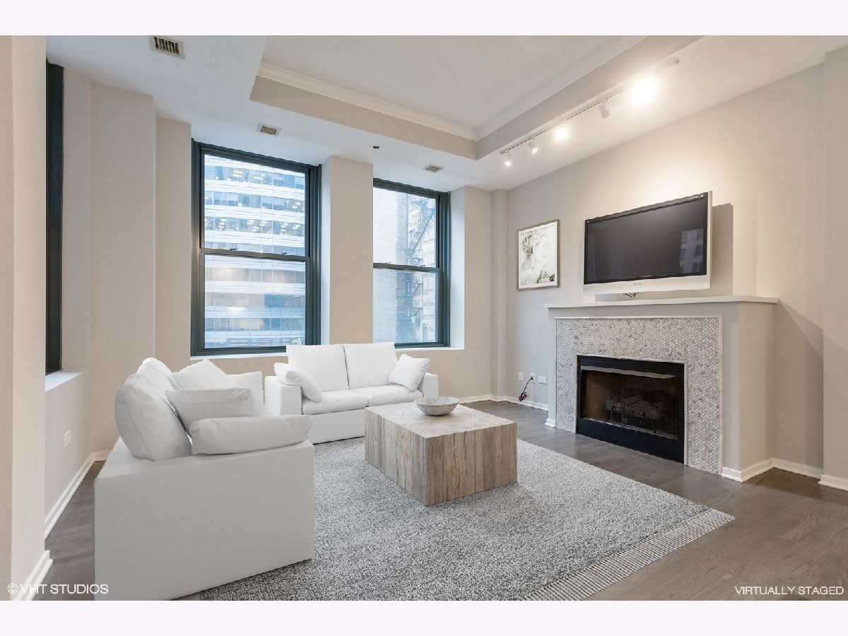 Move Right In! Renovated the end of 2019 and has been cleaned and unoccupied since completion! Terrific one bedroom corner unit in the heart of the Loop. Highlights include stainless steel appliances (2016), recently updated white kitchen with subway tile back splash and quartz counters (2019), remodeled bath with marble subway tile, and marble octagon floor tile (2019), refinished wood floors (2019), fireplace with new herringbone marble surround (2019), freshly painted (2019). There is a 24 hour door staff, fitness center, roof deck, business center and storage unit. Parking available for rent or purchase. Steps away from the train, Millennium Park, the lake, theatre district, shopping, and restaurants!
