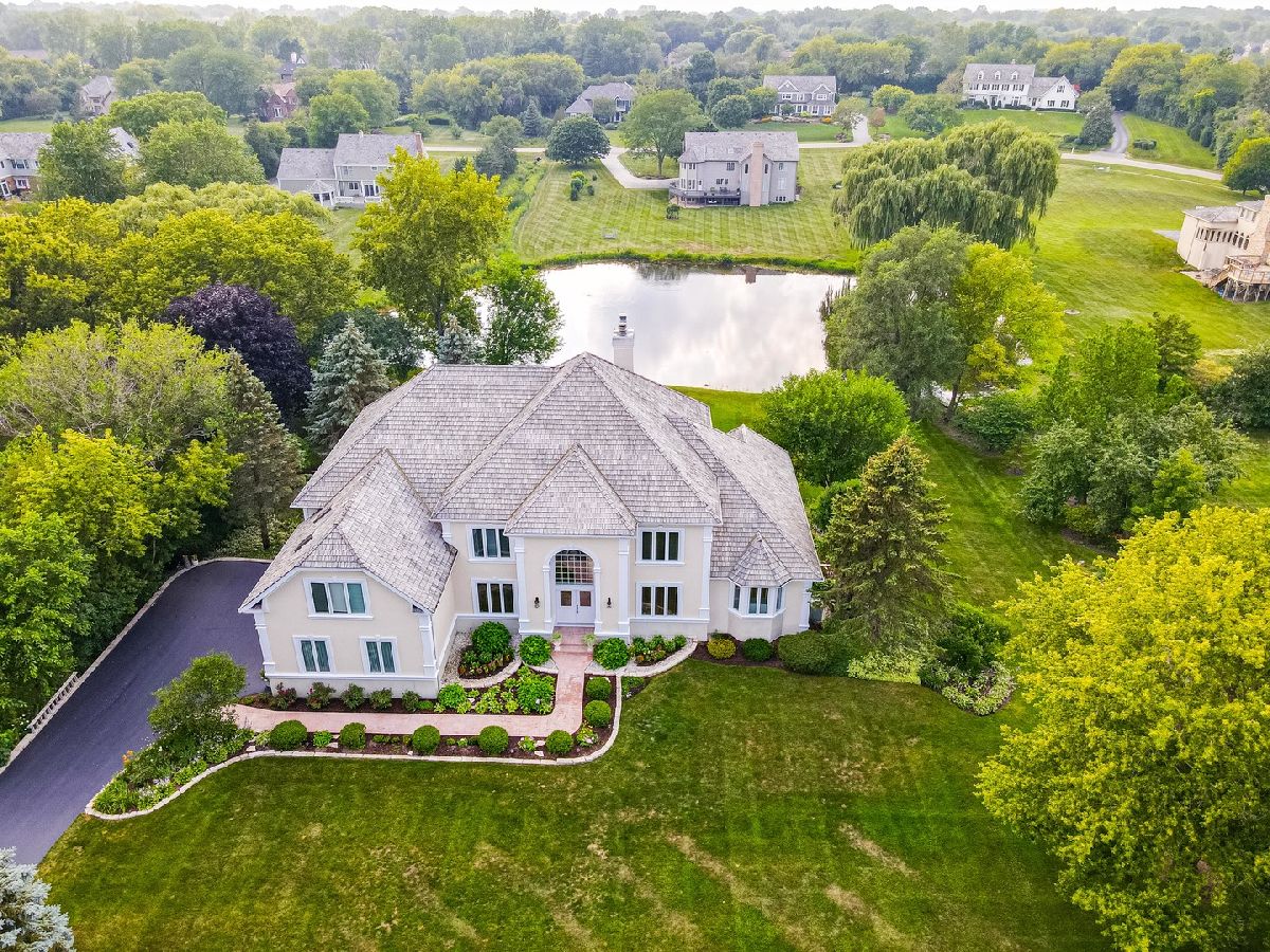 LUXURIOUS custom built home with STUNNING Interior features, WHITE GOURMET KITCHEN with NEW HIGH END stainless steel appliances built on 1.38 acres and nested into a quiet CUL-DE-SAC overlooking the POND. This home was extensively UPDATED in 2020, from BATHROOMS, to KITCHEN, to ALL NEW LIGHTING FIXTURES and REMOTE CONTROL CEILING FANS throughout. This 5142 square feet home offers hardwood floors on main and second floor, four large bedrooms with private full bathrooms. Beautiful, main floor master suite offers high vaulted ceiling , hers and his closets, luxury bathroom, and beautiful view of the pond. Two of the four bedrooms have bonus rooms which can be used as additional bedrooms. Large gourmet kitchen with center island offers ample eating space at the counter or at the adjacent dinette overlooking the pond. Separate den/office with wood burning fireplace and wet bar. Also this home offers full walkout basement with many large windows and two sliding doors. Do not forget beautiful stamped concrete patio and large wrap around deck leading to ground level. This home offers ideal location to raise children, is close to shopping at Deer Park Mall, fine restaurants and more. Commuting Chicago downtown?, catch a train at nearby Palatine or Barrington stations.