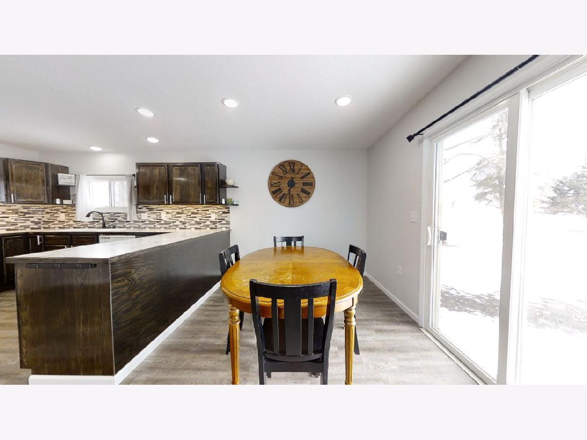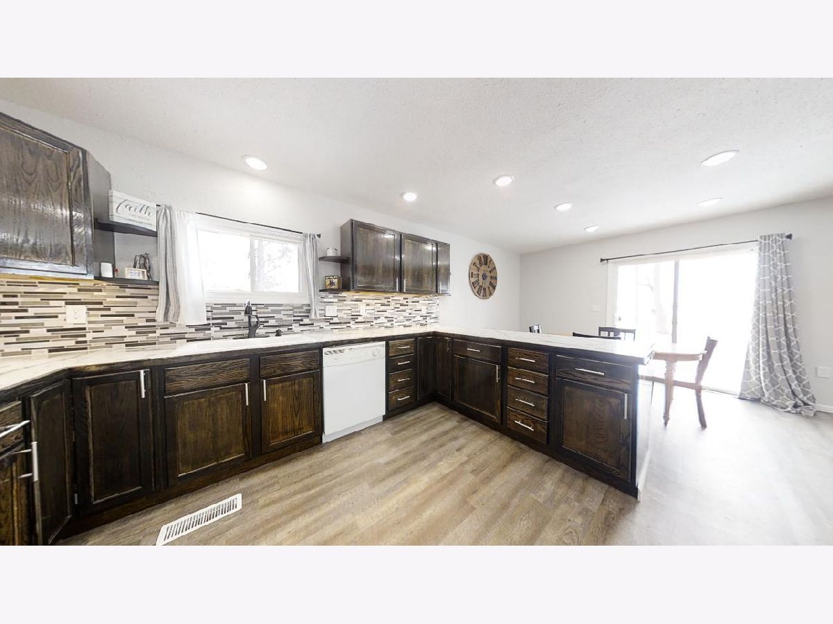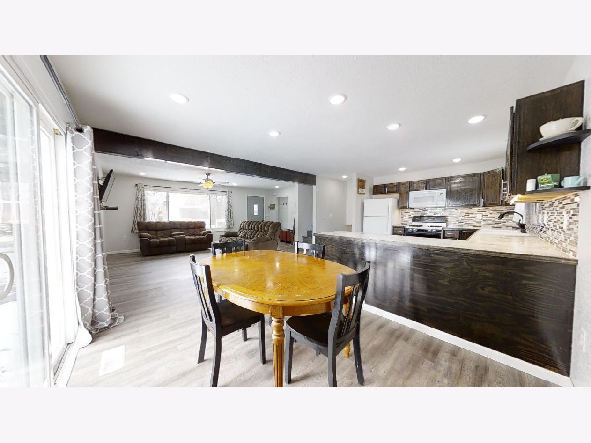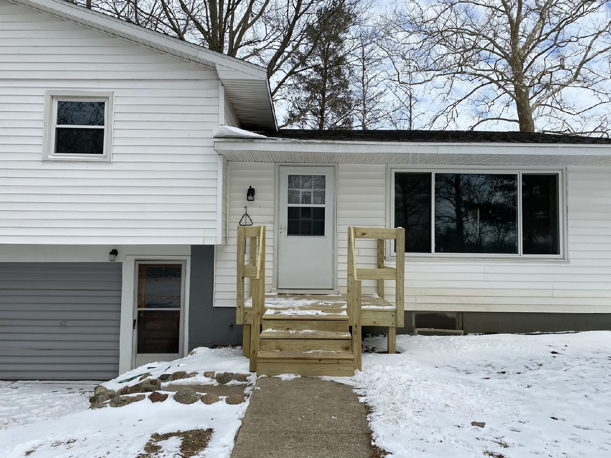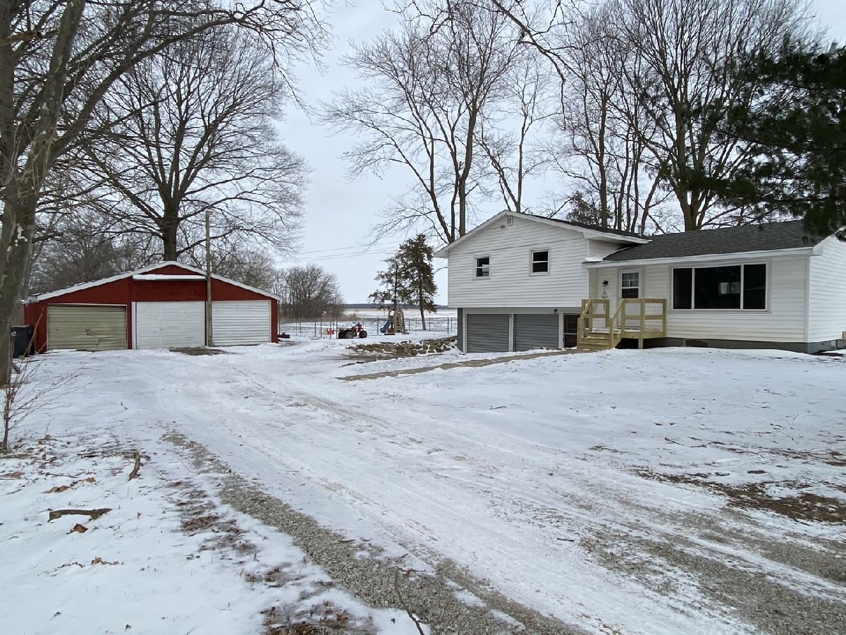 Mature trees and country views will make you feel at home in this recently remodeled bi-level home located on 1 acre! You will love the low maintenance exterior, which draws you indoors to a charming entry way with a built-in drop station adorned with shiplap. The entryway effortlessly flows into an open concept living, dining, and kitchen space that is flooded with tons of natural light. The space feels welcoming and cozy thanks to a wood beam and the vinyl plank wood floors that flow throughout. Entertaining is easy thanks to the roomy dining area and updated kitchen, which features great cabinet space and counter prep-room. You will love the stylish updates, including new dark stained cabinets, counters, modern door pulls, and mosaic backsplash. Upstairs, you will find two spacious bedrooms, both with new carpet flooring, and an updated full bathroom with walk-in shower. You'll love the convenience of the upper level laundry area with built-in cabinets. The master bedroom is a retreat thanks to new carpet flooring, a spacious closet, and a modern barn door that leads you to an updated full bath with a new toilet, vanity, and shower. Easily expand your living space by finishing the partial basement or use it for additional storage. Entertain family and guests outdoors in the newly fenced-in yard with country views. A convenient and freshly painted barn gives you the proper space to store equipment, additional vehicles, or extra belongings. Additional highlights include fresh paint, new trim, and wrapped ducts. There's nothing left to do but move in to this adorable home, so take a look today!