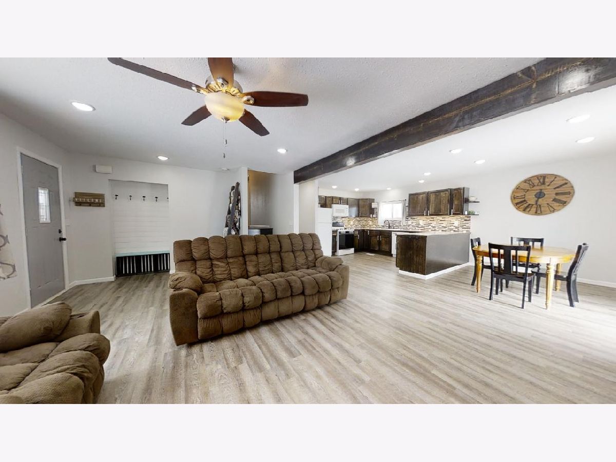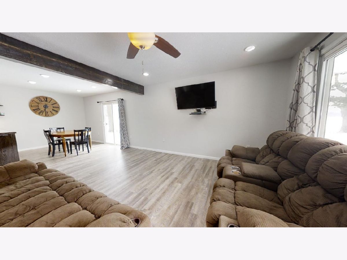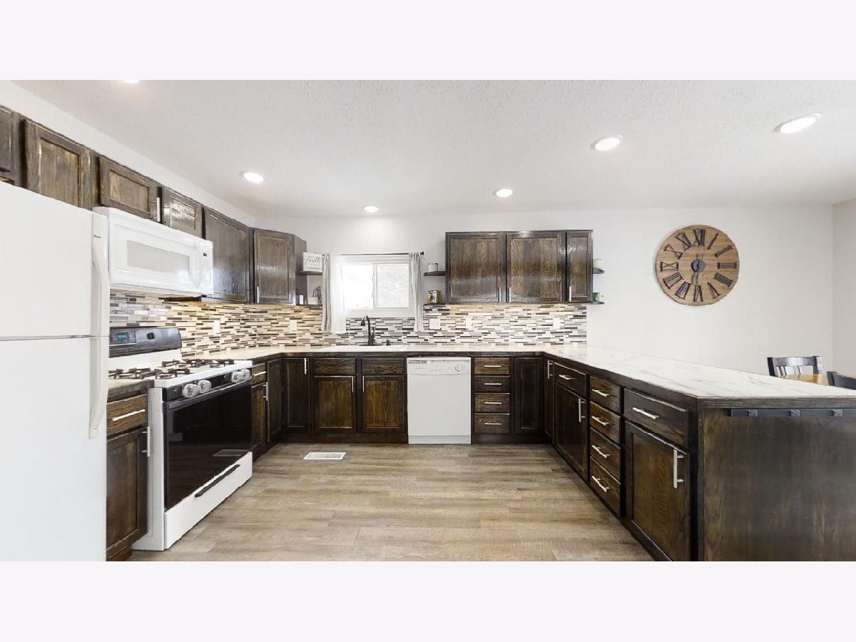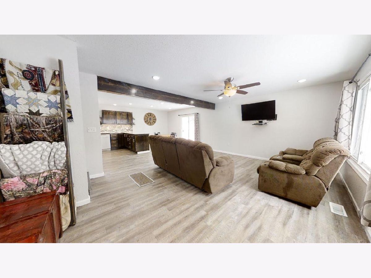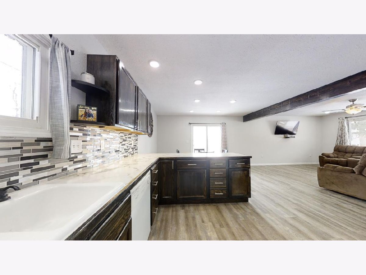 Mature trees and country views will make you feel at home in this recently remodeled bi-level home located on 1 acre! You will love the low maintenance exterior, which draws you indoors to a charming entry way with a built-in drop station adorned with shiplap. The entryway effortlessly flows into an open concept living, dining, and kitchen space that is flooded with tons of natural light. The space feels welcoming and cozy thanks to a wood beam and the vinyl plank wood floors that flow throughout. Entertaining is easy thanks to the roomy dining area and updated kitchen, which features great cabinet space and counter prep-room. You will love the stylish updates, including new dark stained cabinets, counters, modern door pulls, and mosaic backsplash. Upstairs, you will find two spacious bedrooms, both with new carpet flooring, and an updated full bathroom with walk-in shower. You'll love the convenience of the upper level laundry area with built-in cabinets. The master bedroom is a retreat thanks to new carpet flooring, a spacious closet, and a modern barn door that leads you to an updated full bath with a new toilet, vanity, and shower. Easily expand your living space by finishing the partial basement or use it for additional storage. Entertain family and guests outdoors in the newly fenced-in yard with country views. A convenient and freshly painted barn gives you the proper space to store equipment, additional vehicles, or extra belongings. Additional highlights include fresh paint, new trim, and wrapped ducts. There's nothing left to do but move in to this adorable home, so take a look today!