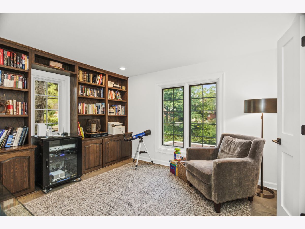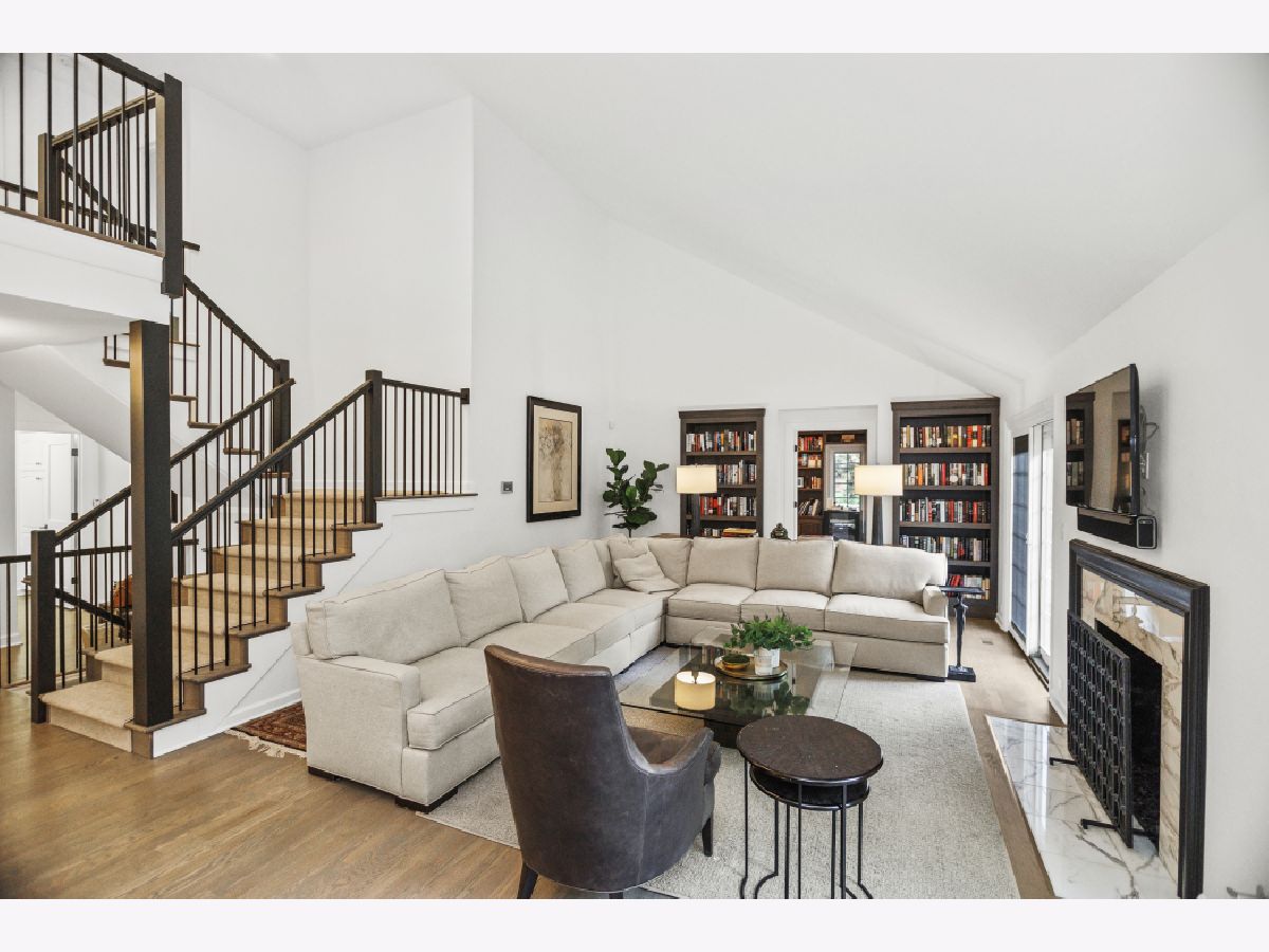 Welcome to this exquisitely renovated home, thoughtfully reimagined between 2021 and 2022, where elegant designer finishes meet modern luxury. Spacious great room, with a dramatic staircase to second floor with new railings and spindle, an attractive fireplace, has a 17' vaulted ceiling making it a light and airy space. Featuring custom built-ins and two sets of doors to the new brick paver and limestone raised patio overlooking the pond, making it perfect for seamless indoor/outdoor living. Formal dining room can accommodate a table for 12 and features a designer chandelier, serving niches with custom cabinets and a Sub-Zero wine fridge. The kitchen is a chef's dream, complete with custom cabinetry, quartz countertops, a large island, and attractive subway tile backsplash. Luxury appliances including a 6-burner Wolf range, Wolf wall speed oven (convection/microwave), Cove dishwasher, and a 42" built-in french door Sub-Zero fridge, make this space both functional and beautiful. A cozy fireplace and sunny breakfast room with a bay window add to the kitchen's charm. The private office/library, created during the renovation, offers a serene workspace with French doors and built- in bookcases. Coveted first floor primary suite boasts tray ceilings, a complete wall of custom cabinetry, and multiple closets inc large walk-in closet fitted by California Closets. Enjoy the primary bath with heated marble floors, a marble walk-in shower, and beautiful double vanity. Step out to the primary suite's private patio for coffee or a glass of wine. The first floor level also includes a powder room, full size laundry room, and an attached two-and-a-half-car garage. New custom staircase to the second floor which includes two bedrooms, a hall bath and one en-suite. Fully finished lower level featuring a family room with a fireplace, a fourth bedroom, and a full bath. Luxury finishes and amenities flow throughout the home. Expect to be impressed! New mechanicals (2022) and DaVinci roof (2021). Please see the extensive list of improvements and details. This sought-after community boasts lushly landscaped grounds featuring charming ponds, bridges, and fountains.