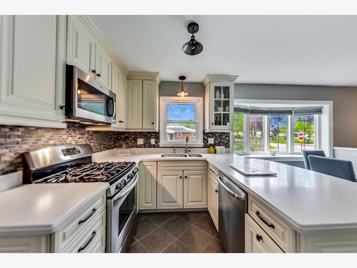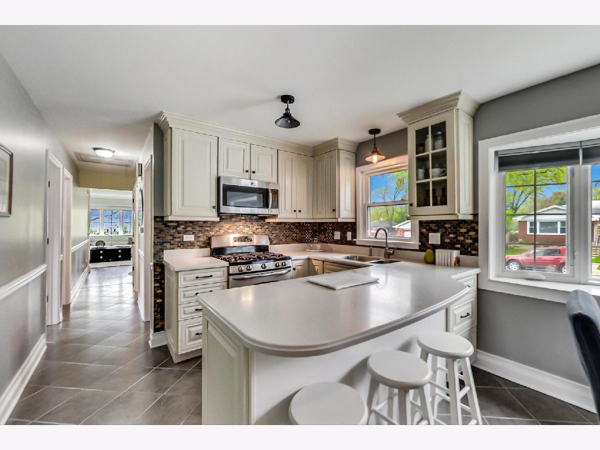 Fall in love with this spacious 5 bed/2.5 bath completely updated brick raised ranch on a corner lot. This meticulously maintained home is drenched in sunlight and ready for a perfect buyer to turn the key and be able to kick back and enjoy the summer! Main level features foyer entry w/coat closet, formal LR w/attached dining room and stunning big picture window w/breathtaking tree lined street views. Well-appointed kitchen with Italian quartz counters, breakfast bar and stainless steel appliances. Three large bedrooms with lots of closet space. Master bedroom has a double door walk in closet. Lower level features two additional bedrooms/office, a substantial sized family room, dry bar w/wine fridge, mudroom, and oversized jetted soaker tub w timer. Beautiful backyard with 6 foot privacy fence. Three minute walk to downtown Mount Prospect, train, banking, post office, retail and dining. Neighborhood Located in Top-rated Schools with Desirable Chicago Proximity. House has had only one owner, this quality, condition and space is a rarity!