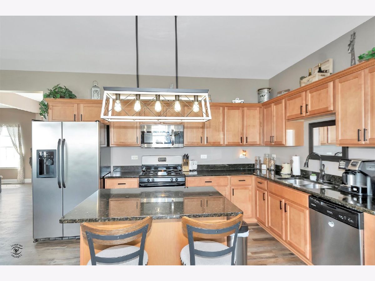 Beautiful, 4 bedroom, 2 full & 2 half bath home. Generous entryway, New paint, new flooring, new trim! sliding glass doors to fully fenced in yard-with a special dog run on the side & extra large (16x32) cement patio. Beautiful Luxury vinyl plank floors ~Open kitchen w/ granite countertops, custom cabinetry and stainless steel appliances. All upgraded light fixtures. Custom fireplace & reclaimed barn wood cabinetry in family room AND finished basement (from local barn built in 1859) . Finished garage has 11 ft ceilings & generous storage options throughout. Currently laundry room is in basement. But also set up to have it in entryway if that works better for you. The Preserves subdivision features walking paths, clubhouse w/fitness room, meeting center, & pool. Easy to show
