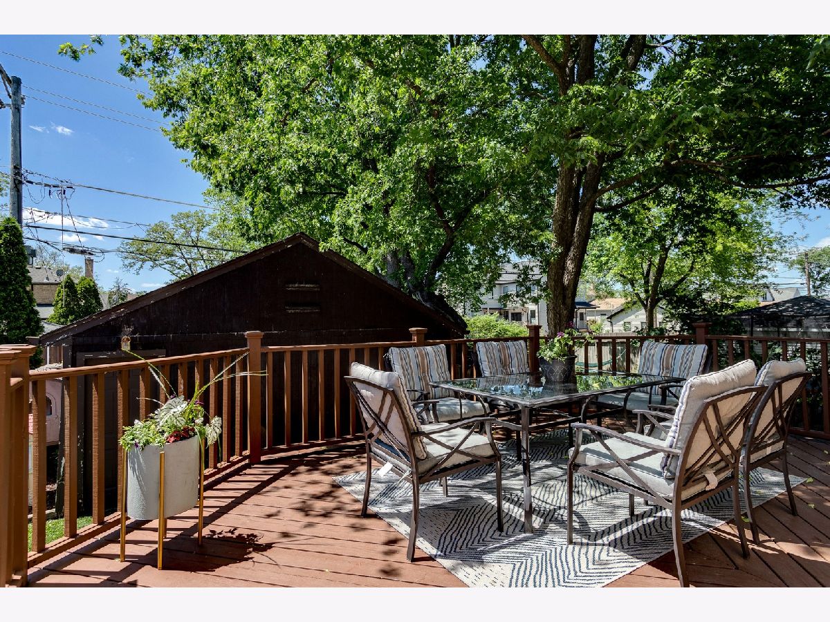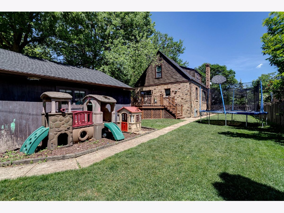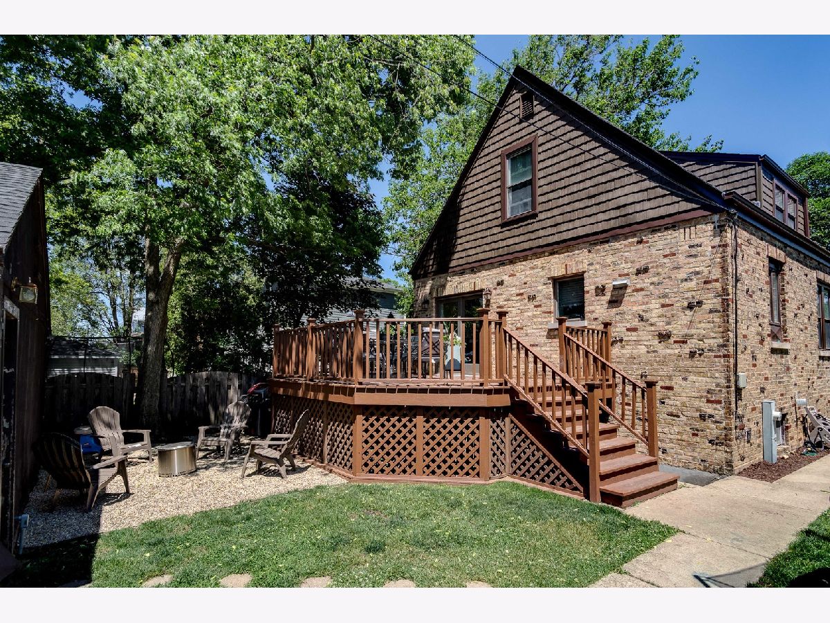 Charming English brick home on a quiet tree lined street on a large lot. Updated kitchen w/ top of the line appliances, cherry wood cabinets and an exceptionally large granite breakfast bar, eat-in kitchen area that leads to a beautiful deck, gravel firepit and BBQ area perfect for outdoor entertaining, finished basement w/ flood-control system installed, brand new roof and shingle siding, total of 4 bedrooms - #2 and #3 are tandem upstairs, two full bathrooms, open floor plan on first floor, walk to beautiful uptown Park Ridge, train and restaurants. Top-rated schools.