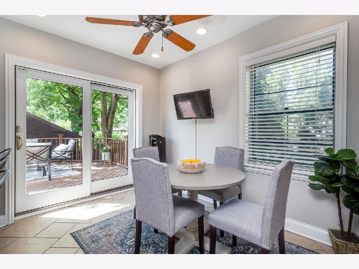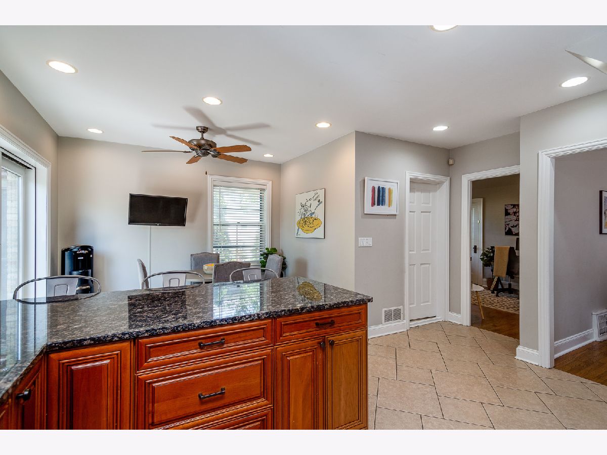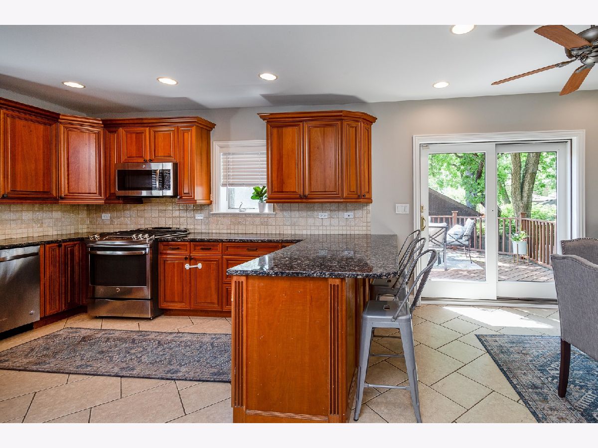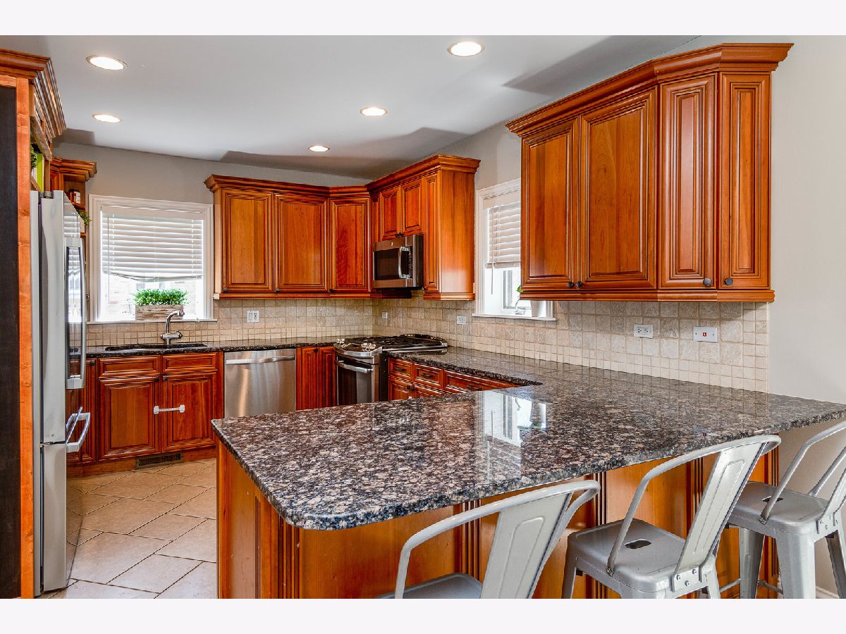 Charming English brick home on a quiet tree lined street on a large lot. Updated kitchen w/ top of the line appliances, cherry wood cabinets and an exceptionally large granite breakfast bar, eat-in kitchen area that leads to a beautiful deck, gravel firepit and BBQ area perfect for outdoor entertaining, finished basement w/ flood-control system installed, brand new roof and shingle siding, total of 4 bedrooms - #2 and #3 are tandem upstairs, two full bathrooms, open floor plan on first floor, walk to beautiful uptown Park Ridge, train and restaurants. Top-rated schools.
