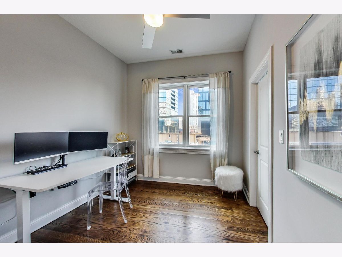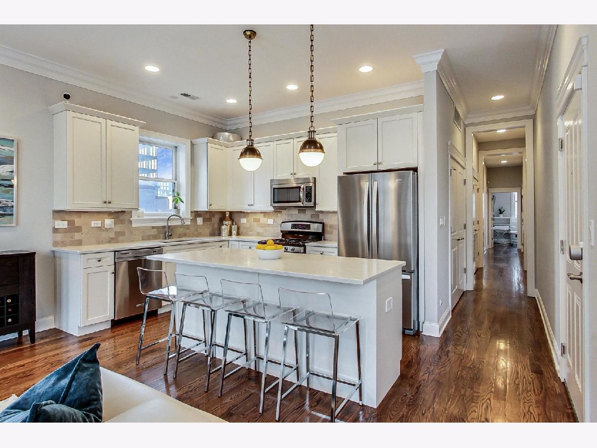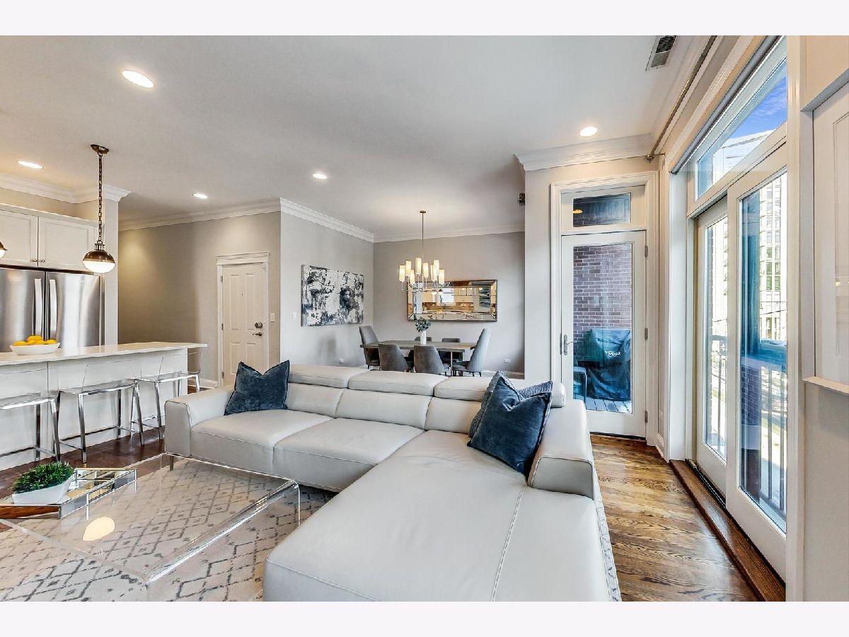 Updated & impeccably maintained 3 bed/2 bath unit in one of Chicago's most coveted locations. This West Loop/Fulton Market condo showcases recently renovated chef's kitchen complete with quartz counter tops, stainless steel appliances and white soft close cabinets. Large kitchen island with seating for four is complemented with designer pendant lighting. Expansive living room with gas fireplace opens up to ample separate dining area and front balcony, making it a great space for entertaining. Primary suite boasts his/hers professionally organized closets, private balcony, large ensuite marble bathroom that includes whirlpool tub and steam shower. Second bedroom showcases custom millwork bookshelves and built in bench with storage is ideal for a home office or nursery. Third bedroom is large enough to fit a queen guest bed and has a walk-in closet. The unit has espresso oak hardwood floors throughout, great natural light from east facing windows and is steps from everything the West Loop and Fulton Market have to offer. Walk to Marianos and Whole Foods, and any number of the best restaurants & bars the city has to offer. Try Aba, Duck Duck Goat, Forno Rosso, Lena Brava, Lazy Bird, The Darling just to name a few. Other unit upgrades include custom organized closets throughout, newly installed Hunter Douglas Powerview shades in primary bedroom & living area and app controlled smart locks on unit doors. One attached garage parking space included in the price.