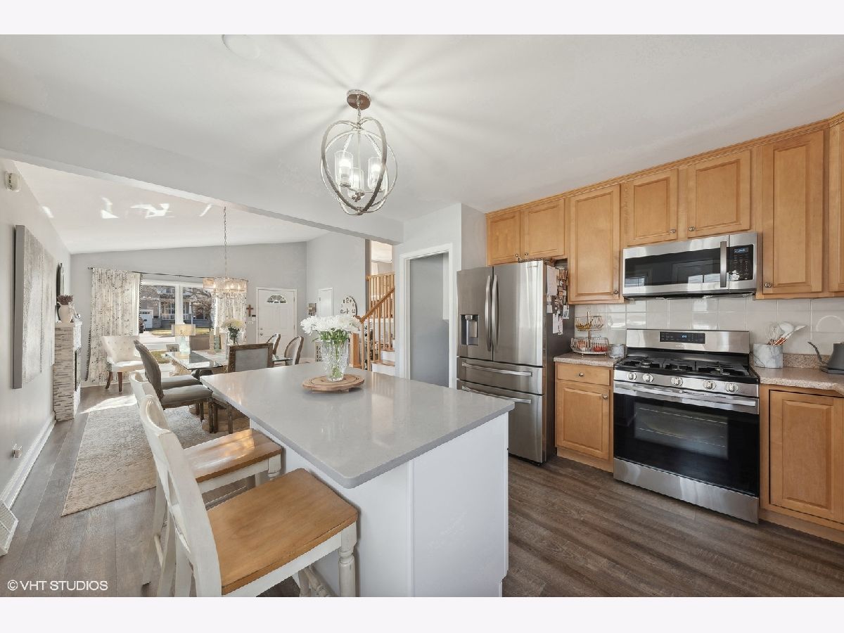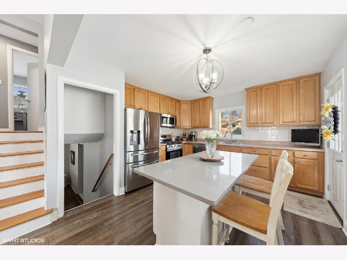 Welcome to this stunning tri-level home nestled in a serene neighborhood, offering the perfect blend of modern amenities and timeless charm. Boasting three bedrooms, one and a half bathrooms this residence provides ample space for comfortable living. Upon entering, you'll be greeted by the inviting ambiance of the main level, where updated flooring and a fireplace (2018) adds a touch of elegance to the living spaces. The heart of the home, the open concept kitchen, features sleek stainless steel appliances (2020), tile backsplash and new island w/ quartz countertops, offering both style and functionality for culinary enthusiasts. Both baths updated (2017 and 2021). Step outside onto the new Trex composite deck, updated in 2021, and envision delightful gatherings with friends and family in the spacious outdoor retreat. The renovated laundry room ensures convenience, equipped with a washer and dryer installed in 2019 for added efficiency. Rest easy knowing that significant updates have been made to essential components of the home, including a new roof and furnace installed in 2018, providing peace of mind for years to come. Additionally, both sump pumps and the ejector pit have been replaced, further enhancing the property's reliability and functionality, For additional storage needs, a new, large shed was added in 2018 to accommodate outdoor equipment and more. With meticulous attention to detail and thoughtful upgrades throughout, this tri-level home embodies modern living at its finest, presenting an unparalleled opportunity to make cherished memories in a place you'll be proud to call home close to downtown Palatine. Fremd High School!